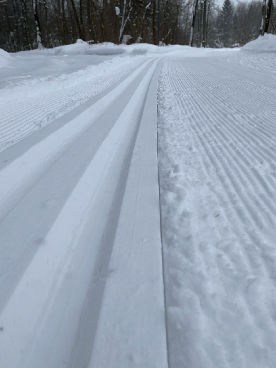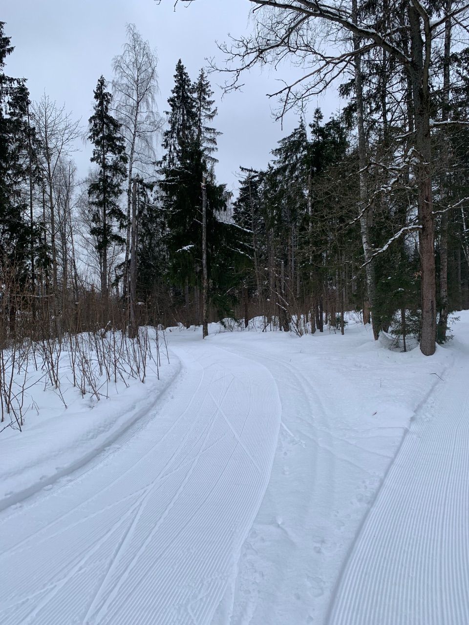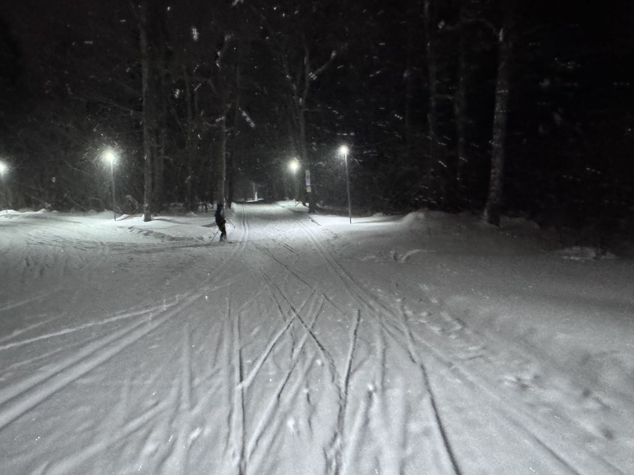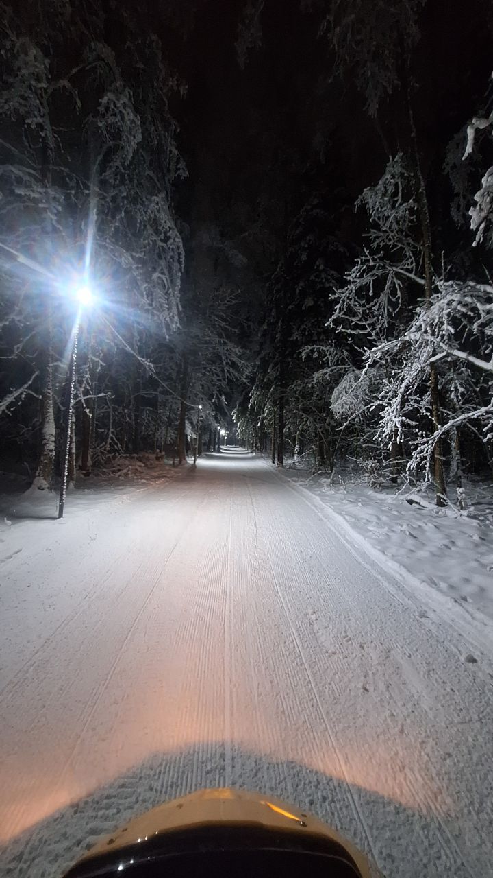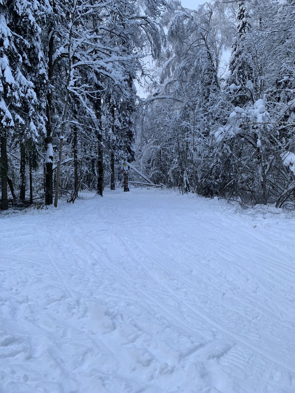 Круги 1 км, 2 км, 3 км и 5 км размечены светоотражающими элементами (левая сторона красным цветом, правая — желтым). Очень удобно при катании в темное время с фонариком.