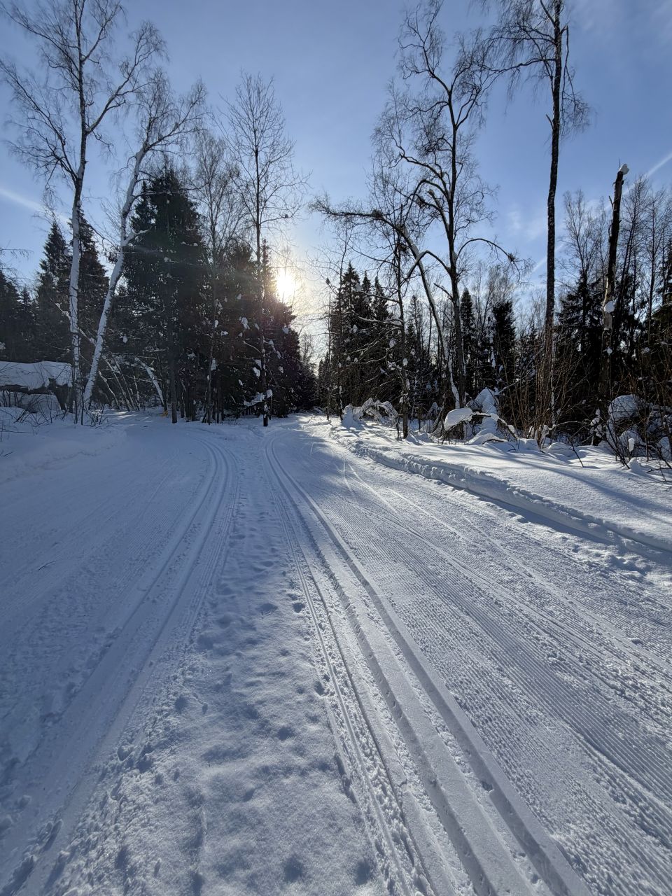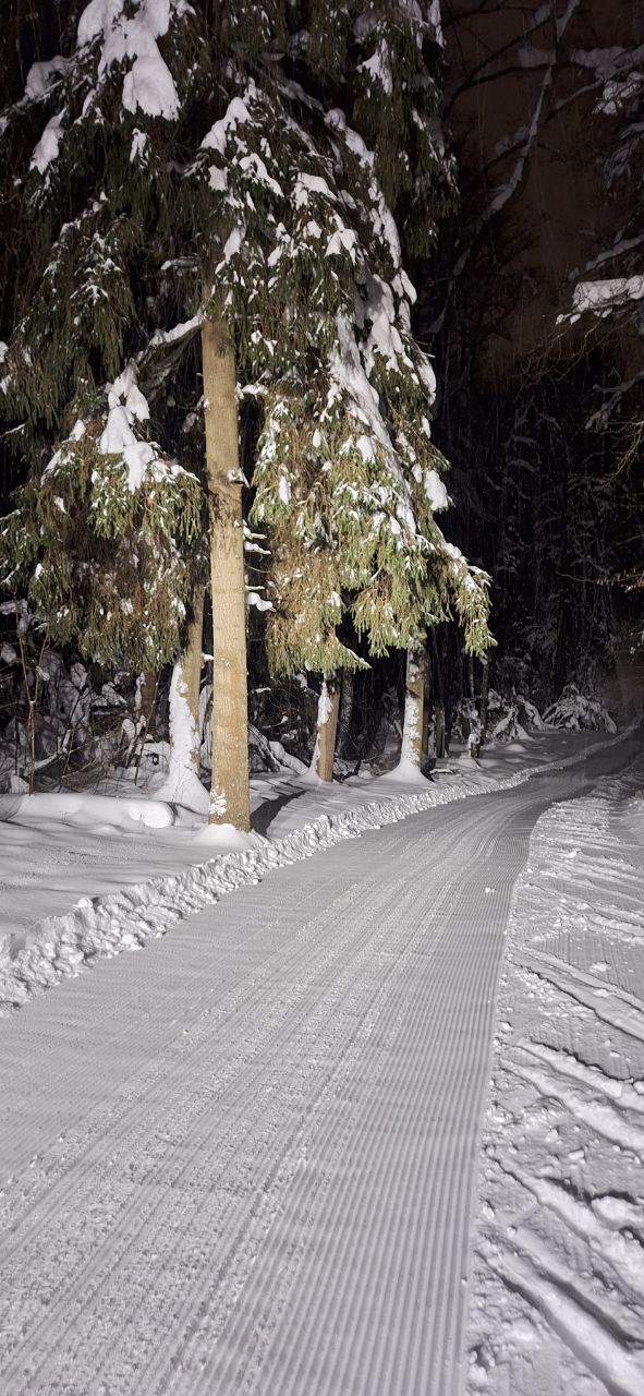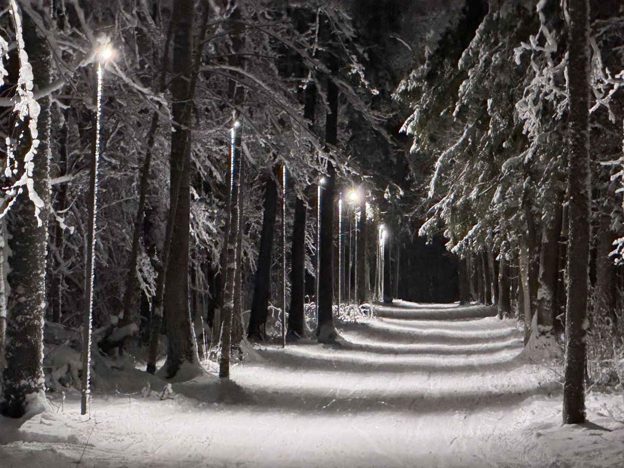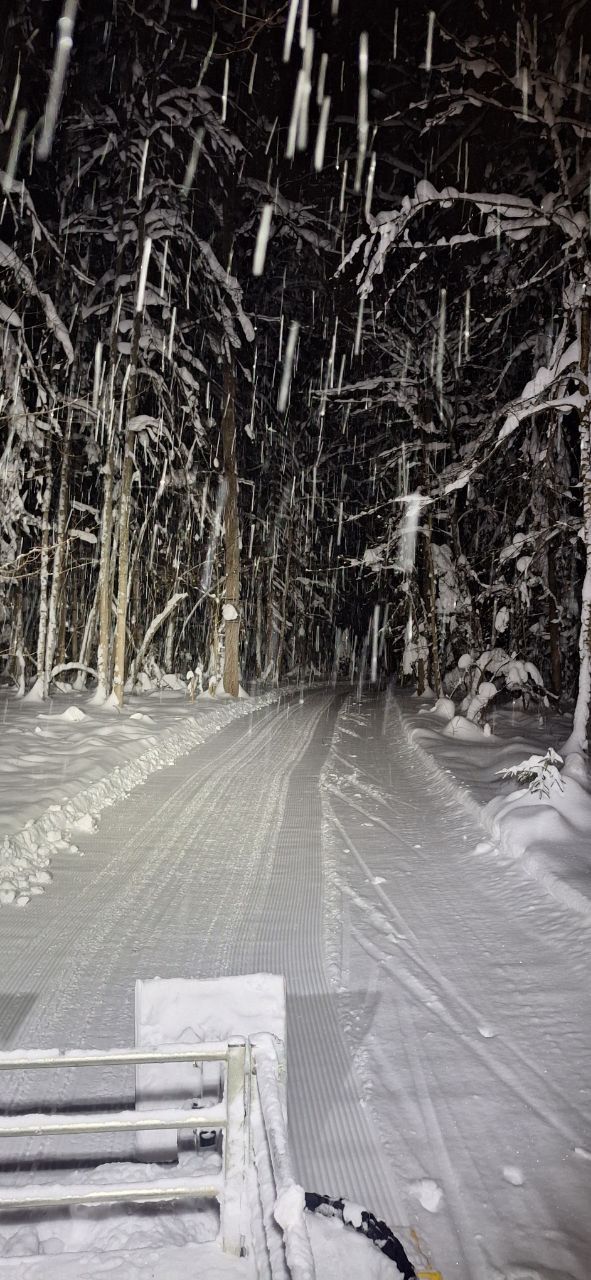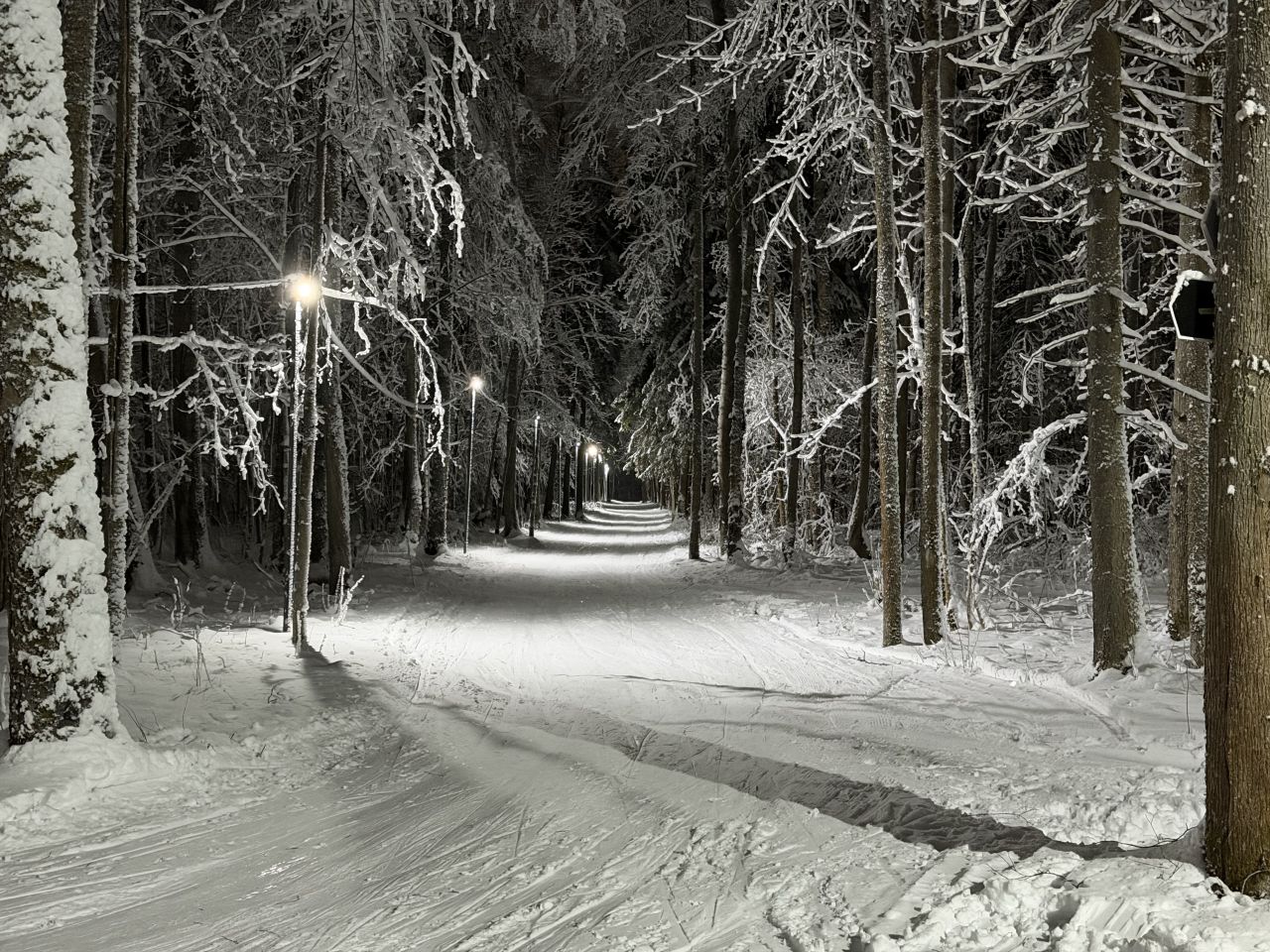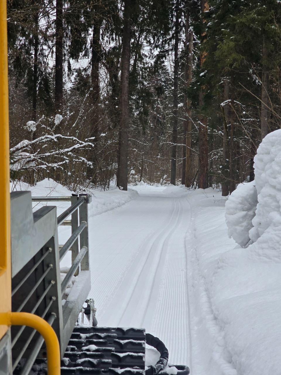 Круги 1 км, 2 км, 3 км и 5 км размечены светоотражающими элементами (левая сторона красным цветом, правая — желтым). Очень удобно при катании в темное время с фонариком.