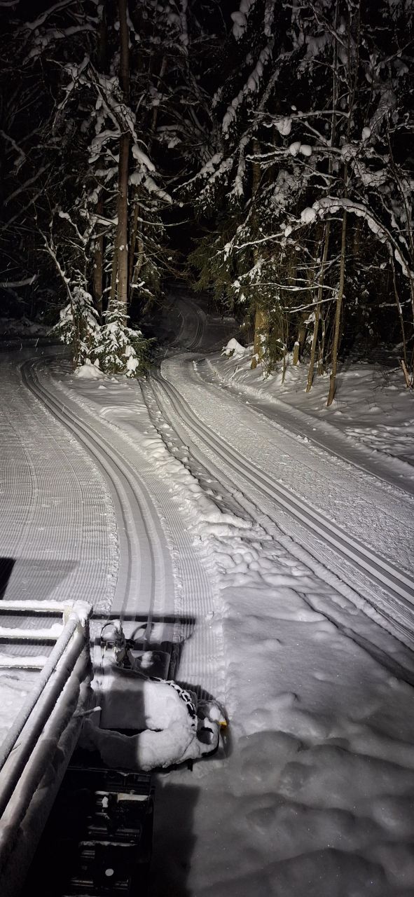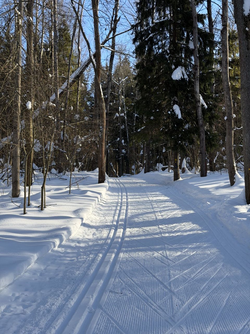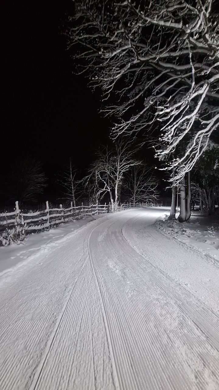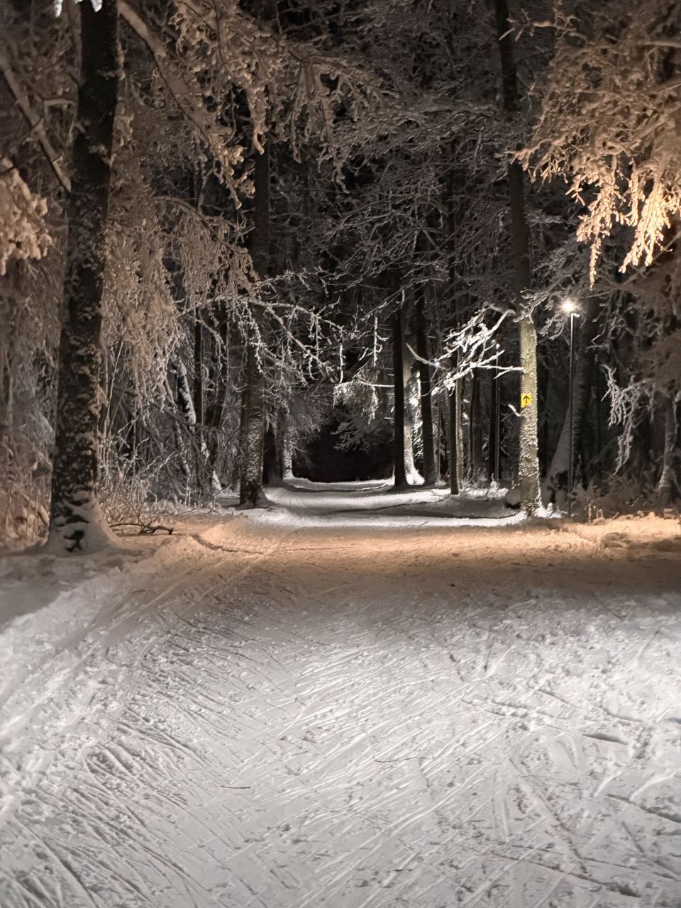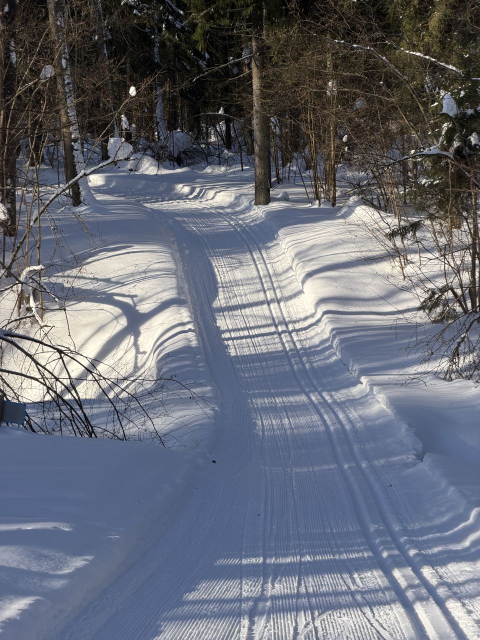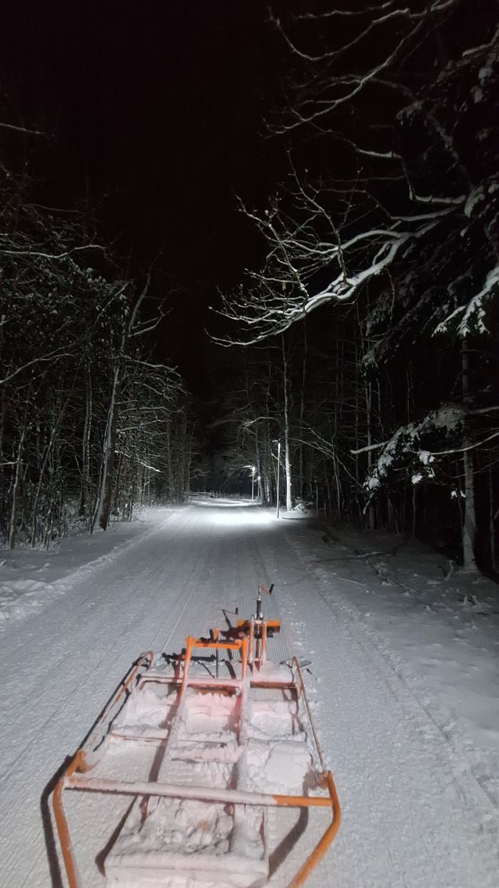 Круги 1 км, 2 км, 3 км и 5 км размечены светоотражающими элементами (левая сторона красным цветом, правая — желтым). Очень удобно при катании в темное время с фонариком.