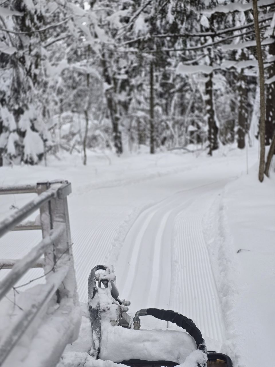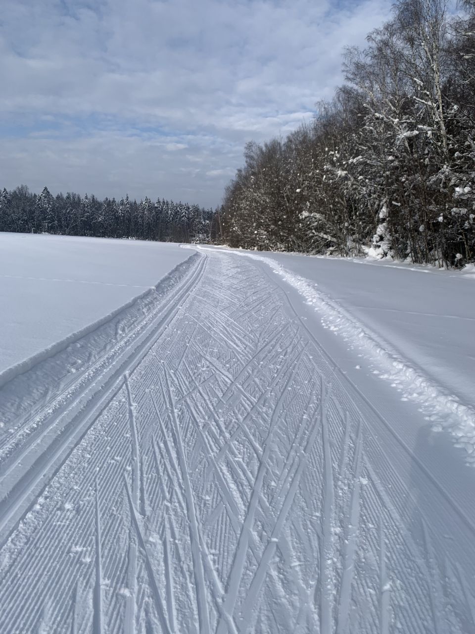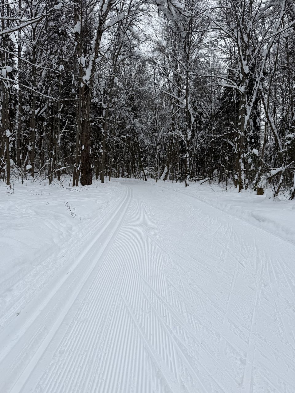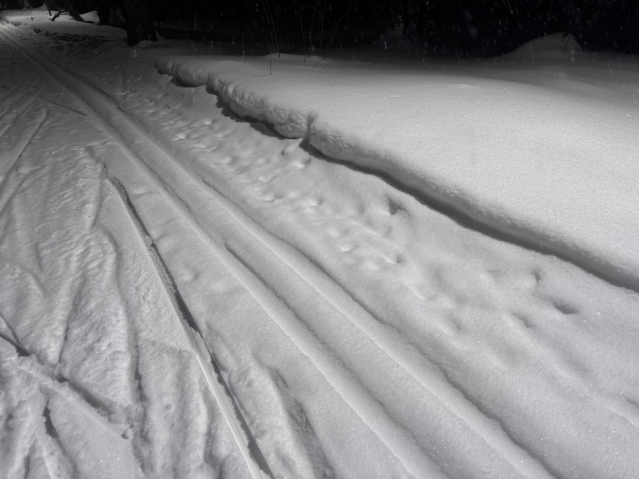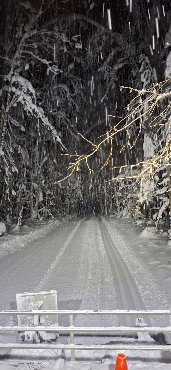Круги 1 км, 2 км, 3 км и 5 км размечены светоотражающими элементами (левая сторона красным цветом, правая — желтым). Очень удобно при катании в темное время с фонариком.
