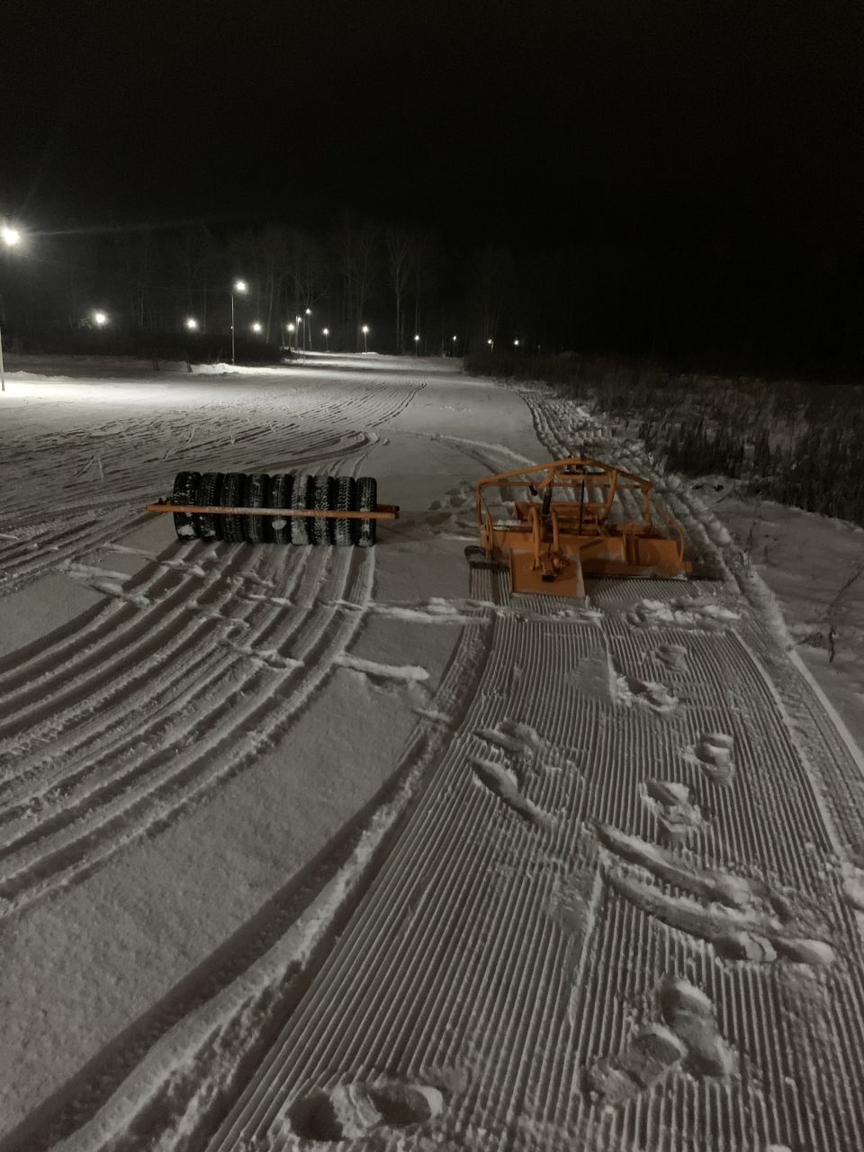 На всех трех полях прошлись ратраком гусеницами для уплотнения снега. Завтра планируется полноценная подготовка полей.