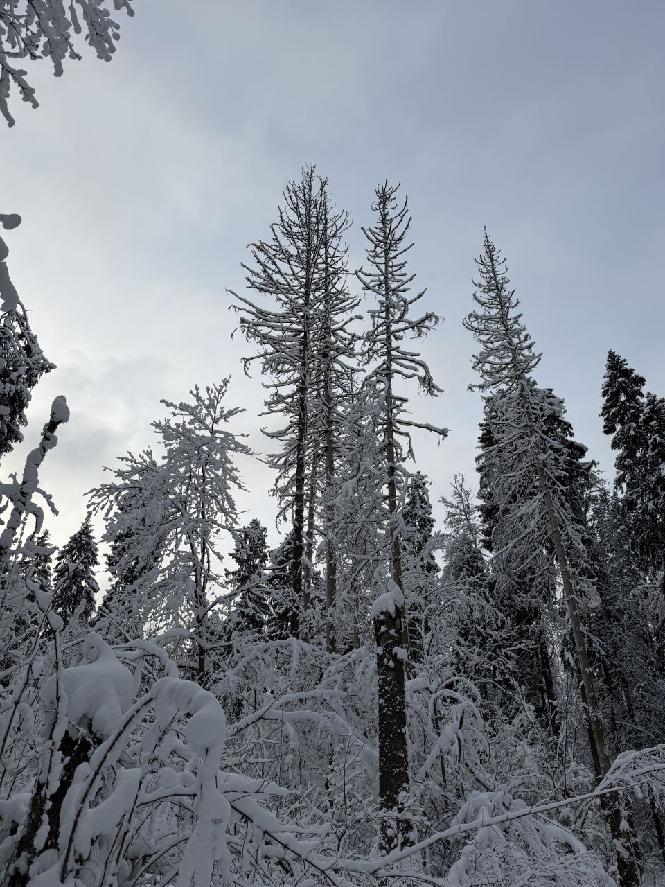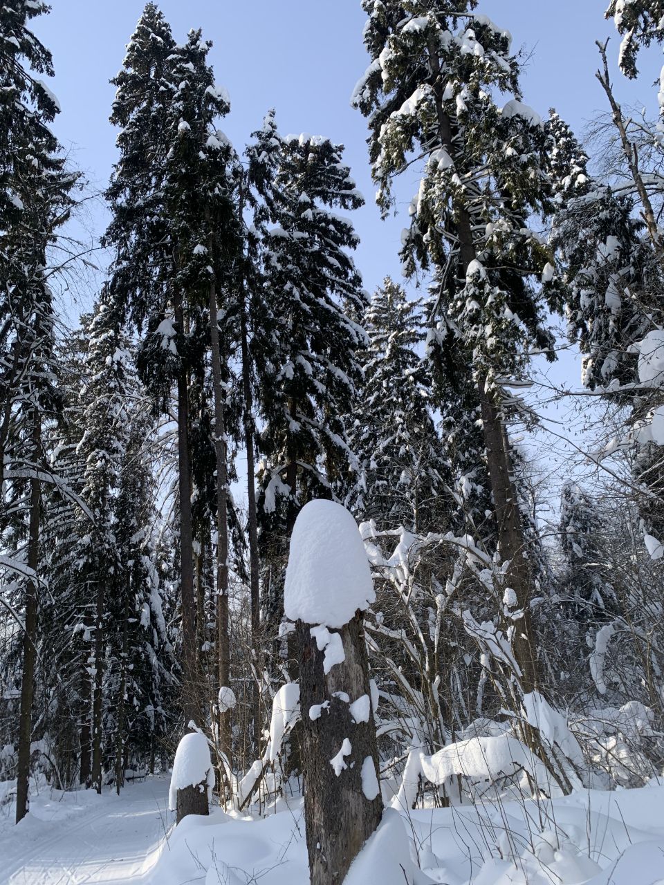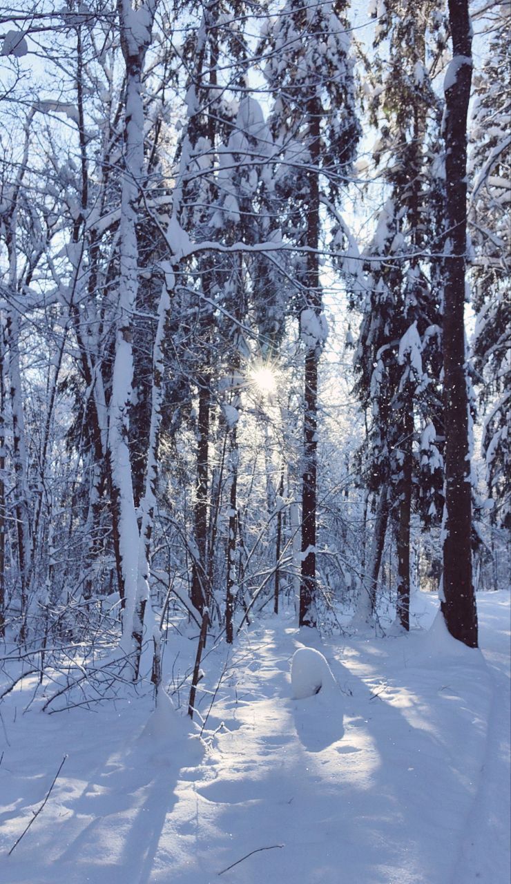 Трасса в хорошем состоянии, в лесу очень красиво😍 много снега, деревья словно окутаны белым пухом❄️