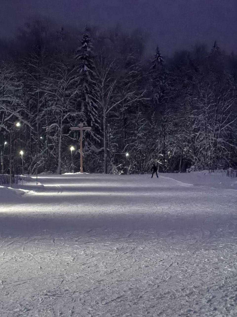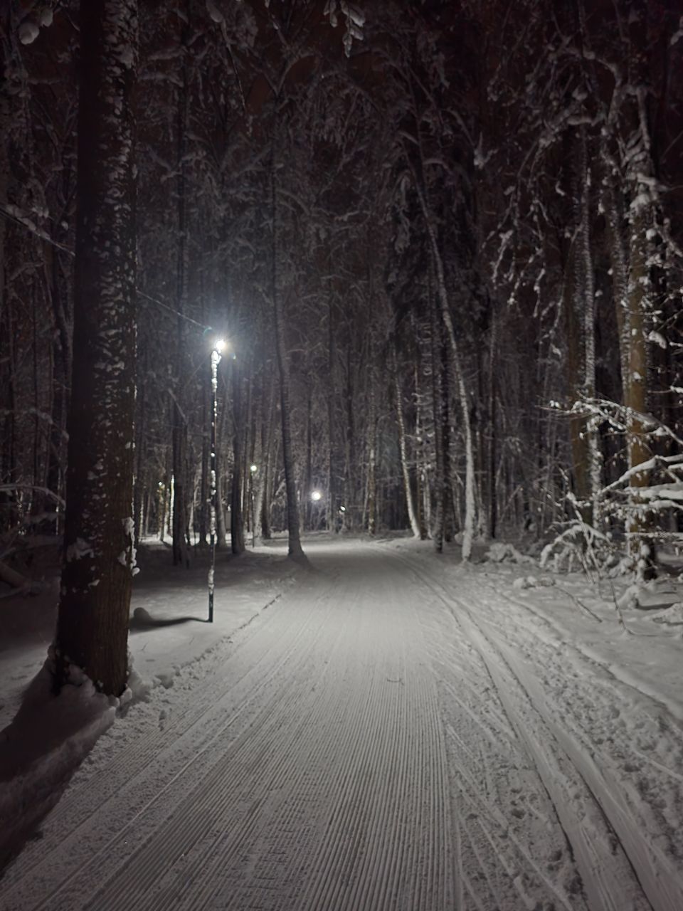 Ребятки, ну какая же красота в лесу... Словно в сказке мчишь на лыжах. Трасса хорошо подготовлена. Так ещё и вечером с детьми катанулись по освещенной части. Уважаемые организаторы, огромная благодарность за освещение, это отдельный вайб😍 Всем рекомендую ловить всю эту красоту. Всем лыжи⛷️
