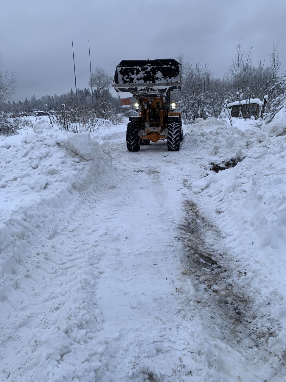 Сегодня грейдер расчистил выезд от стоянки в сторону гаражей. Необходимо еще проверить, не будет ли заливать проезд вода (справа за забором где-то прорыл водопровода).