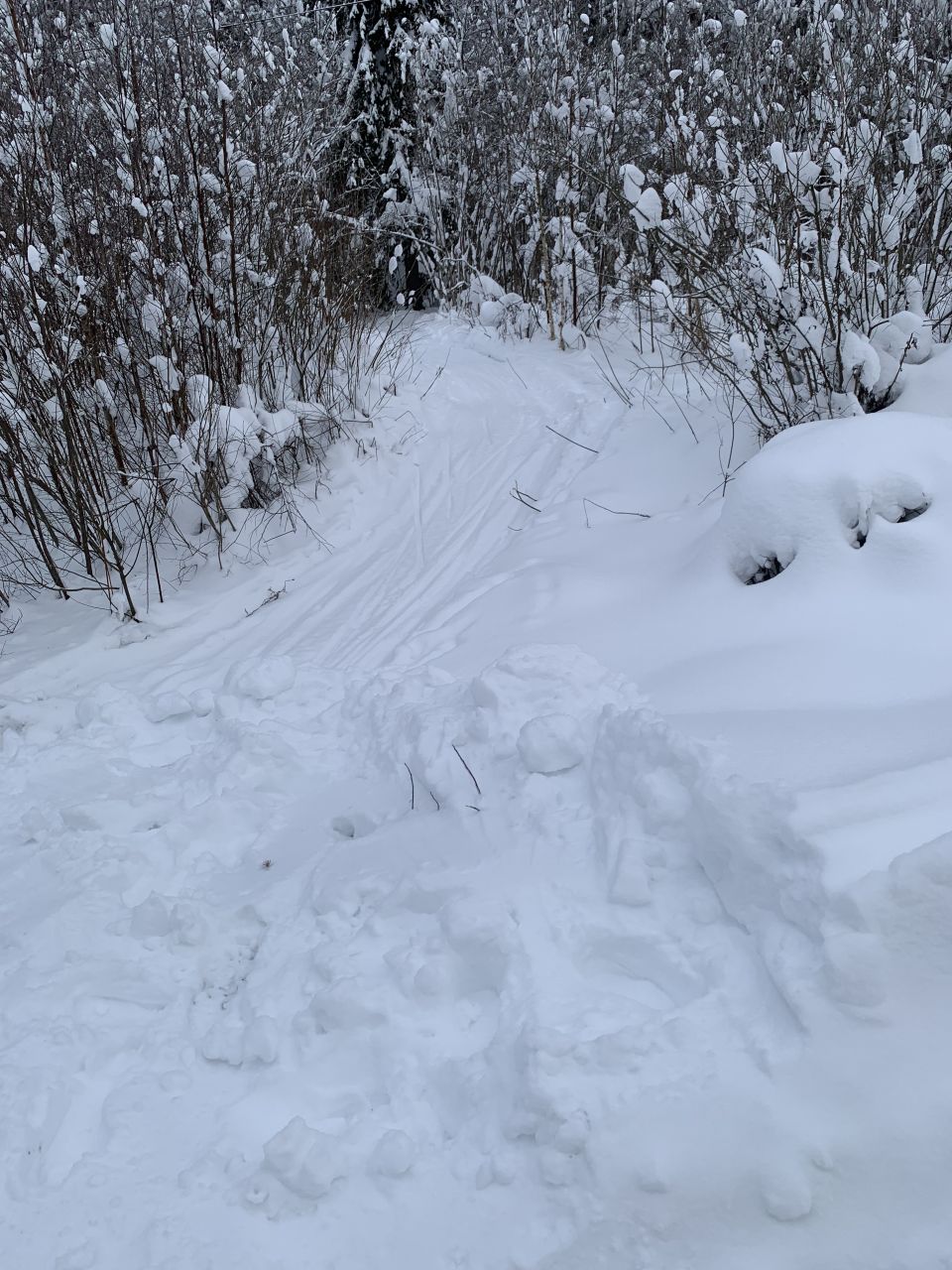 Трасса довольно чистая, местами только веточки, где снег опадает, одно деревце поперёк лежало на дальней петле 8ки - отодвинул 💪😁