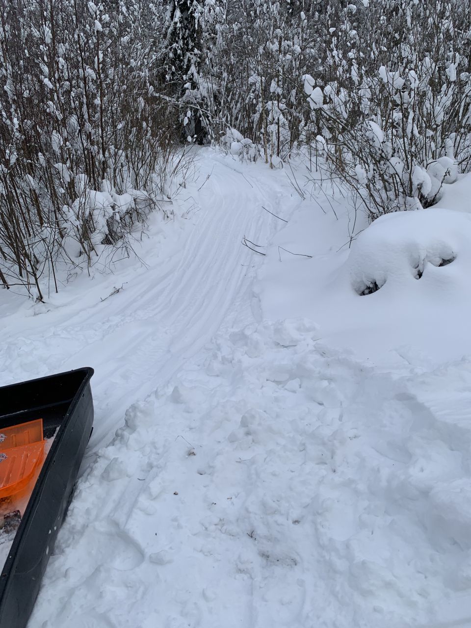 Также сегодня поработали на трассе. Убрали упавшее дерево после 3 моста. После этого поехали от дальней точки лыжной трассы (ППП) на среднее Мурановское поле. Прочистили полностью этот участок. Прокатились по мурановскому полю. Укатали переезд через дорогу в СНТ Атланты. В ближайшее время постараемся нарезать классическую лыжню. В настоящее время классическая лыжня от Атланты до мурановского поля имеется, в более-менее нормальном состоянии. До Атланты вполне можно проехать по следу снегохода.