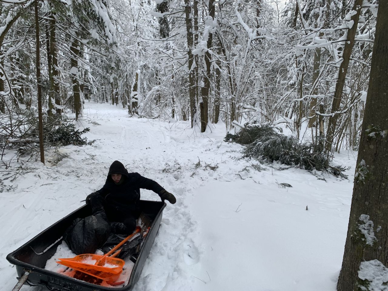 За прошедшие два дня нашим волонтёрам удалось практически полностью отчистить всю лесную часть трассы от веток и шишек.