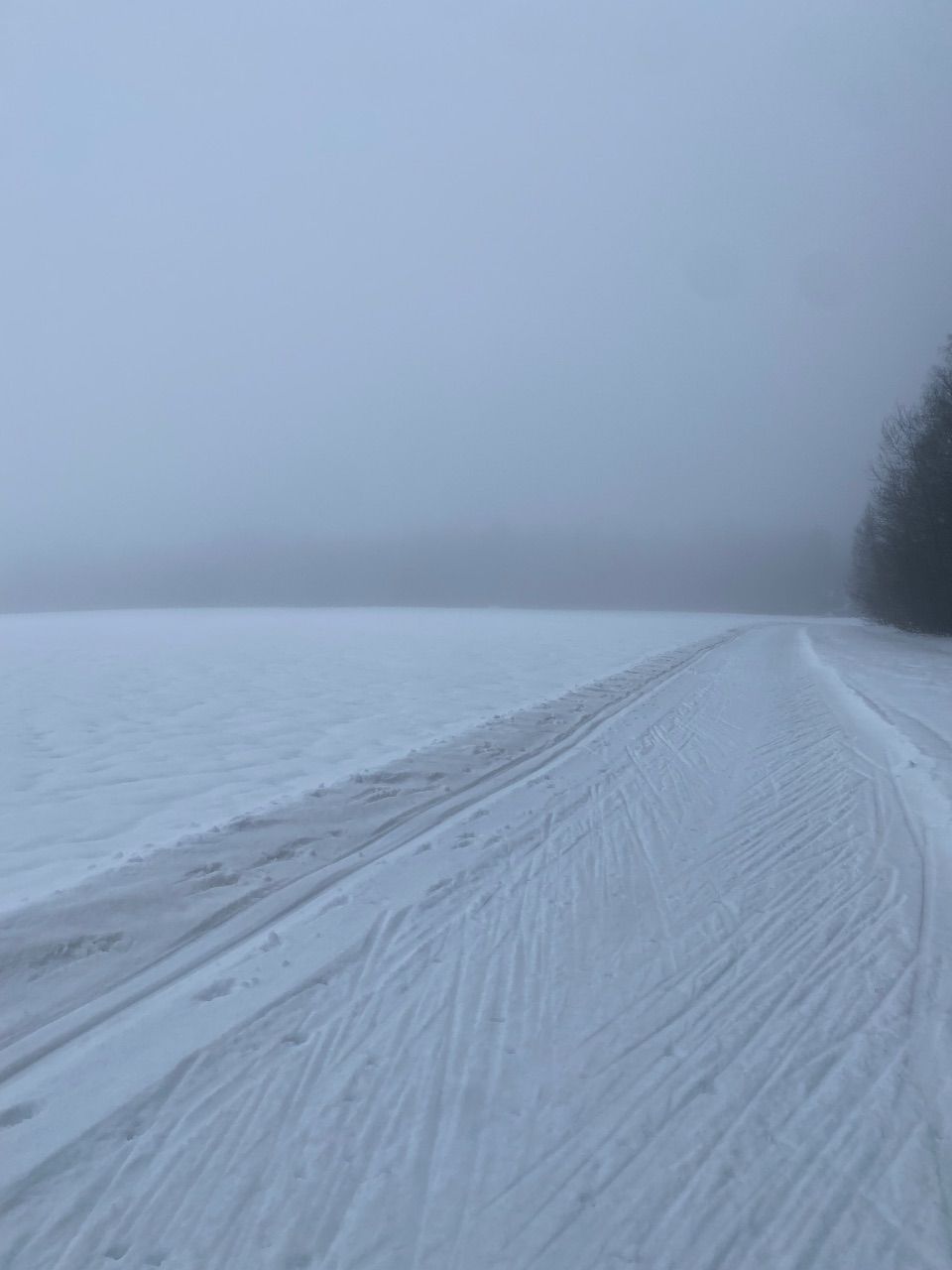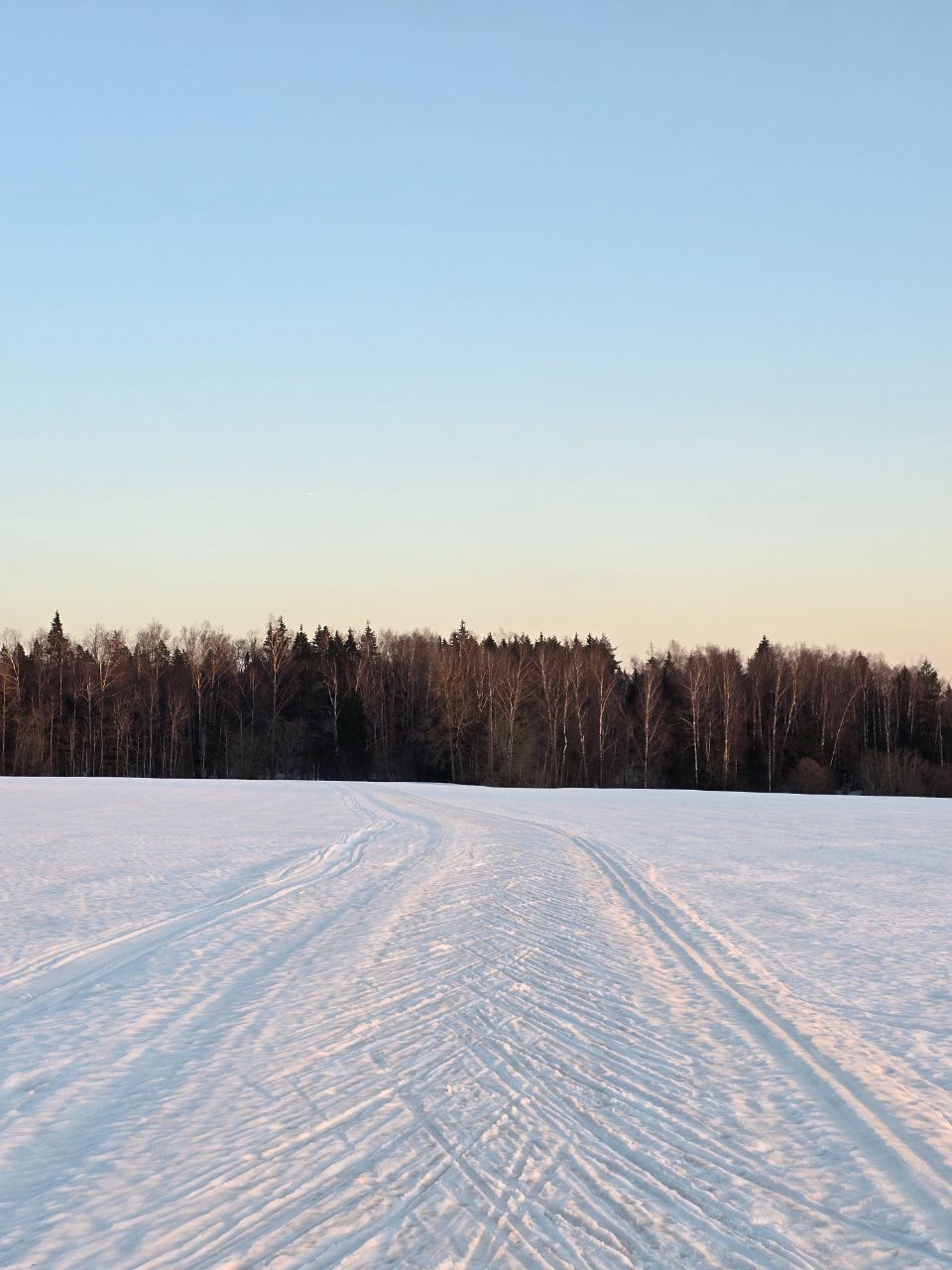Прокатился сегодня классикой от лыжной базы по 8 км кругу до ППП, далее к СНТ Атланты и до Мурановского поля. Проехал вокруг поля и обратно до лыжной трассы. Также проехал по третьему полю и далее на 4 мост и по трассе и оба поля. Классическая лыжня есть на 5 км круге. Доп. петлю вчера начали готовить колесным блоком. От ППП до Атланты проложена классика (самотоп). От Атланты до Мураново туда-обратно проехал снегоход, по следу гусеницы вполне нормально можно ехать классикой, но лыжами поднята земля и листва. Мурановское поле перепахано квадров и снегоходами. Заехал также на все три поля. Классики нет, но трасса ровная, ветра нет. Очень комфортно катать по малому полю, без рельефа.