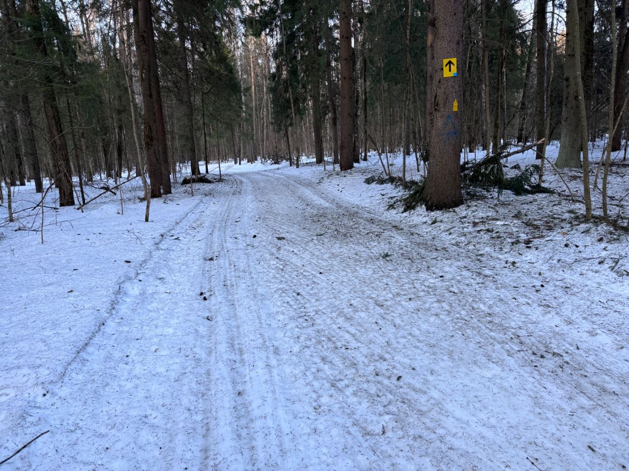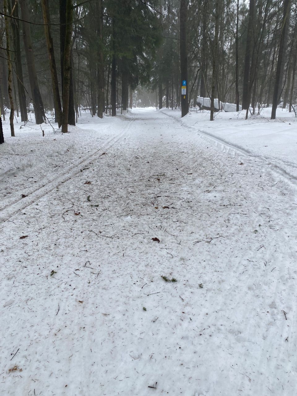 Лучшее катание рано утром, но парковка открывается в 9. Приходится парковаться где-то. К 9 я уже шел 3-й десяток км. Трасса не готовилась, но вполне в хорошем состоянии. Даже все лесные петли проезжаемы. Если бы прошлись хоть габошей, было бы отлично.
