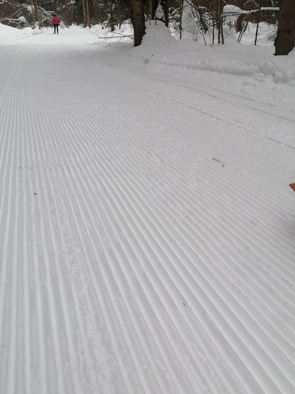Лыжную трассу не обновляли. Выпало 3см снега. Состояние трассы хорошее, близкое к идеальному.