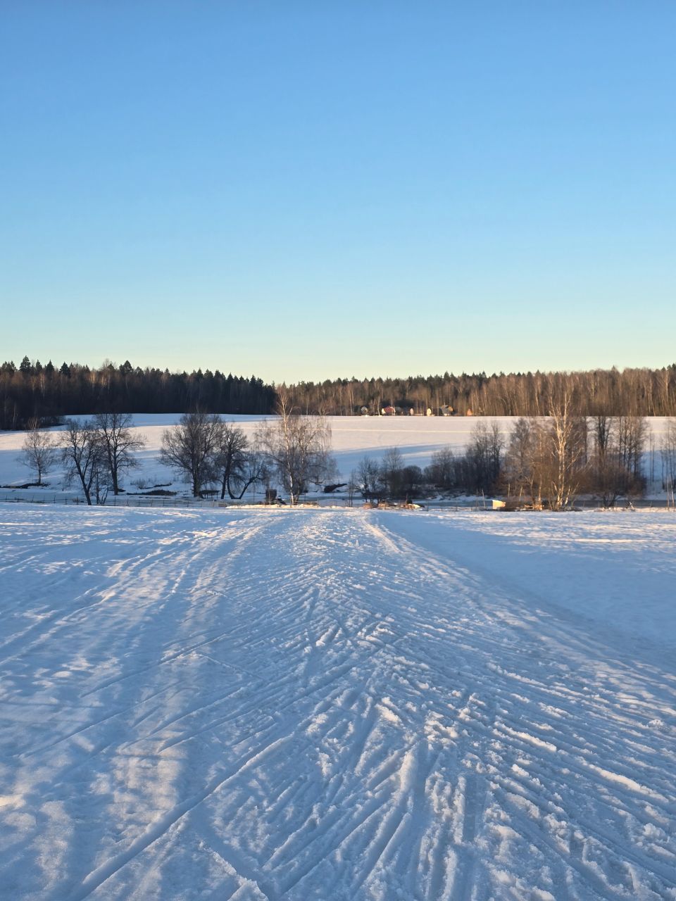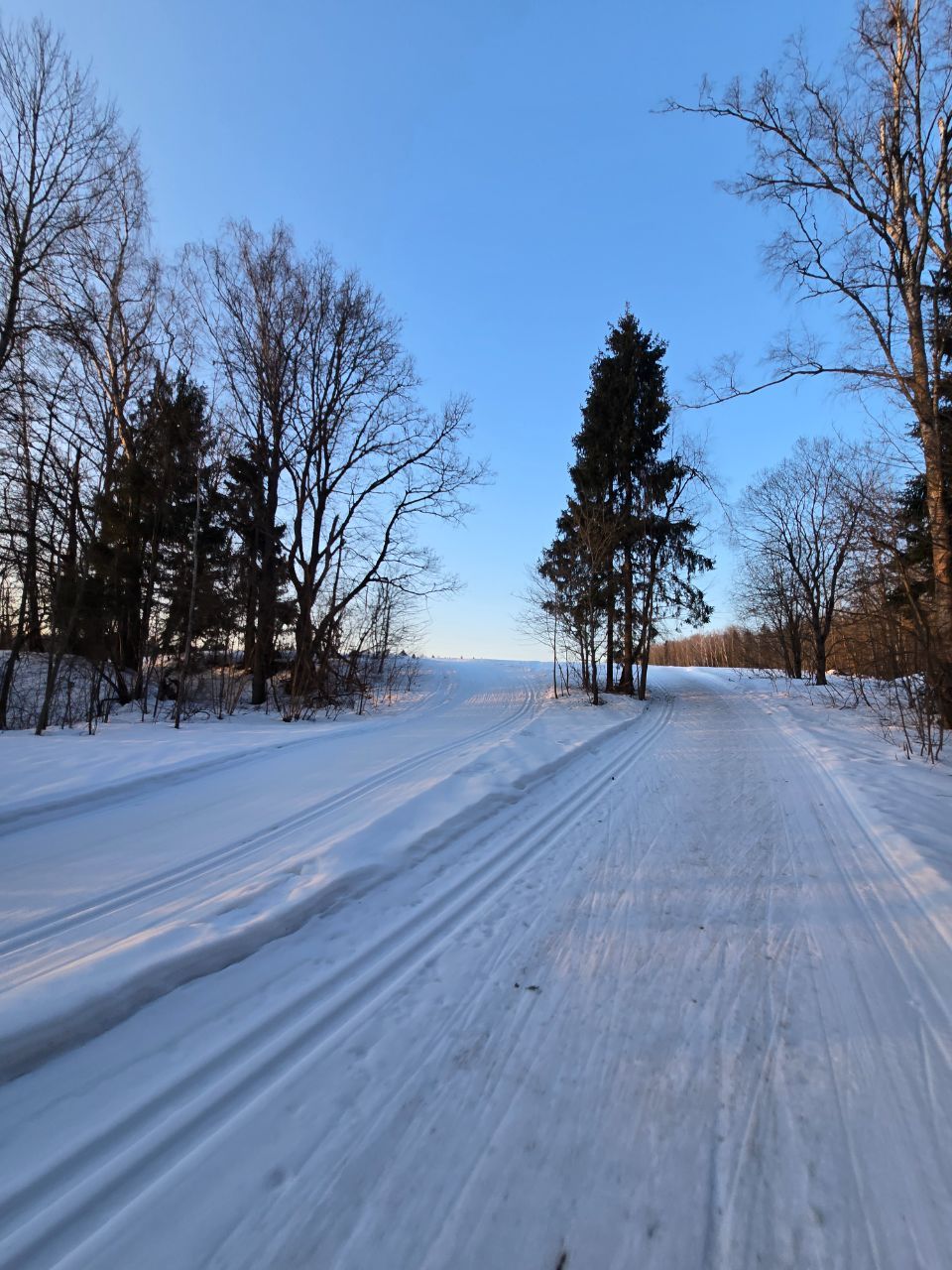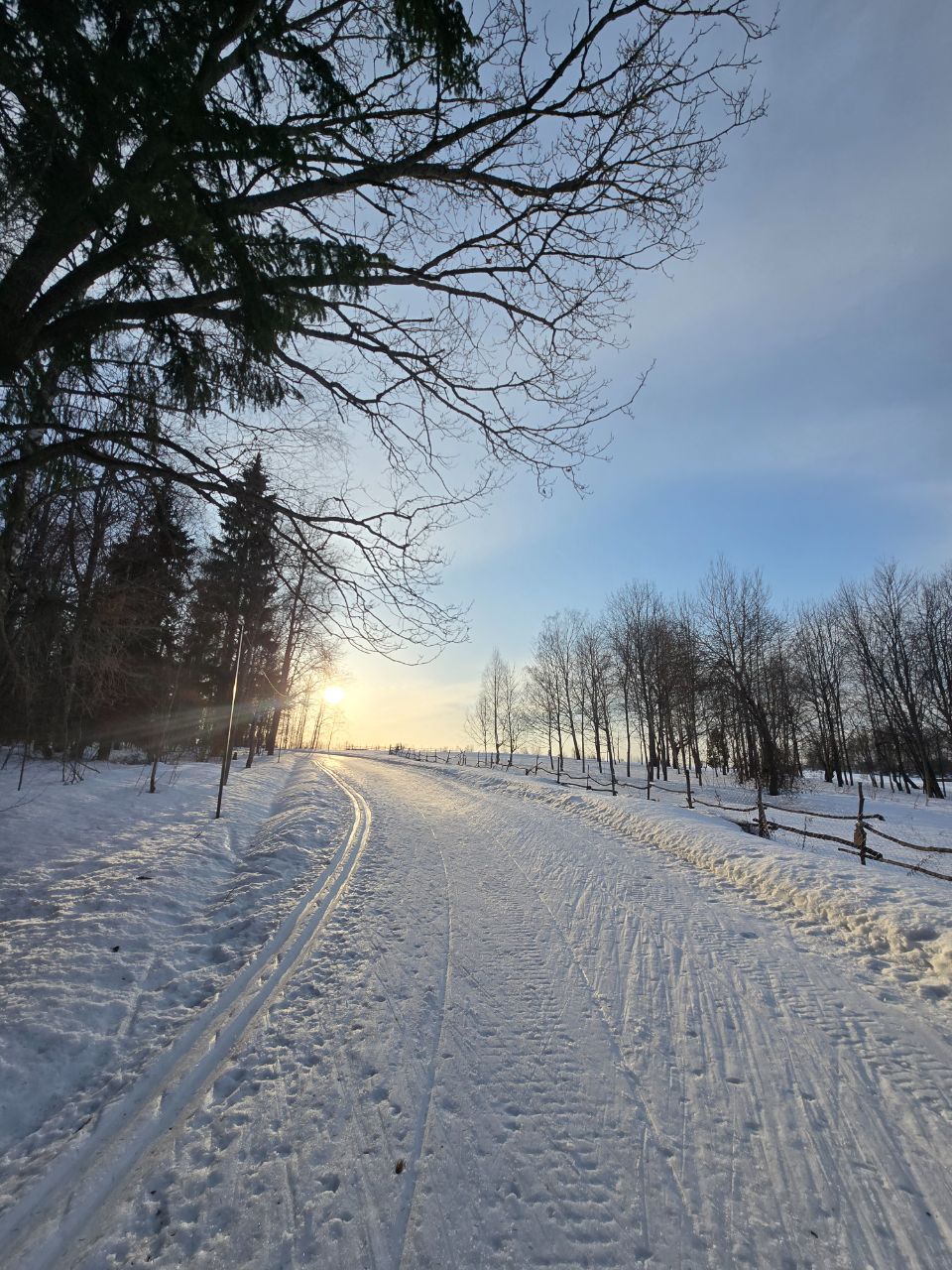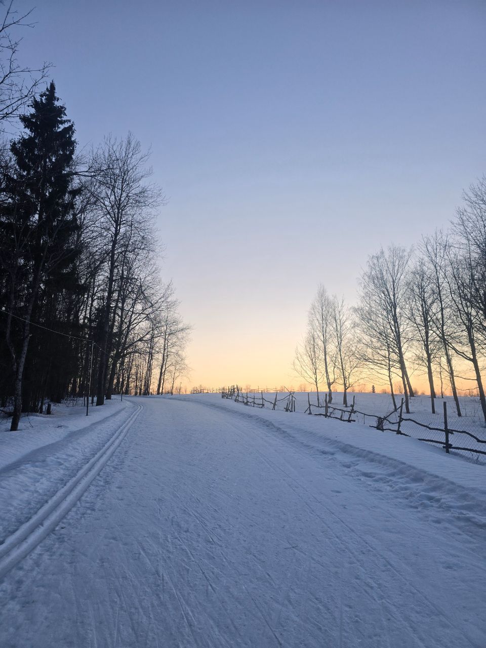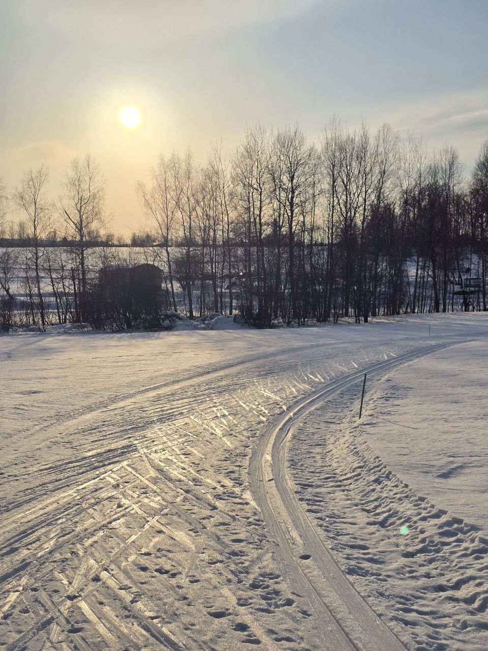 Доброе утро! Вчера, когда основная часть лыжников покатались, мы прошли техничкой и обновили трассу по круку: 2км, третий мост, поворот на 5км, третье, второе и первое поле.
