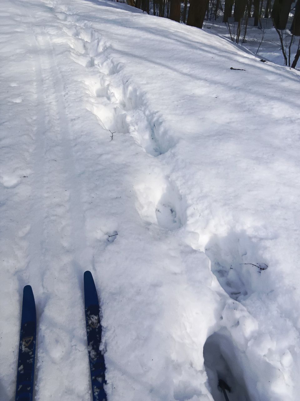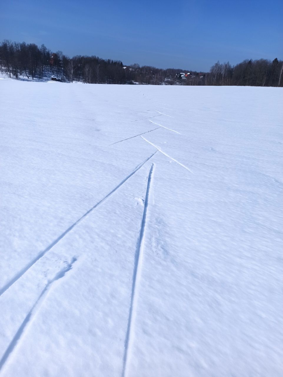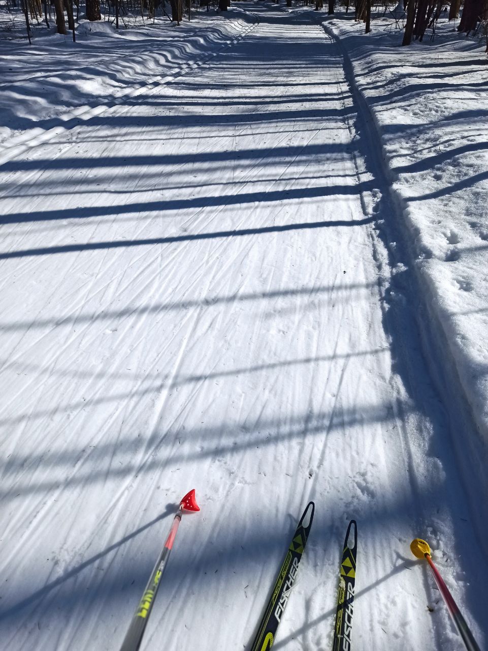 А в целом, получилось отличное катание с 16 до 18, сегодня ещё ветерок подсушивал немного поля, было мягко, но скольжение приемлемое. Даже палки с узкой лапкой не проваливались.