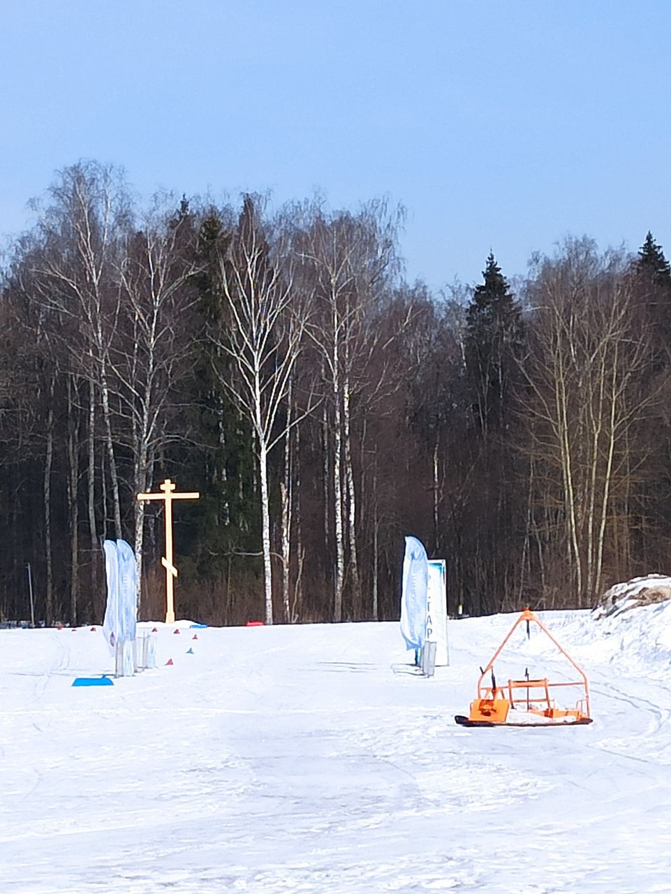 Зона старта и лесная часть подсыпается исключительно чистым снегом с обочин.