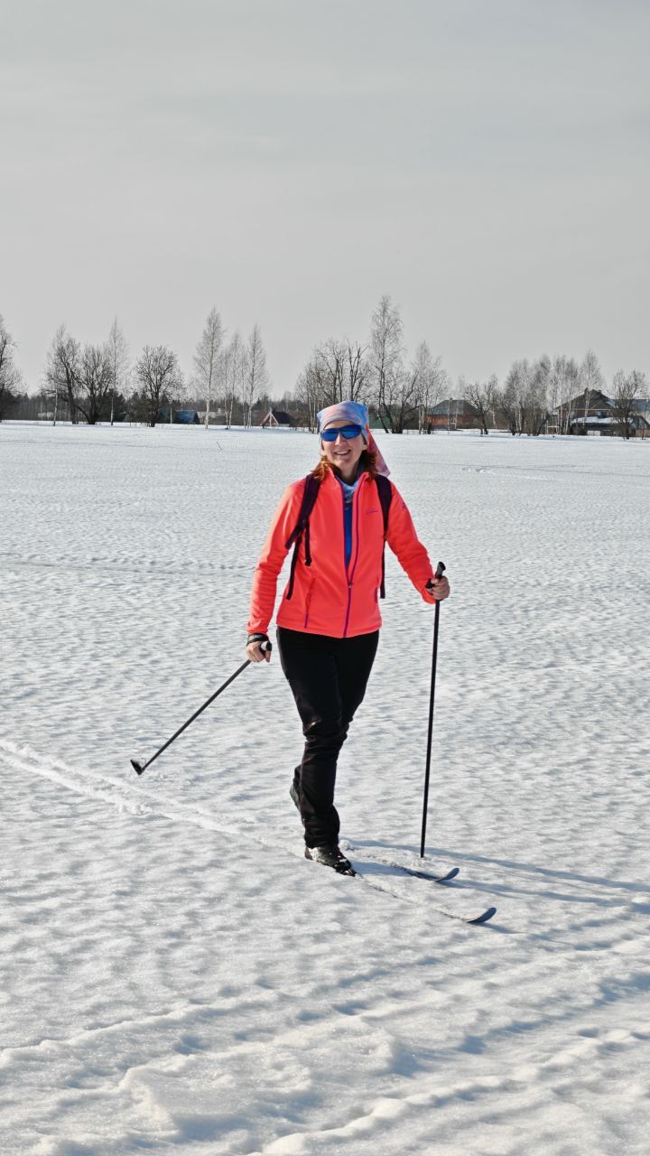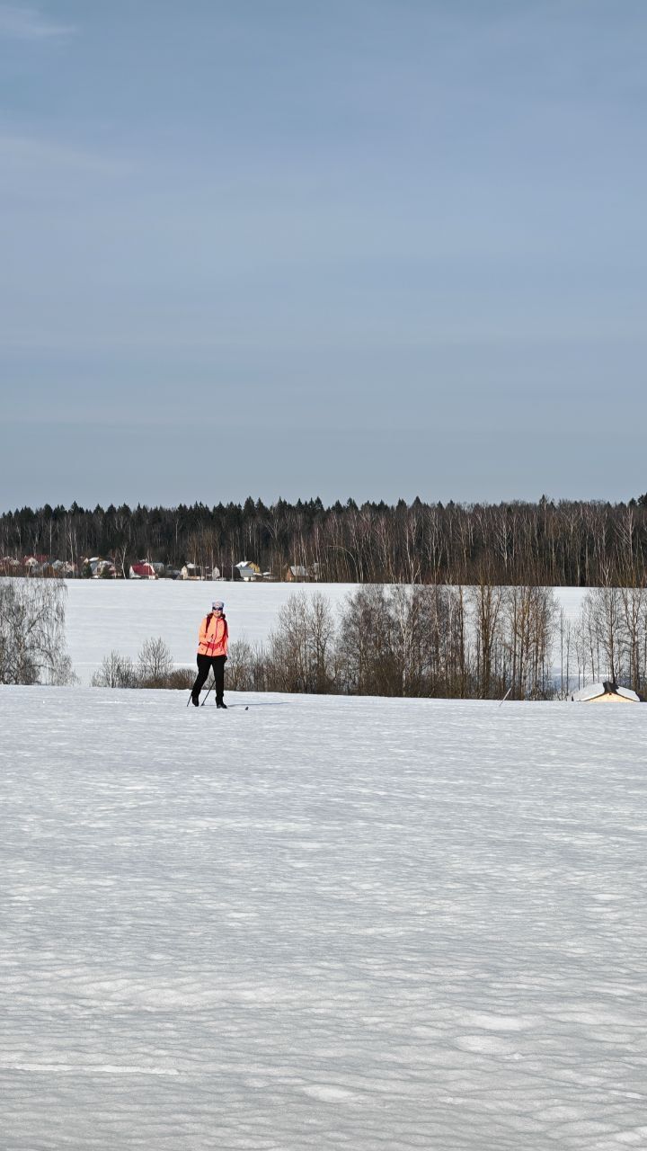 На улице +15 а ты едешь на лыжах по снегу в Подмосковье.