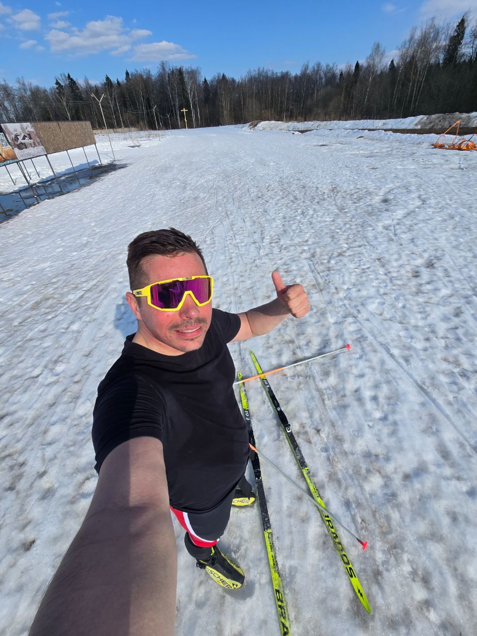 Никогда не говори никогда. После роллеров опять потянуло на лыжи. В нововоронино. Первое и второе поля великолепно. Скорости высокие. +10+14.при этом штиль. Солнце. Единственный минус оказался лесной отрезок 2 км. На момент катания. Очень грязно. Может исправят к завтрашнему старту. Но на приличных лыжах не стоит. Замечательный сезон. Спасибо за трассу.