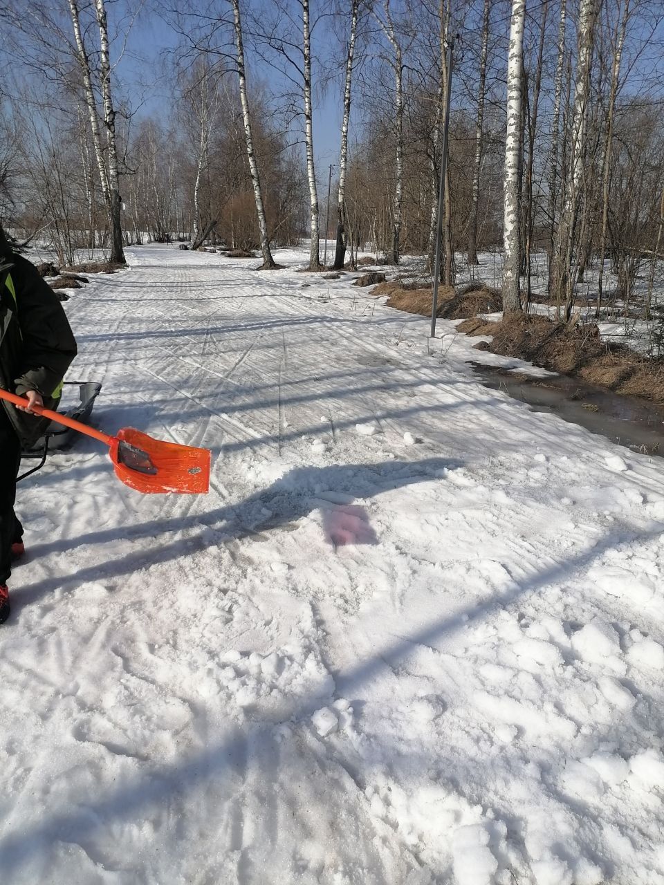 Продолжаем вести работы по сохранению лыжной трассы к лыжне Калмыкова, которая пройдёт в эту субботу 28 марта 2026г.