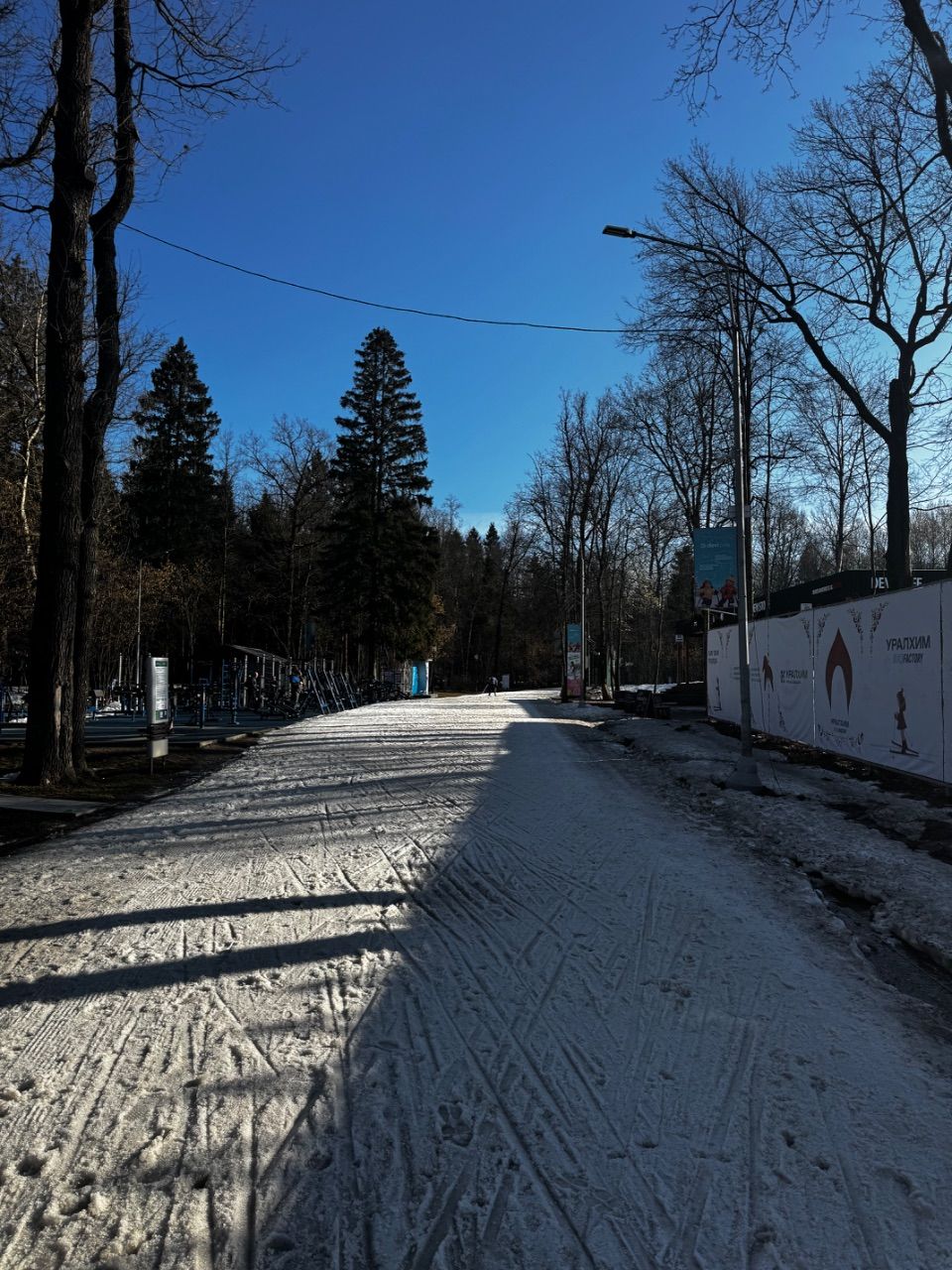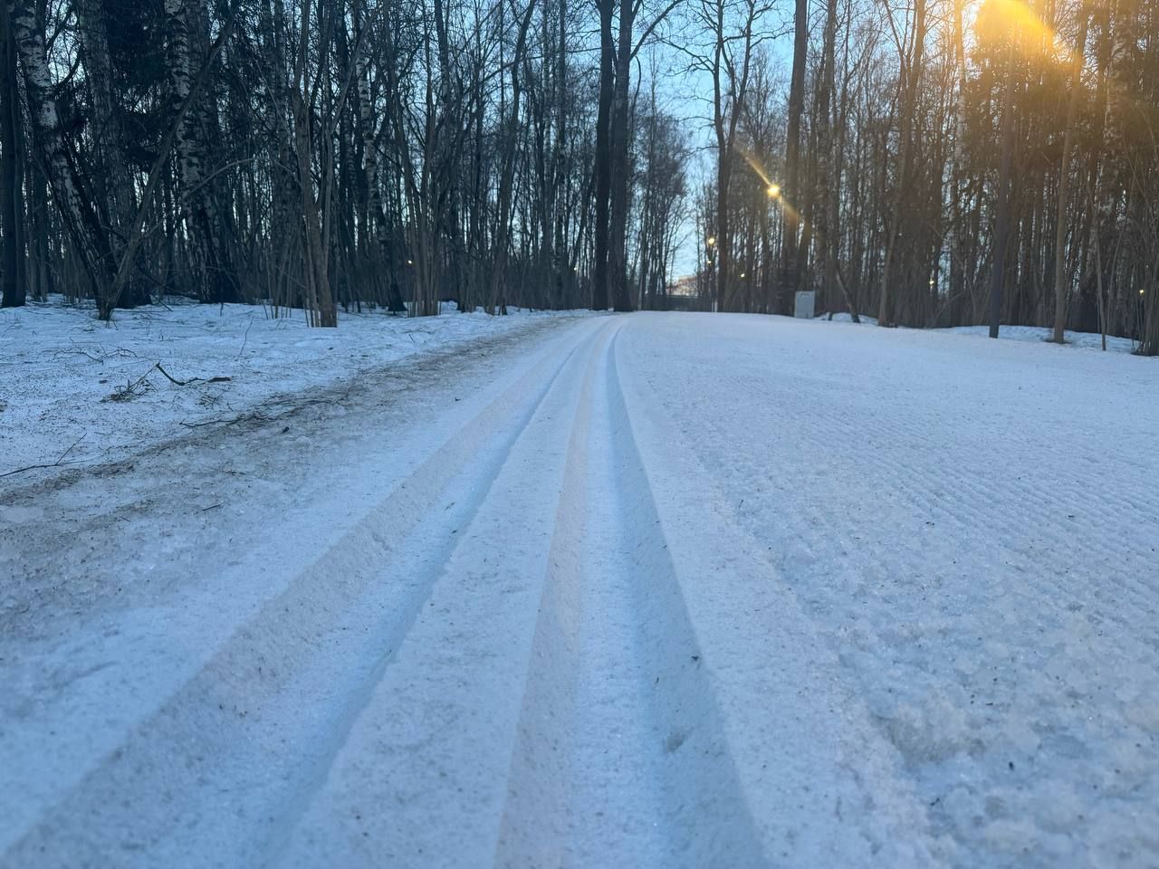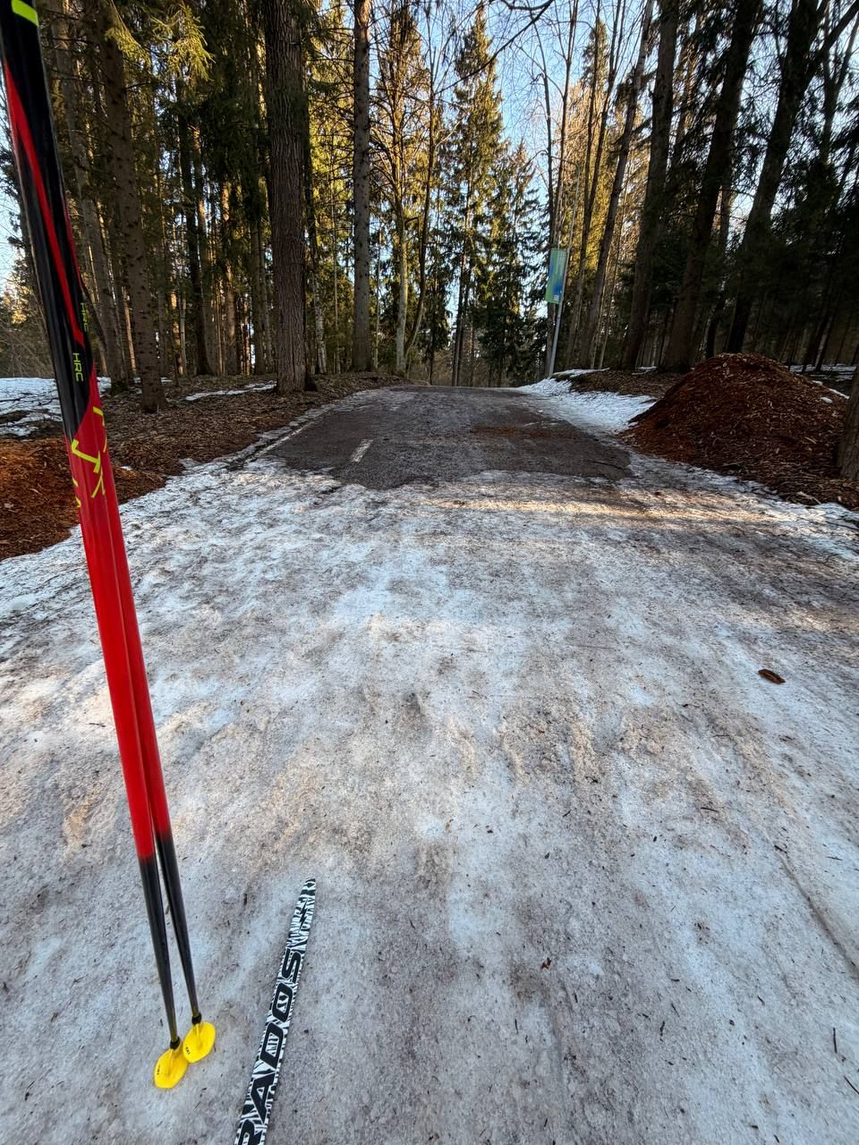 Катал в 7 утра. Было почти норм, лыжи прилипали местами. Мужик на ратраке сказал, что это крайний раз готовки трассы.