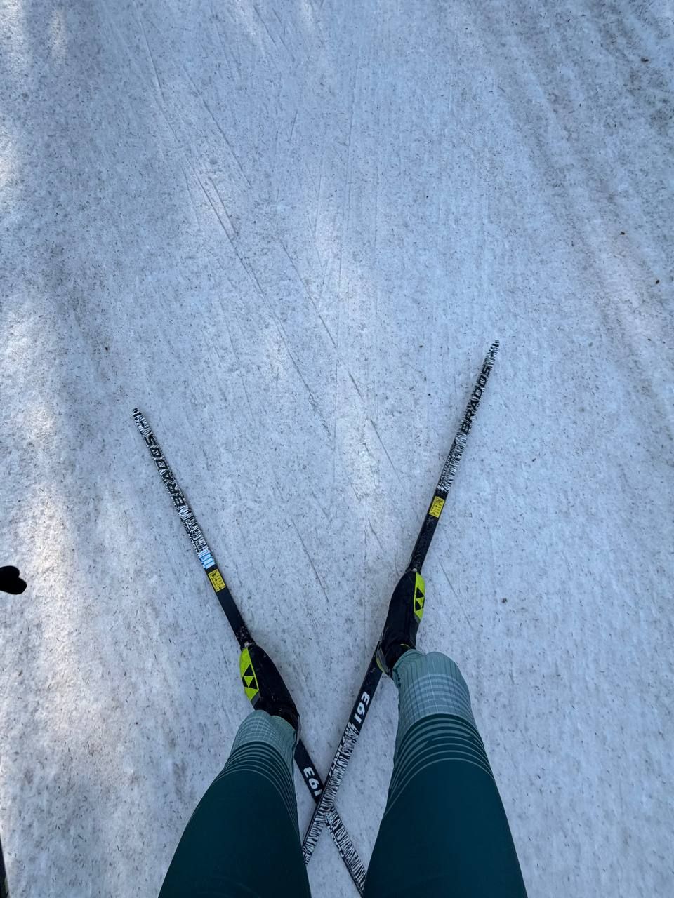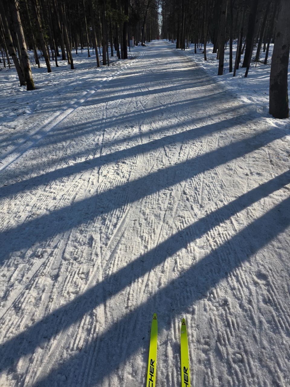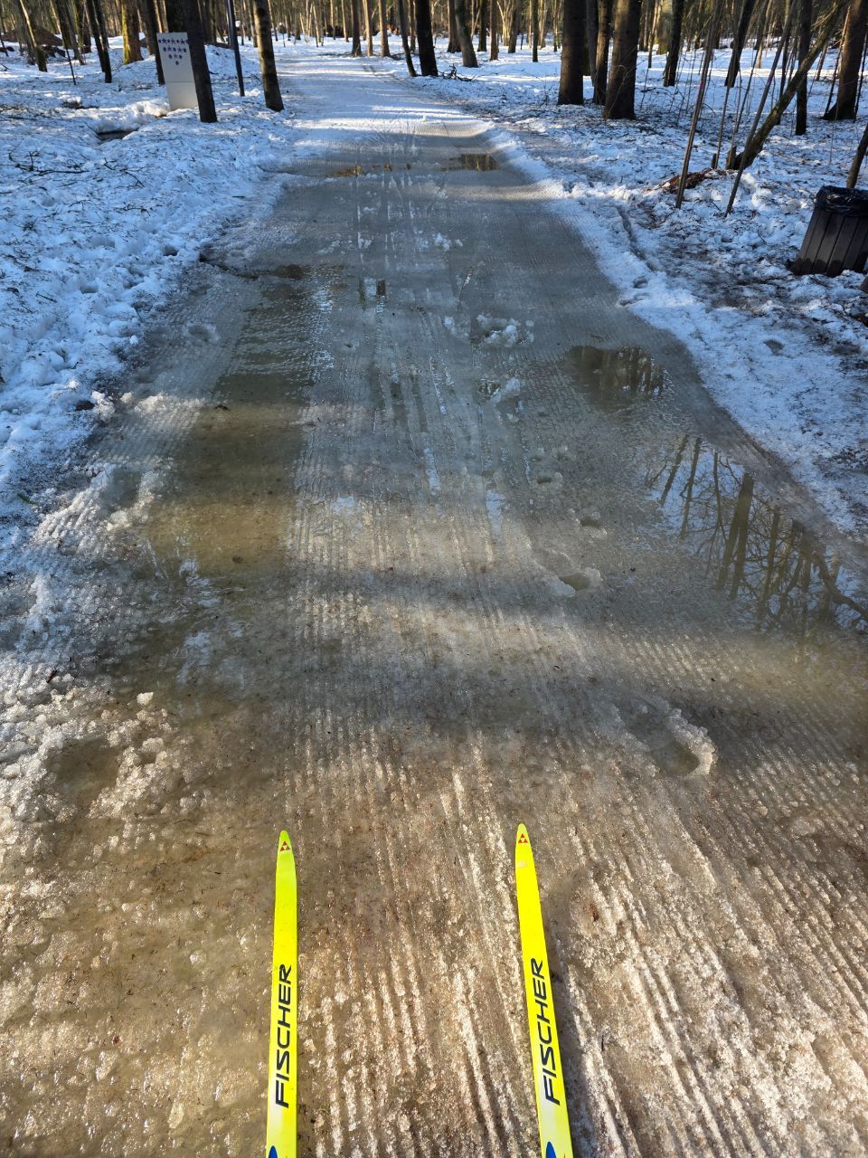 Катал в 7 утра. Было почти норм, лыжи прилипали местами. Мужик на ратраке сказал, что это крайний раз готовки трассы.