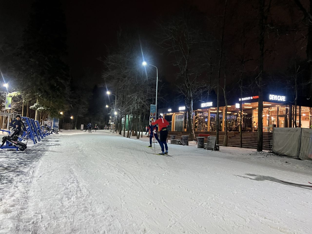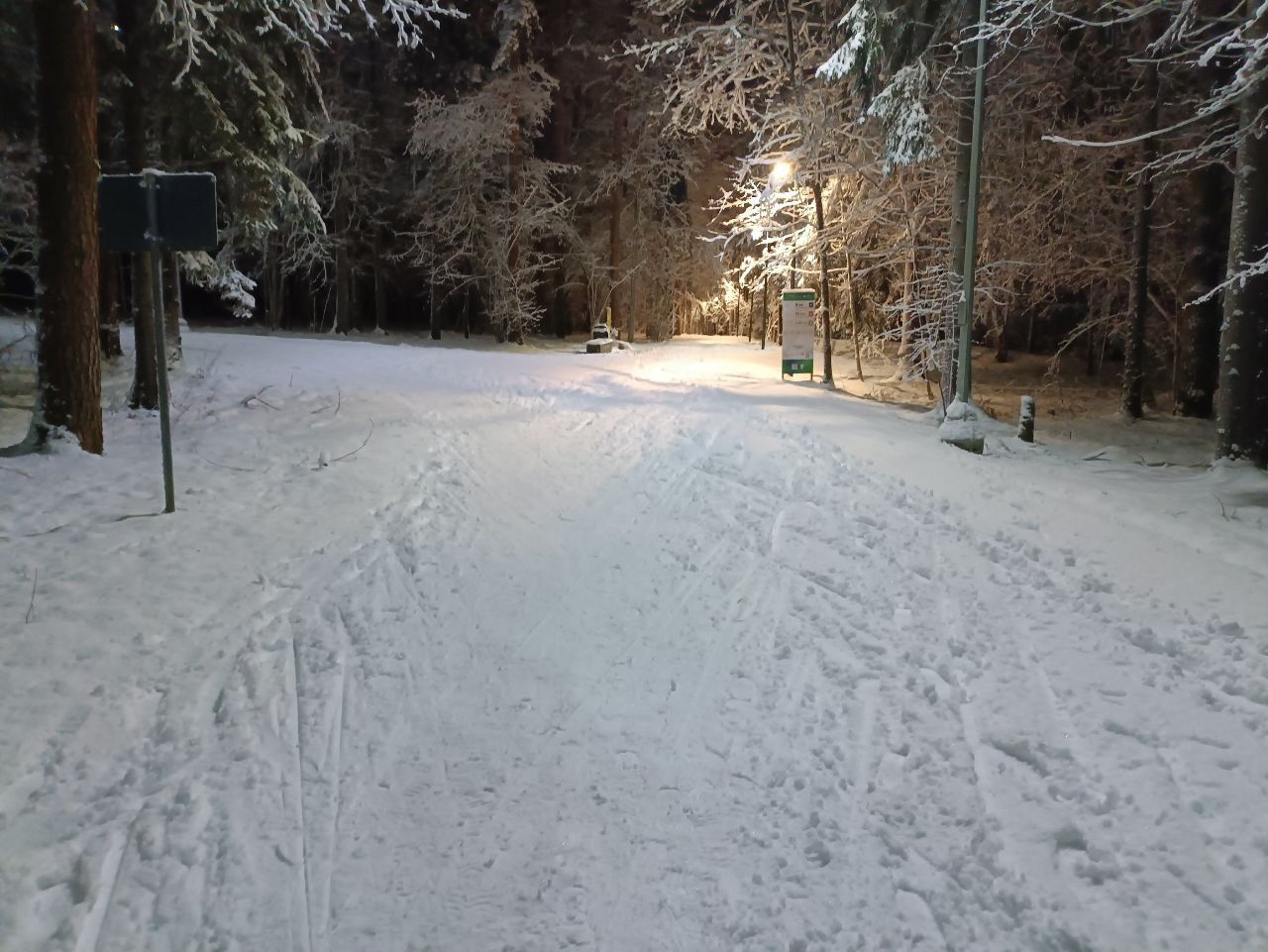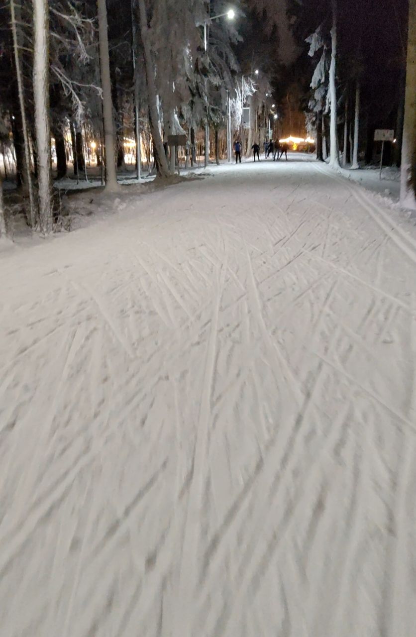 21.30-22.50 просто зимняя сказка, идеальный круг 600 метро, лыжи кантуются хорошо, каши нет, настреливают дополнительные участки