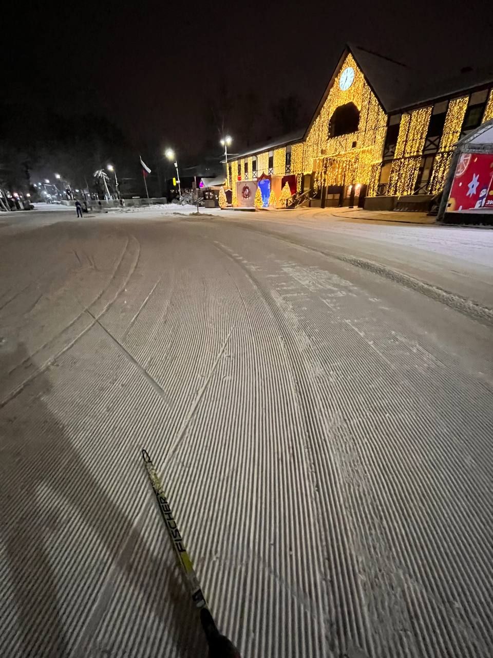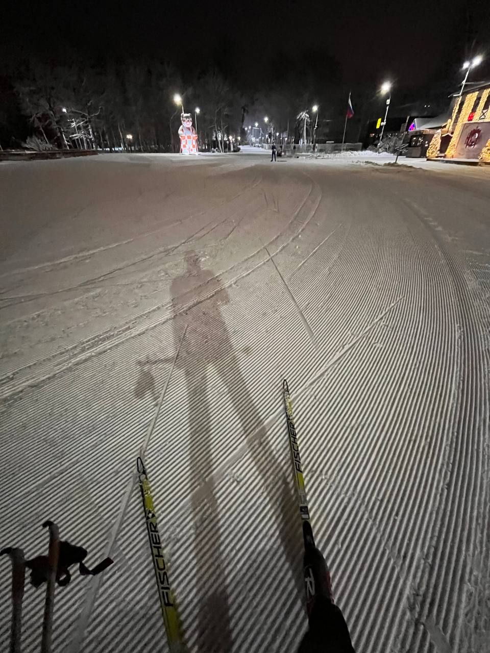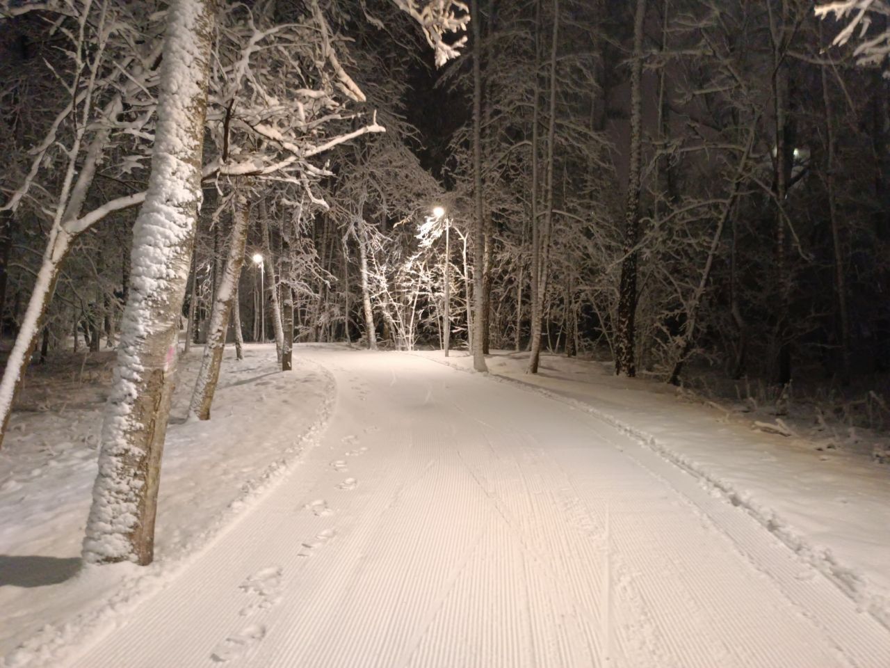 21.30-22.50 просто зимняя сказка, идеальный круг 600 метро, лыжи кантуются хорошо, каши нет, настреливают дополнительные участки