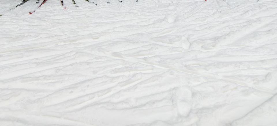 Хорошая трасса сегодня! Стартовый круг 1,2 км подготовлен пушками. Остальное — естественный снег.