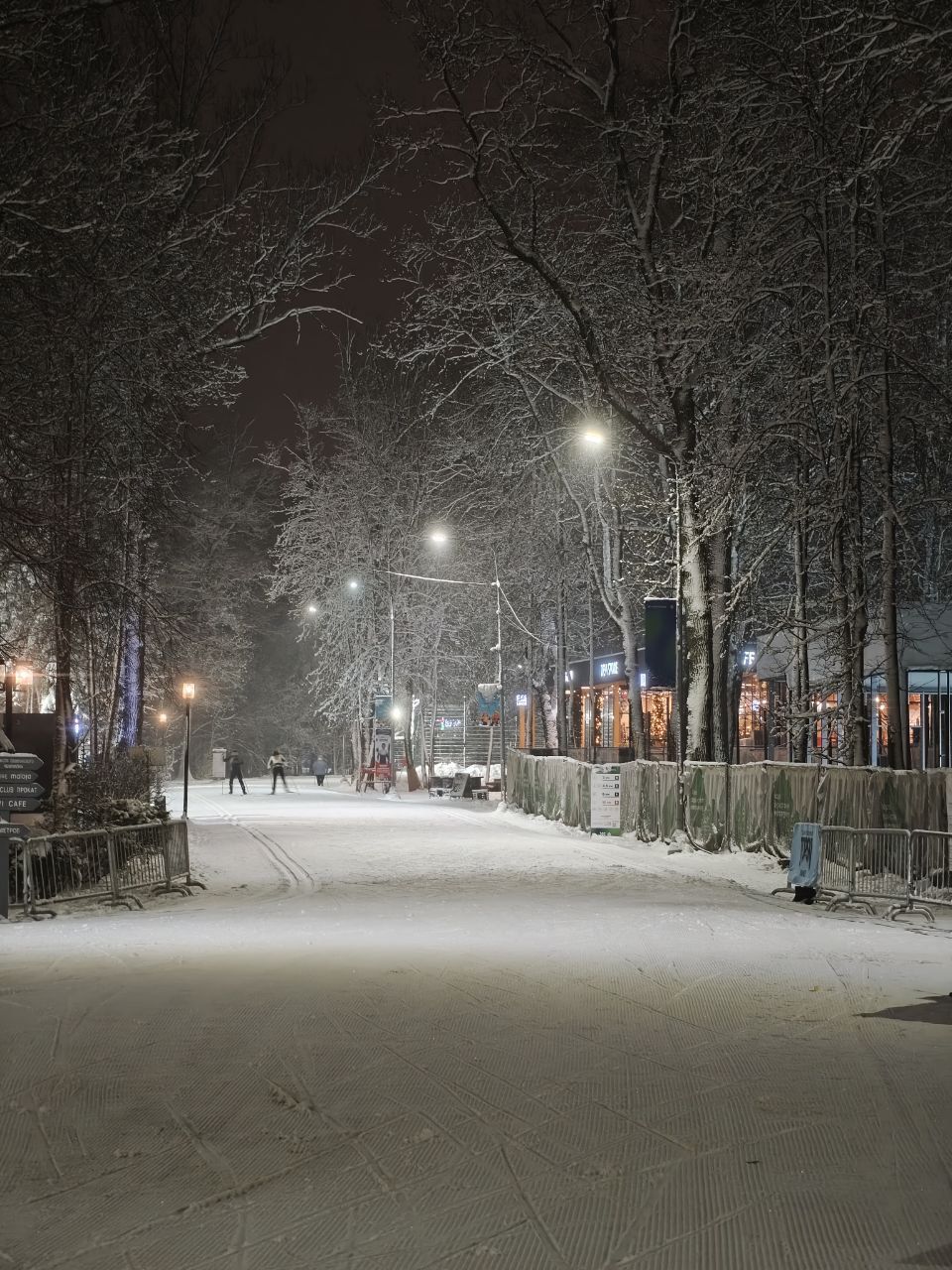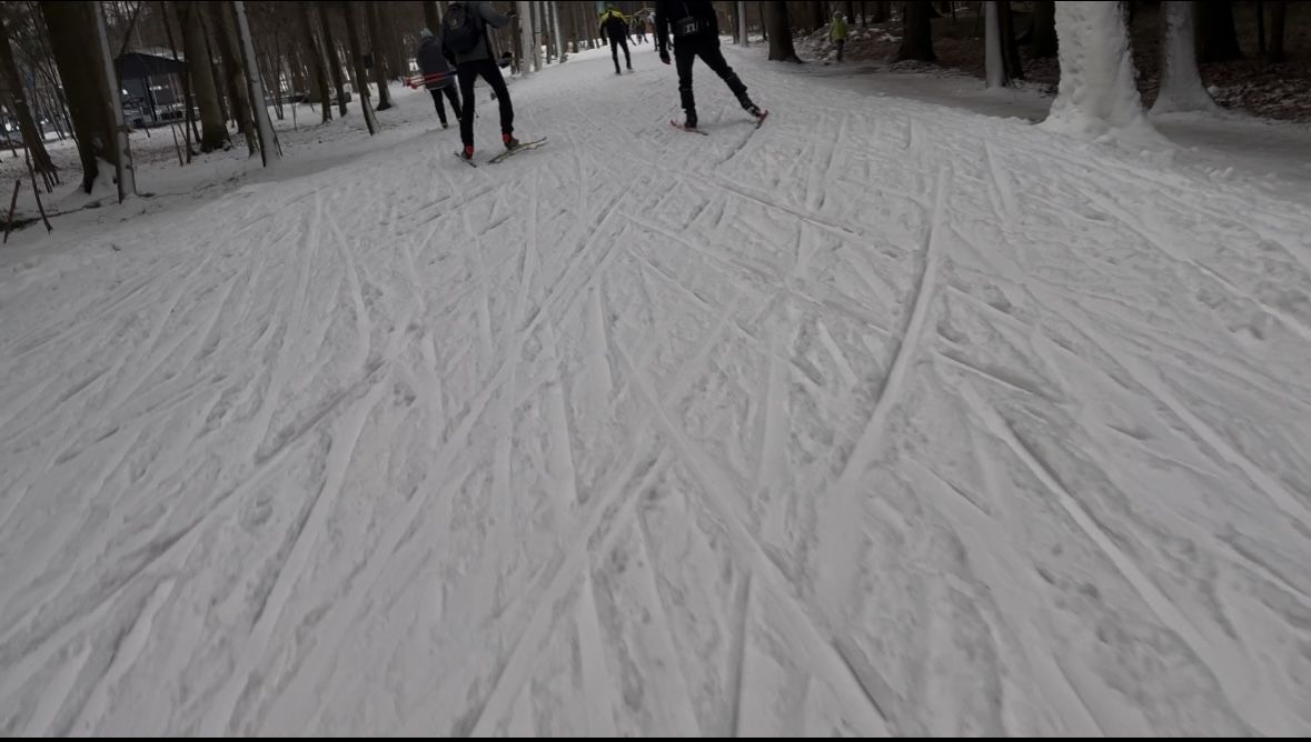 Потом проехал роллерку, и там оказалось даже даже лучше! Слой снега местами не очень толстый, но его хорошо укатали, что не было шансов зацепить асфальт. Можно на хорошей паре. Подъёмы широко и жестко. После Эко тропы много пухляка, который еще не укатали. Возможно, когда подморозит, то рискнут пустить ретрак.