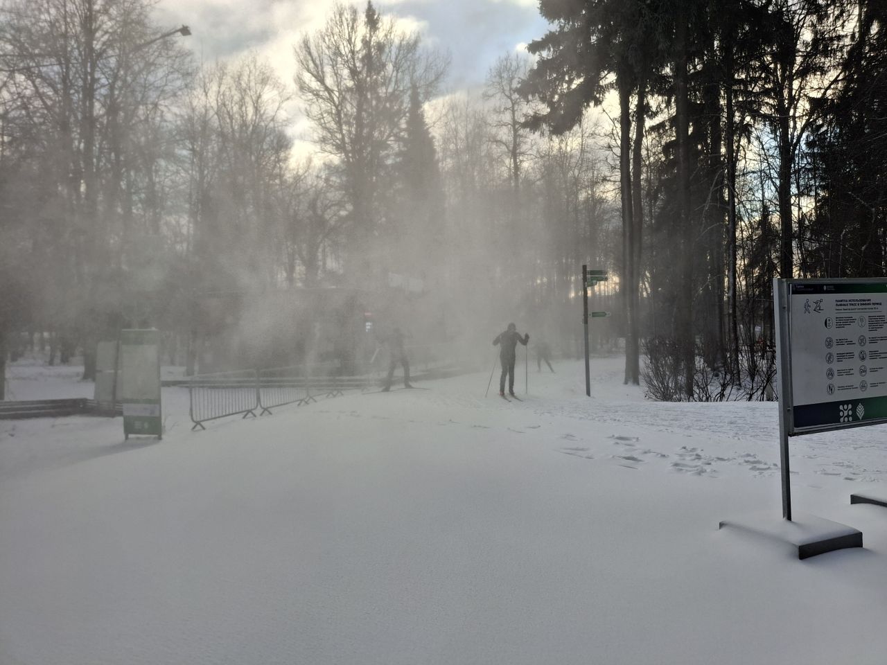 Катался сегодня с 10.30 до 11.50. Круг 600м подготовлен под конёк и классику. Ещё добавлена петля на туристической тропе примерно 1,5 км, на ней только конёк. Спасибо за подготовку трассы.