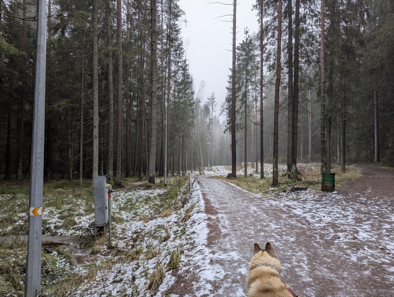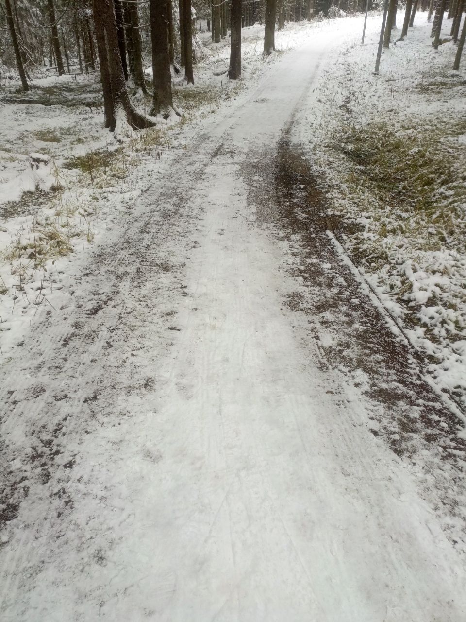 Трасса в Охта парке большей частью укатана, но местами встречаются прогалины и лед, причем чем ближе к началу трассы - тем больше.
