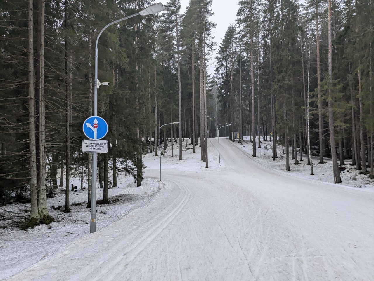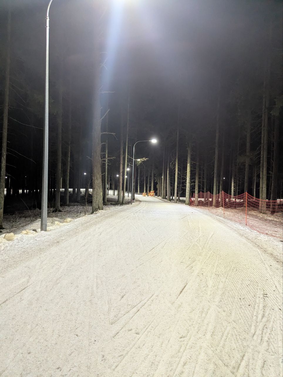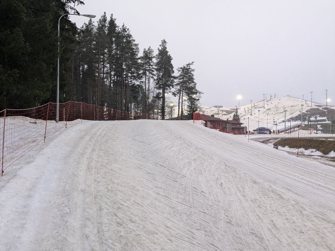 Даже снег в мясо не портит впечатление, мусора на трассе нет, кроме пары упавших шишек. Катит хорошо, если по укатанному