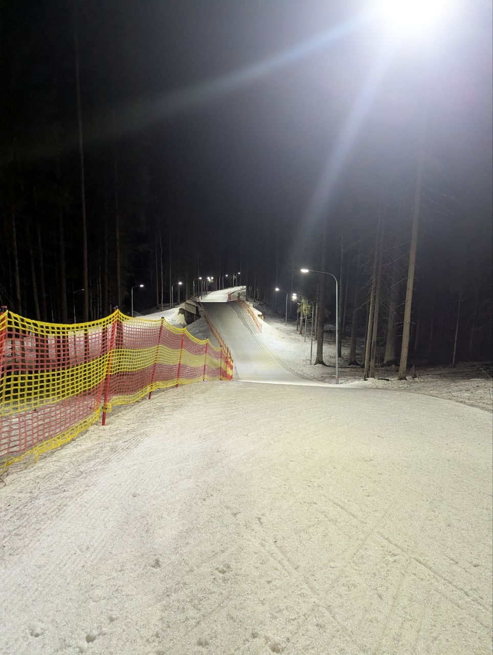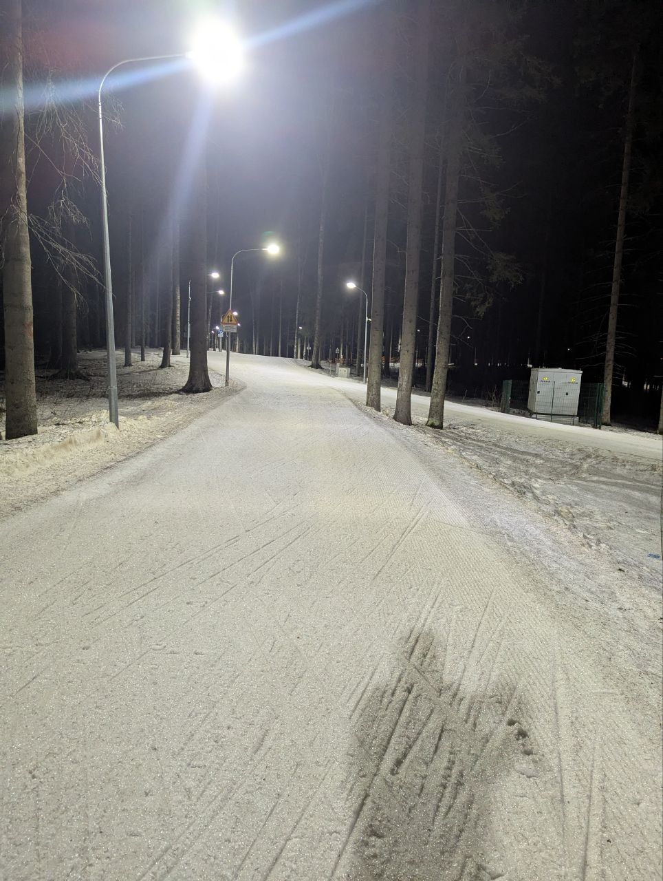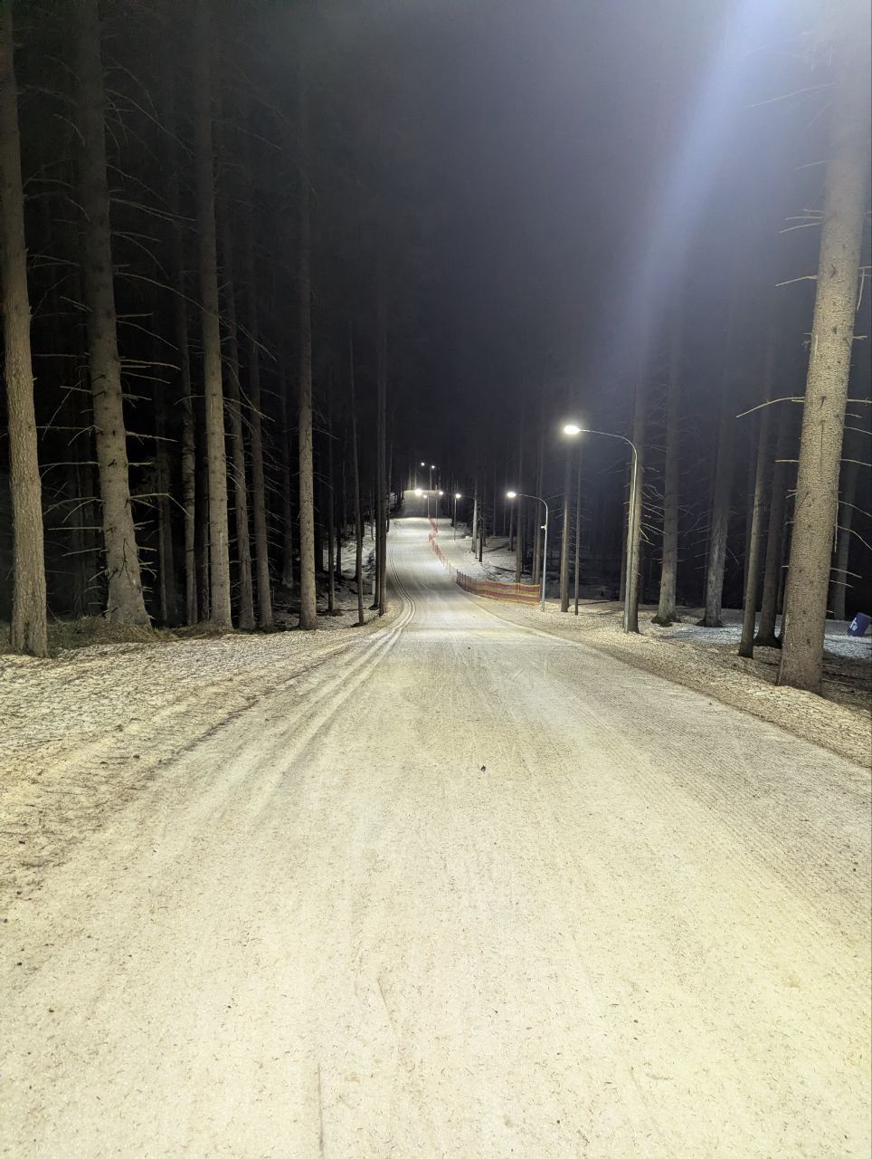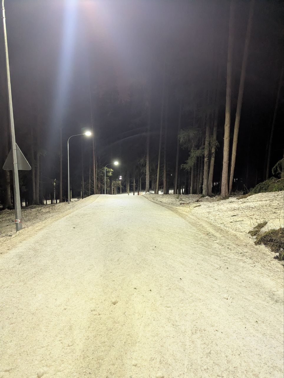 Даже снег в мясо не портит впечатление, мусора на трассе нет, кроме пары упавших шишек. Катит хорошо, если по укатанному