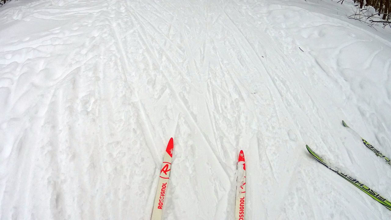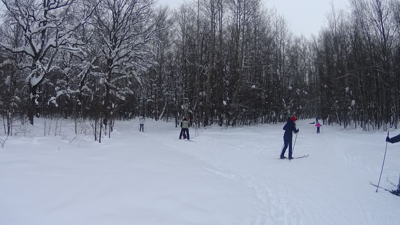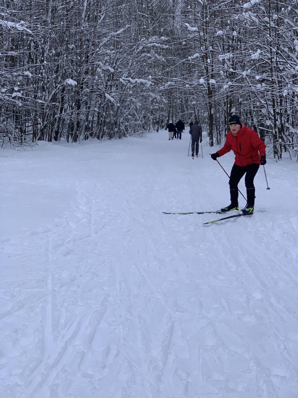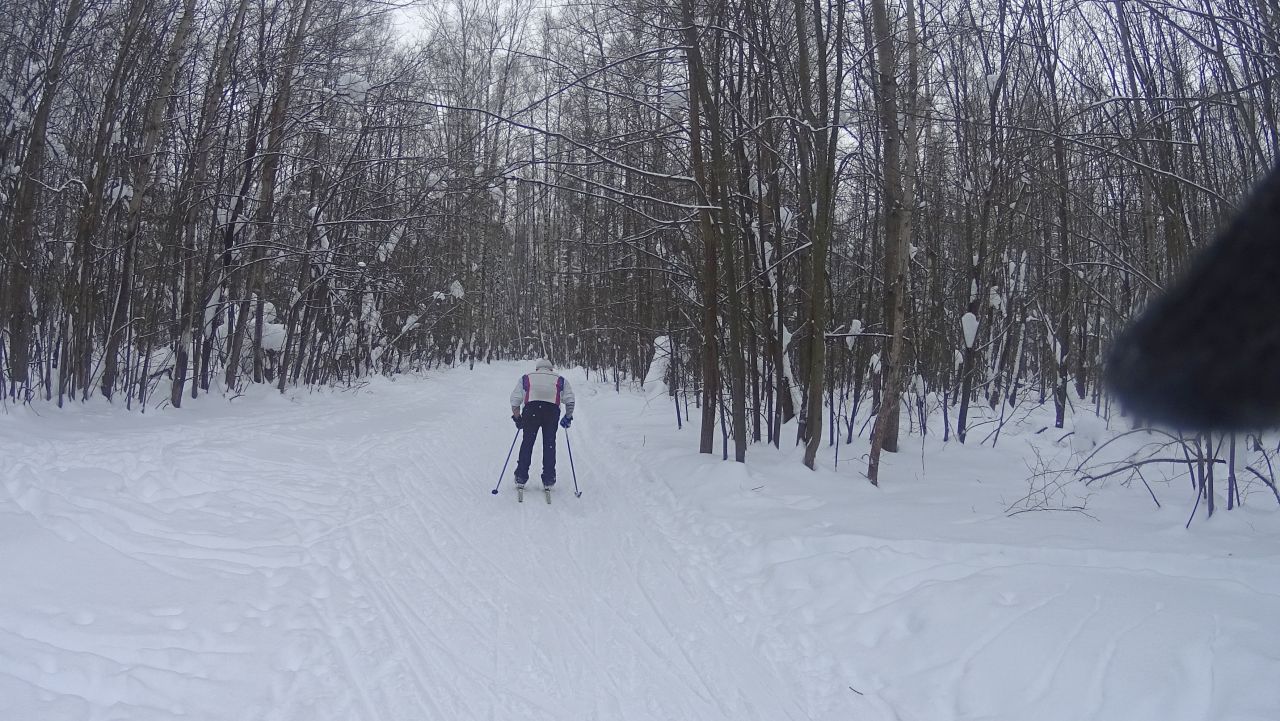 Благодаря народу и лёгкому снегопаду вчерашеие упавшие ветки канули в прошлое, ухабы и неровности подровнялись, для конька узко но катабельно только в одном месте(спуск) метров 200 нет укатанной ширины. Но в целом круг по лесу 1.5 км. И коньком, и классикой можно пройти. Трасска твёрдая в основании припорошена свежим снегом, для моих лыж россики дельта ком вполне катучая. Народа не много, человек десять. Каши, раздевалки, туалета как на московских трассах, нет. Только , лес, лёгкий морозец, белый натуральный снег и масса позитива.