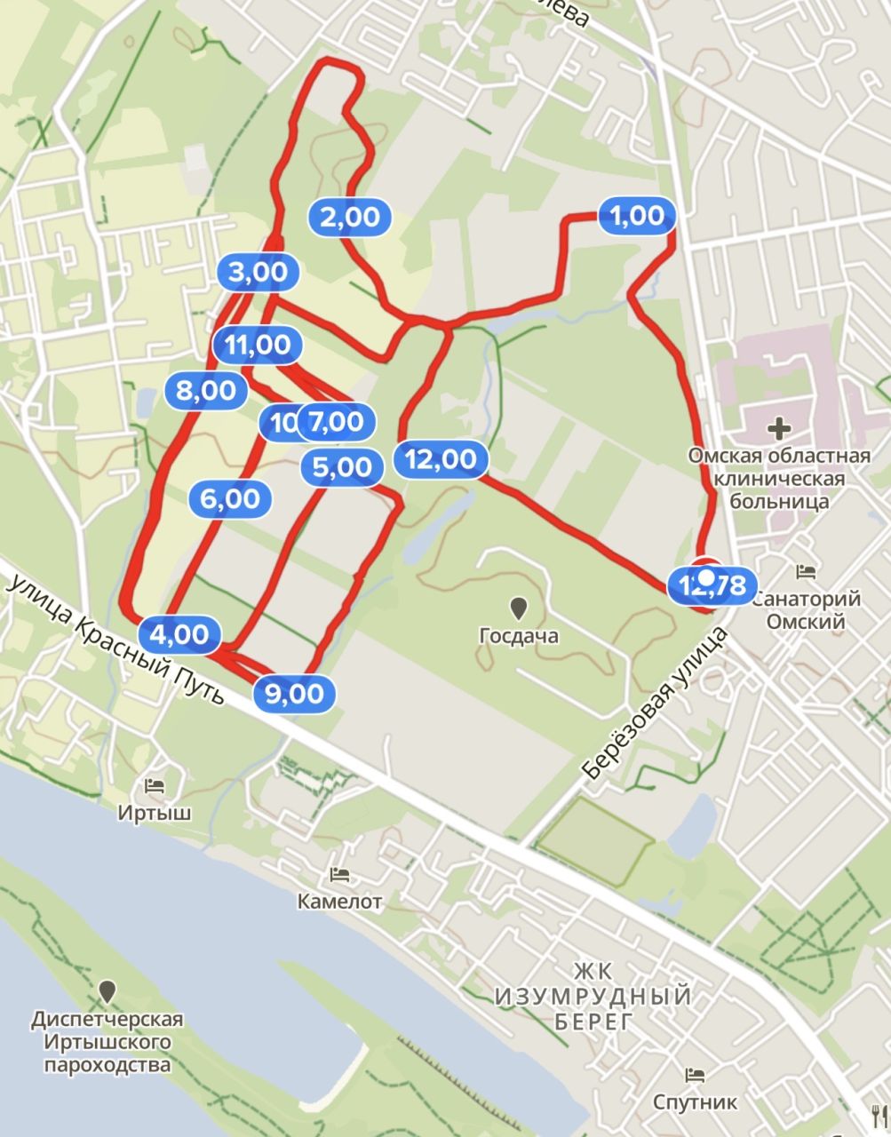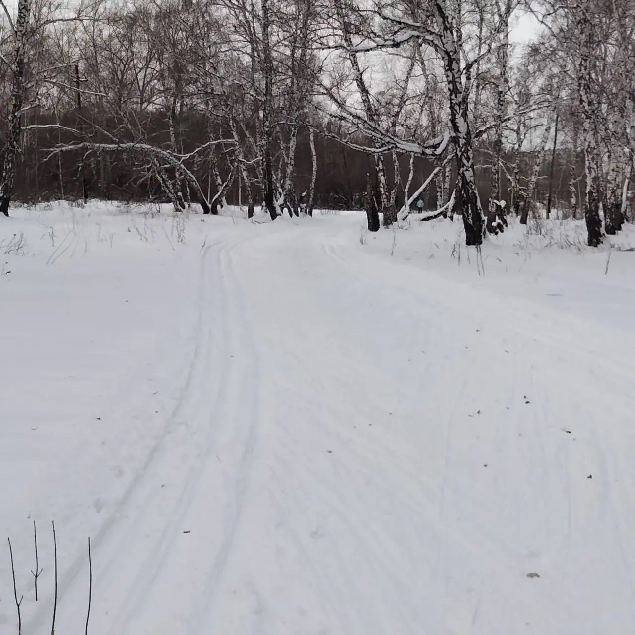 20.12.2025 Снег валит весь день, трасса в целом пока не готова. Но это уже гораздо лучше, чем было буквально два дня назад, когда о готовности вообще нельзя было говорить. Первые широкие проходы техникой сделаны, теперь дело пойдет. Вполне проезжаемы короткие круги у ЦЛС и половина «поля» ОмГАУ (без дальних подъема и спуска).