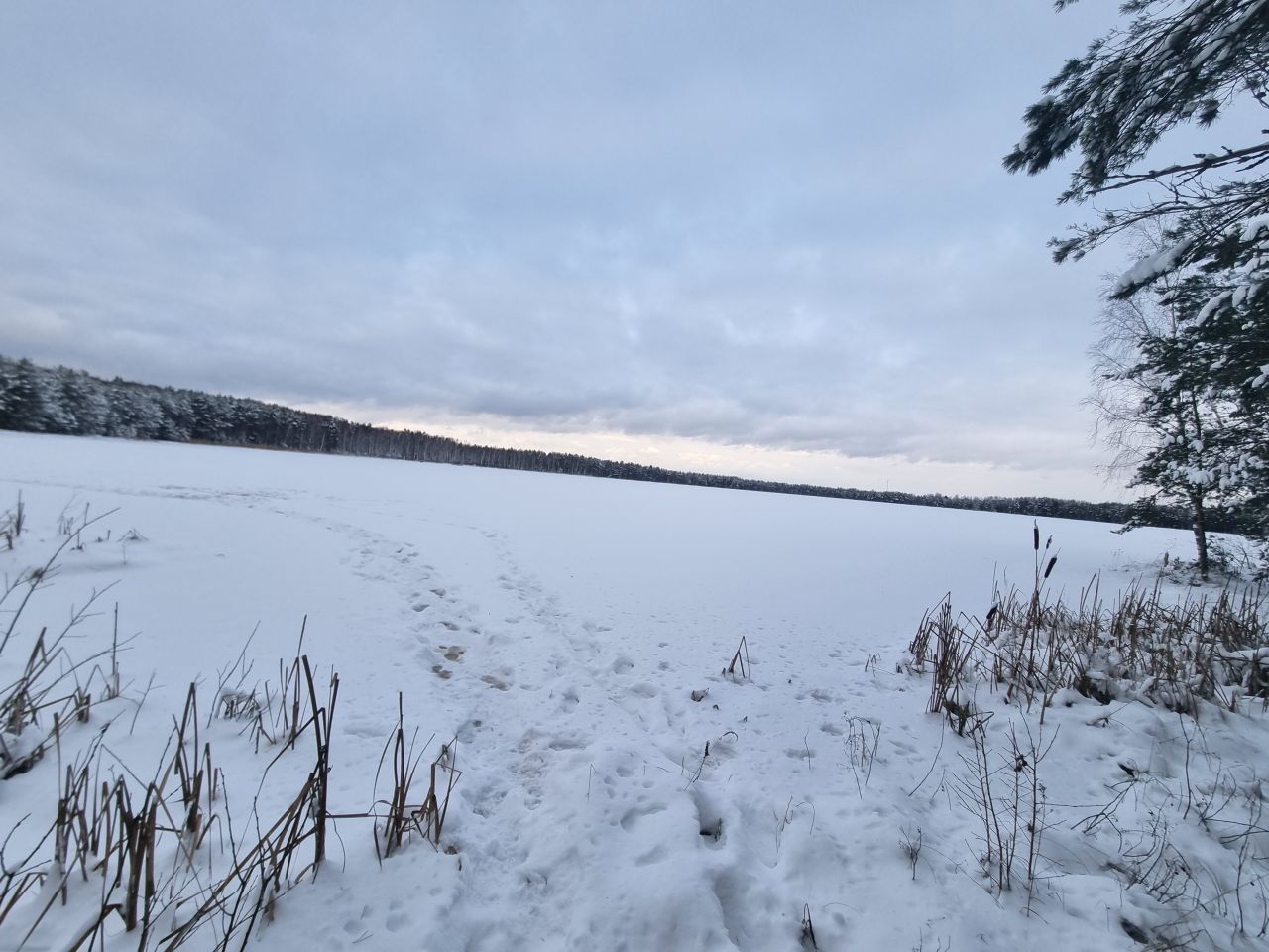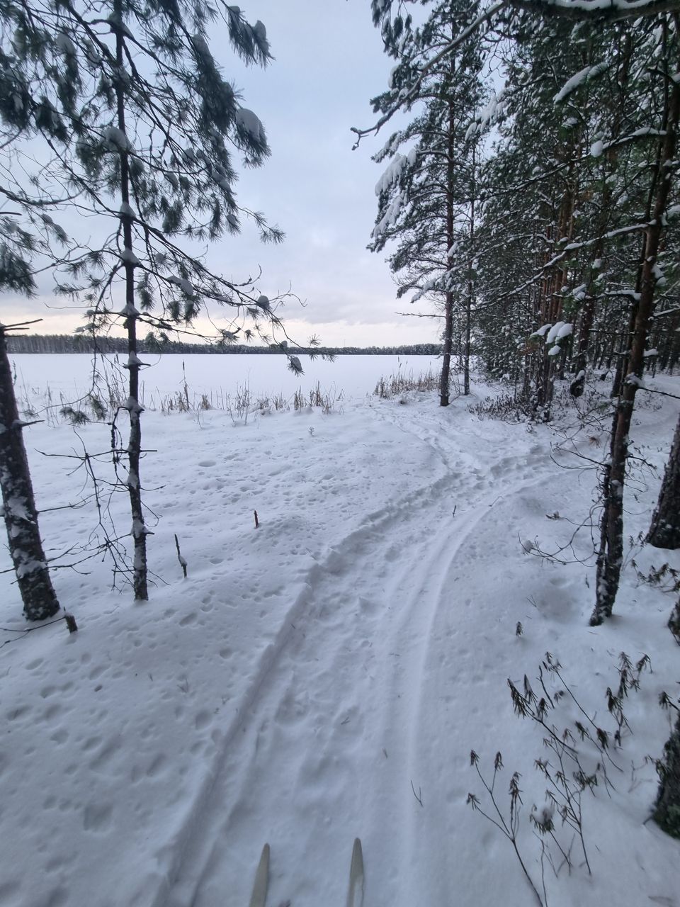 Есть и лыжни. Местами хорошо накатанные. Местами — продавлены во льду. А местами — глубокие в надутом ветром снегу. Вот тут не очень хорошо — ботинки за края цепляются.