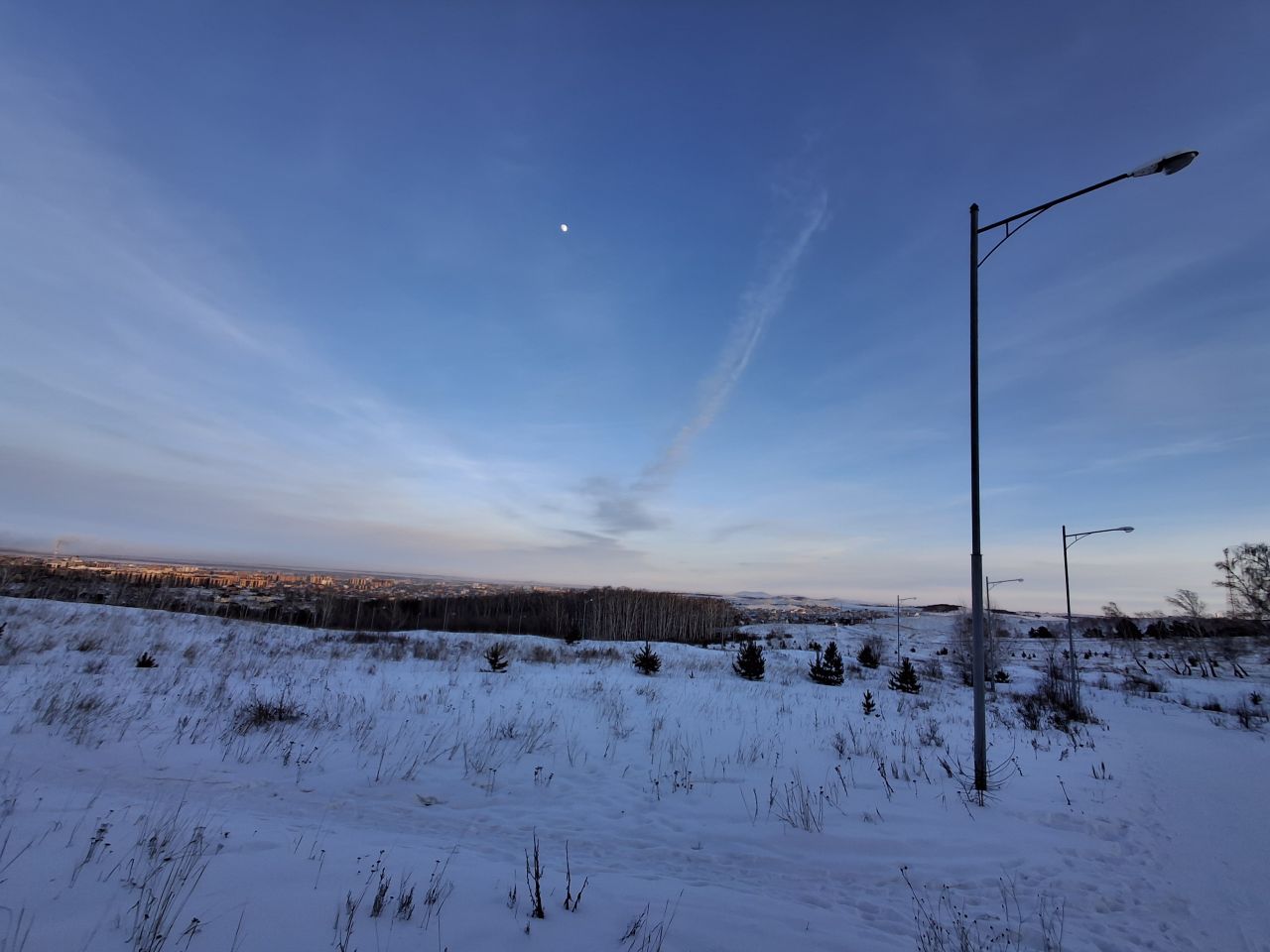 Неплохая городская трасса. Круг 3.5 км (с небольшим самоповтором, метров 200 проезжаются дважды за круг). Набор высоты весьма приличный, но уклон плавный, рельеф - длинные пологие тягуны, плюс плоские участки. Снег сметает сильным ветром, ледянисто, на спусках несёт, классика есть, но подзаносит по тем же причинам.