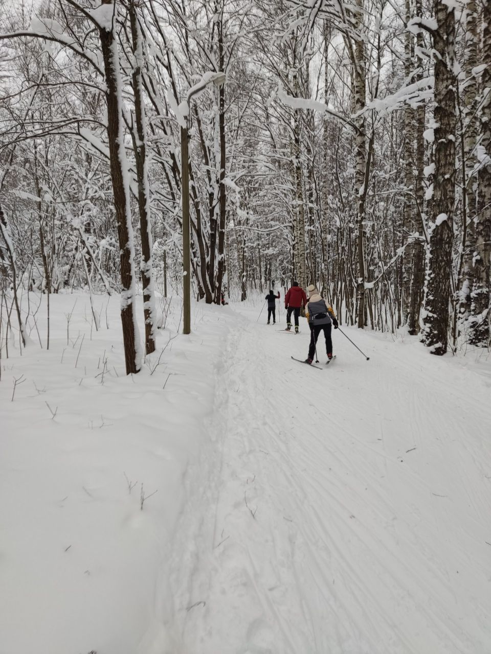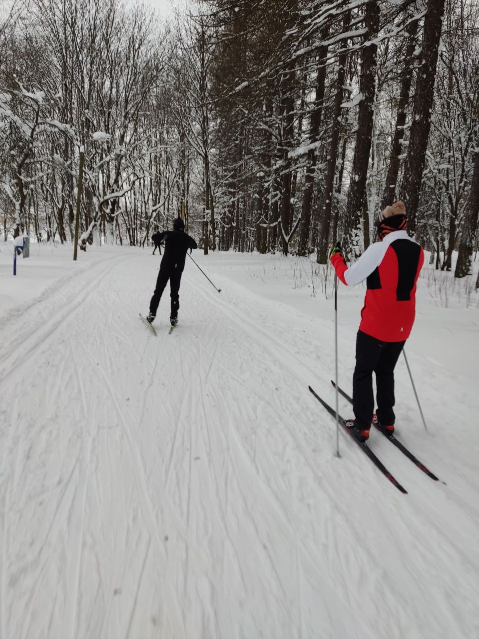 Днём было хорошо, вдоль трассы видны следы бурана, круг был полностью рабочий, но хорошие лыжи лучше пока отложить, т.к. есть места, где можно легко поставить жирные царапины.