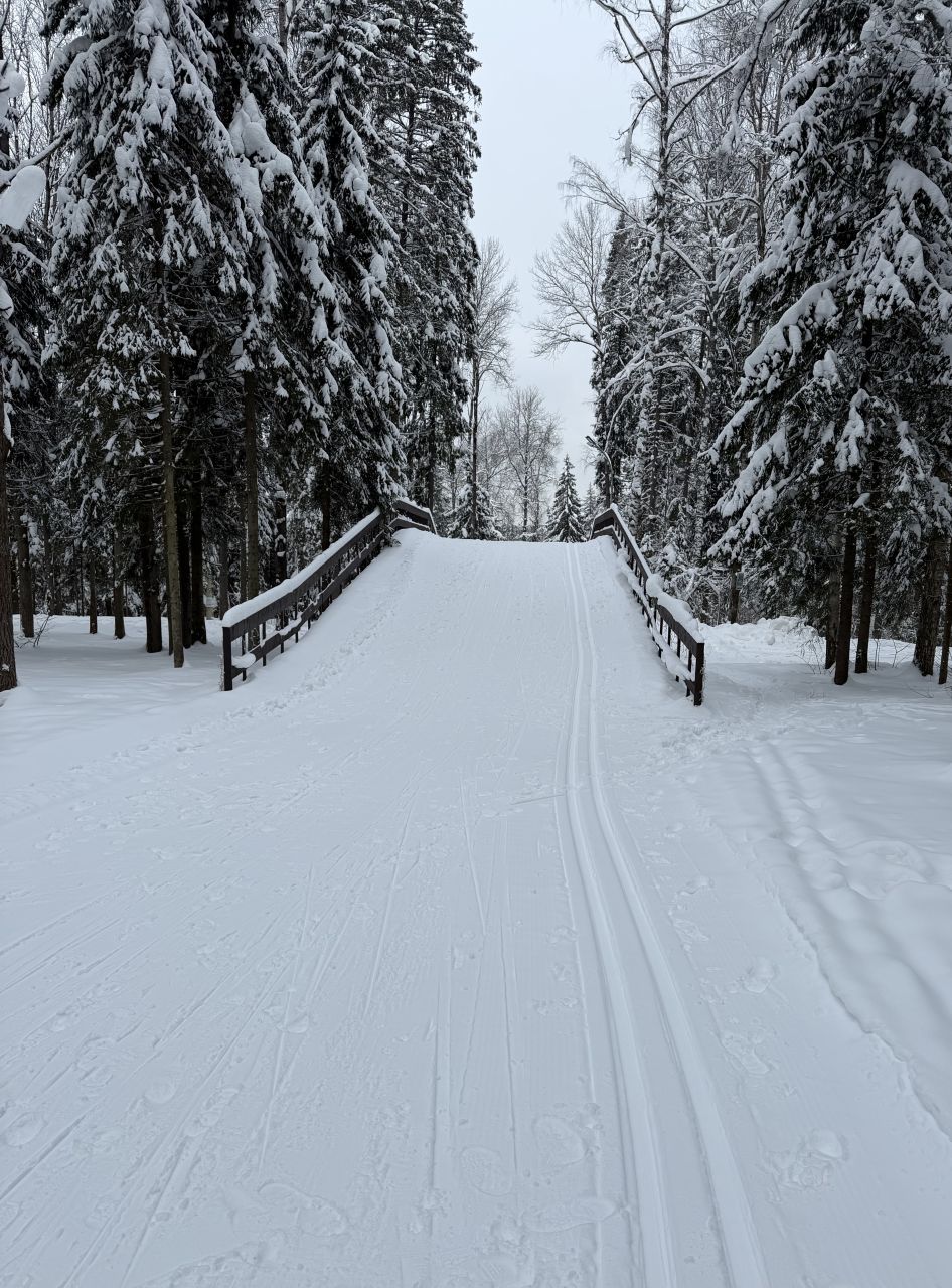 Оцениваю 5-/4+ из за того что в паре мест видно траву и пара мест чуть мягко. Но это 2-3% трассы. На сегодня готово около 10 км, все петли что есть до реки. У меня круг получался 13.5км, я пару мест дважды проезжал чтобы проехать все подготовленные петли трассы.