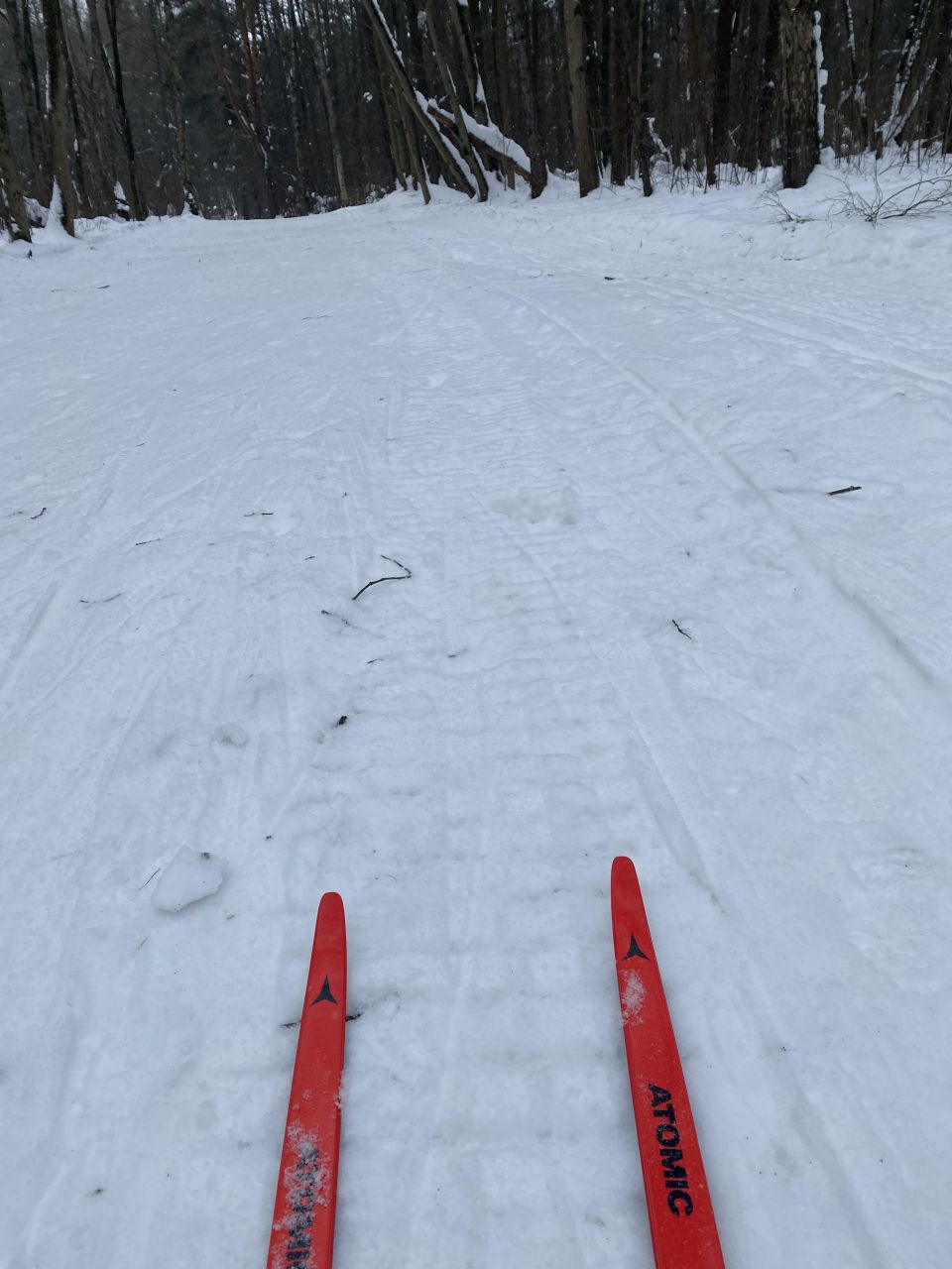 Надеялась на то, что трассу после потепления подготовят, но, видимо, этого не случилось. Сплошные колеи, накатанные во время потепления, то и дело выводили из равновесия, лыжи не кантуются, едешь тупо по льду. На моих глазах с горки достаточно сильно разложился один лыжник, надеюсь, ничего не повредил критично. Сама съехала на 5й точке, потому что контроля на спуске нет вообще никакого, разгон неимоверный, риски свернуть шею ненулевые. Как-то странно, занимались спорстмены там - как они это все терпят, да и как там можно нормально технику тренировать сегодня было, не понимаю