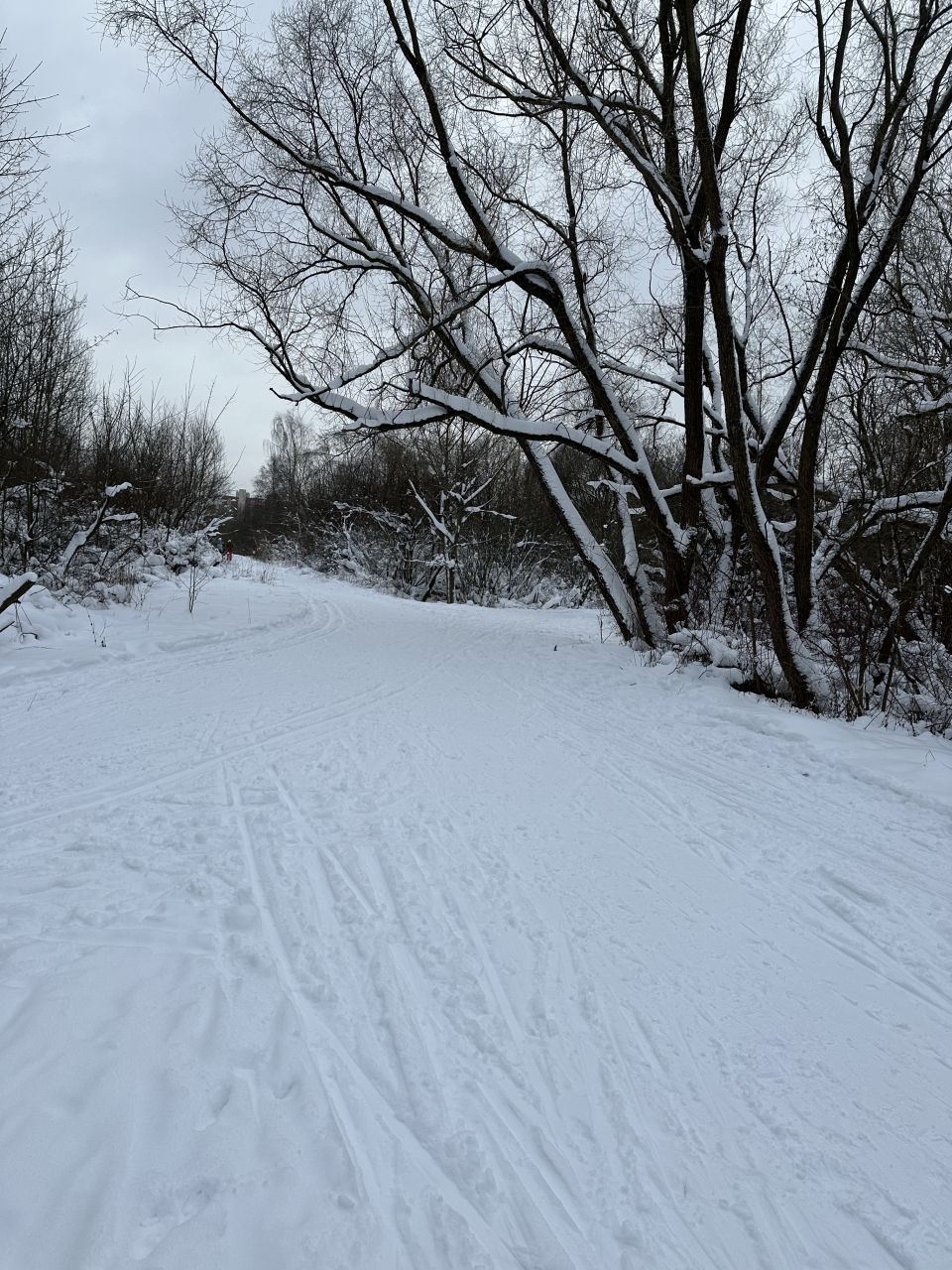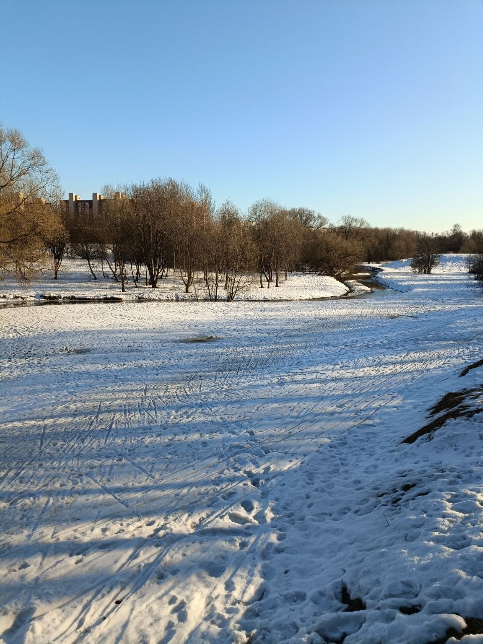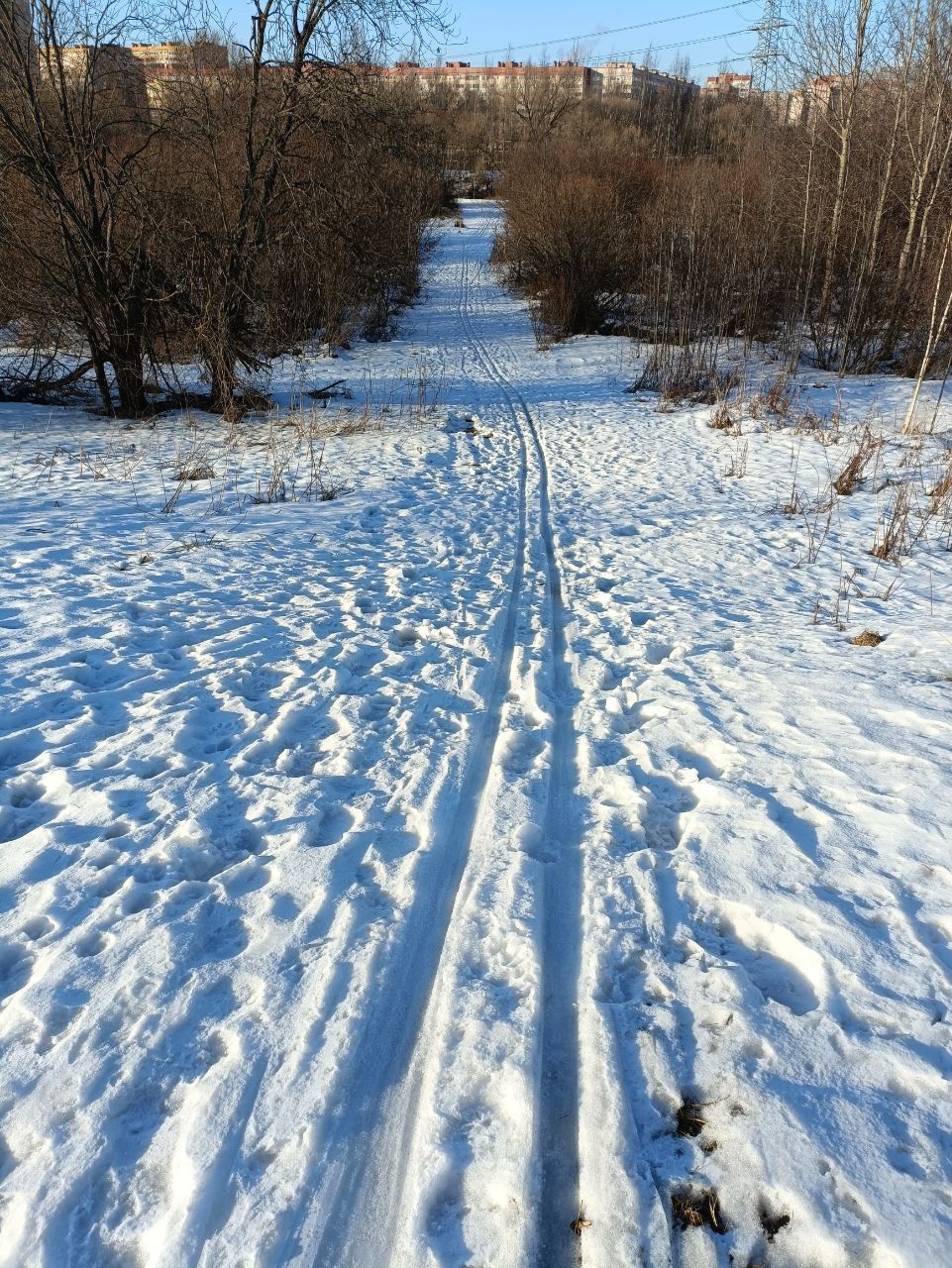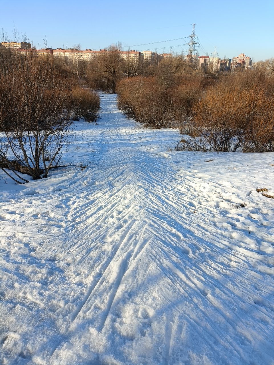 Полежаевский ещё очень рано. Подложки из льда нет, поэтому камни и листья тормозят лыжи. Только пешком на асфальтовых. Была только на стадионе...