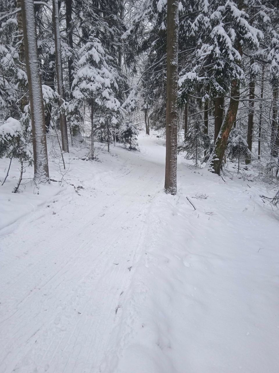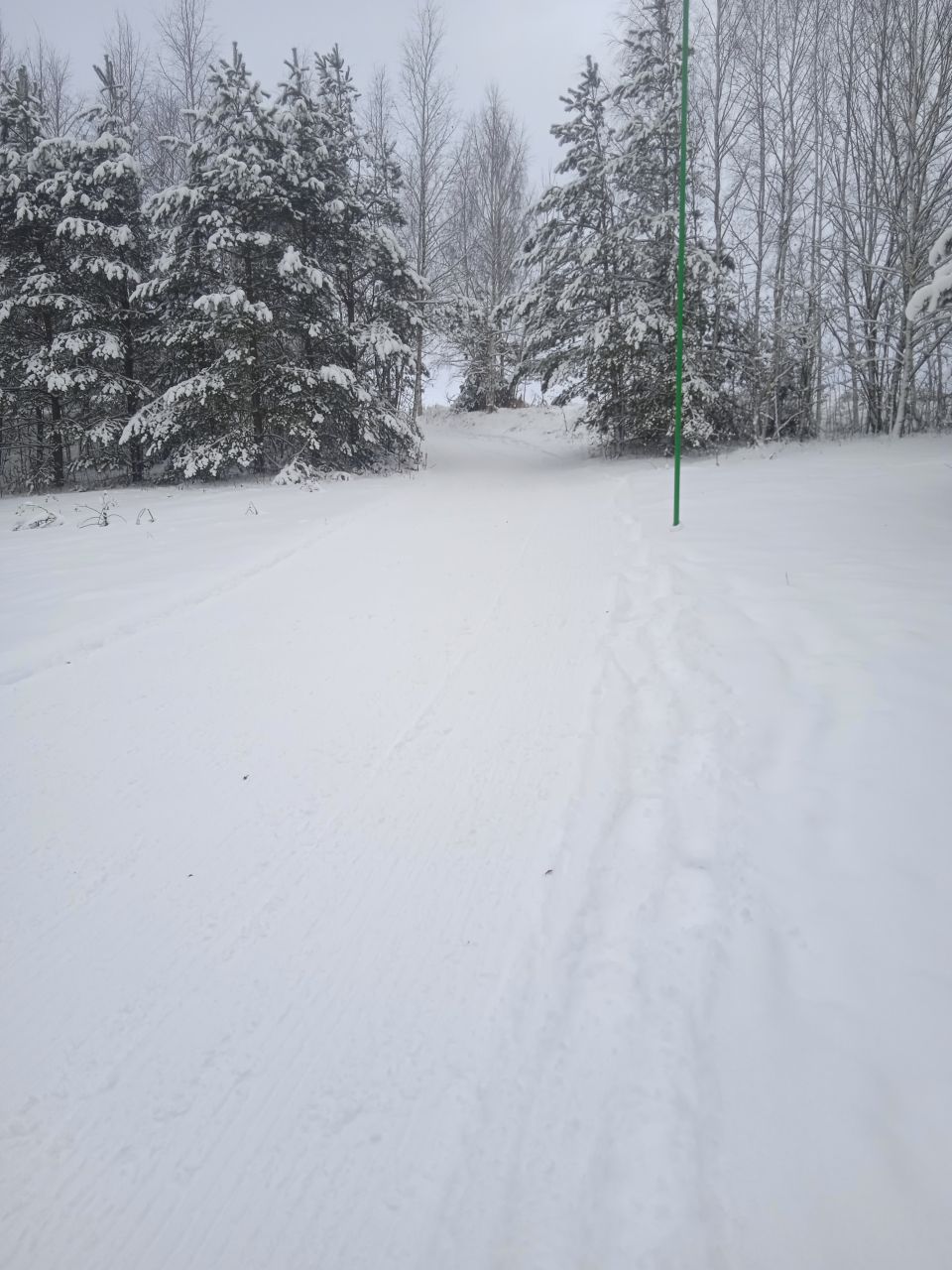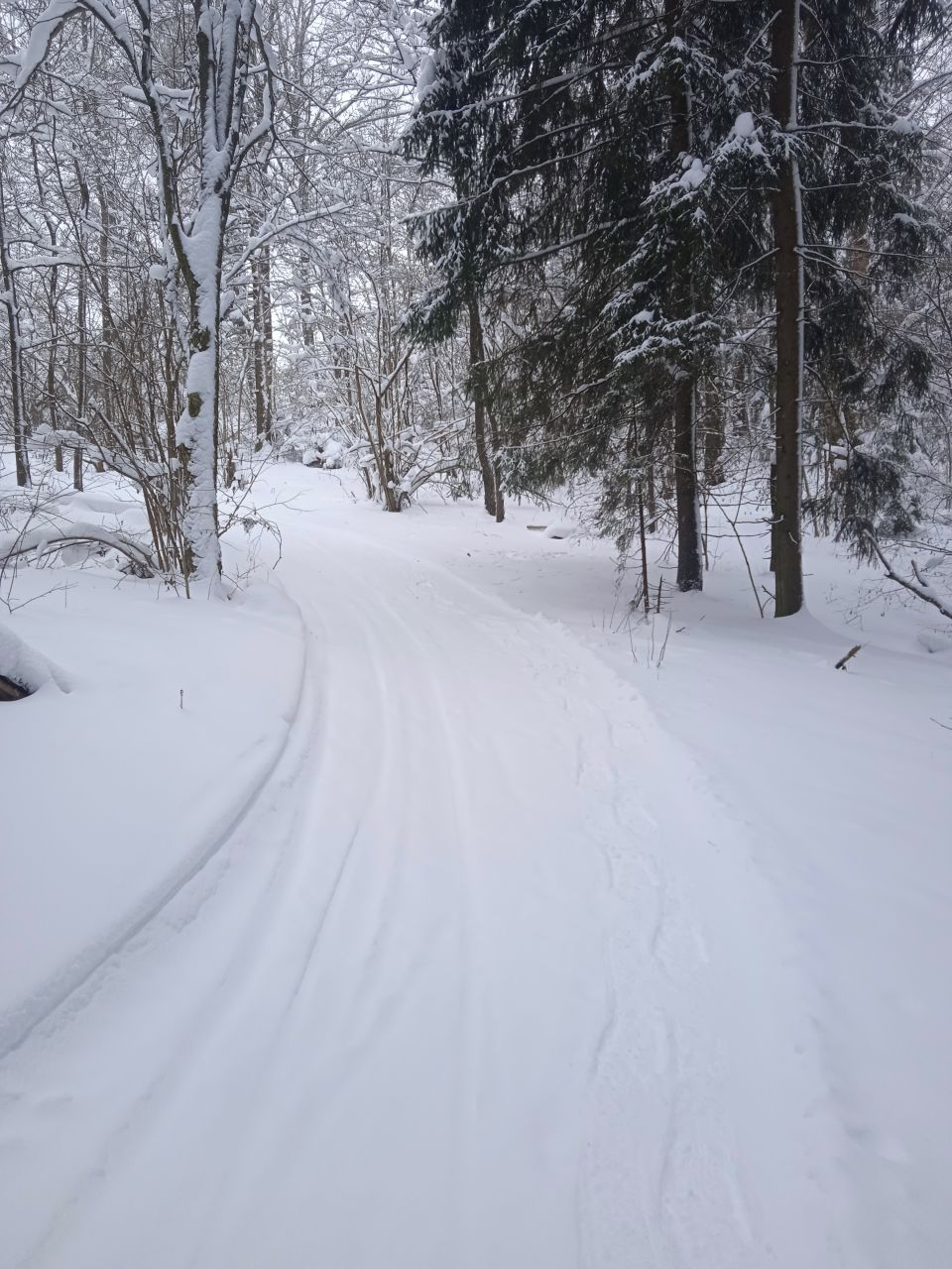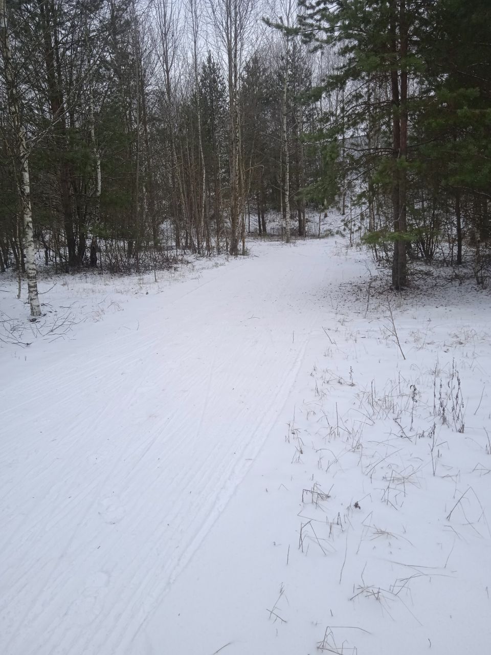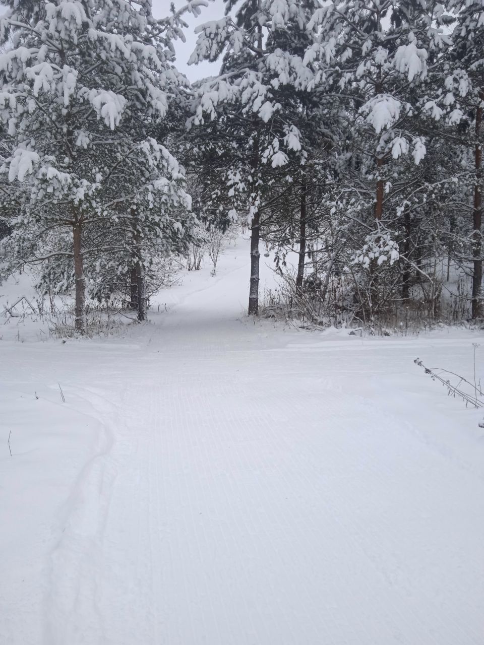 Проехал с утра первым следом. Видно было, что с вечера готовилась, за ночь присыпало небольшим слоем свежего снега. В прошлом году на склон ручья не совался - было стремно из-за резких поворотов на спуске. В этот раз, похоже, нарезали с более плавными поворотами, проехался нормально, но если будет пожестче наверное не решусь.