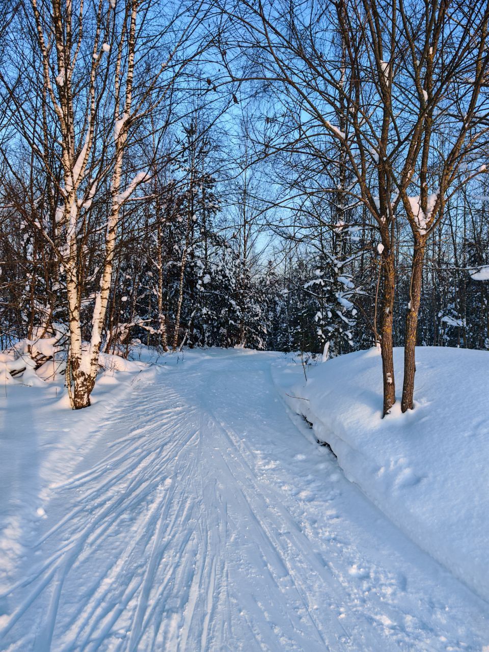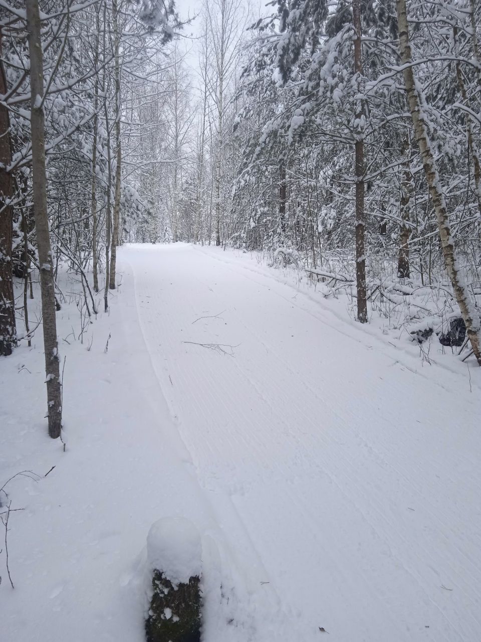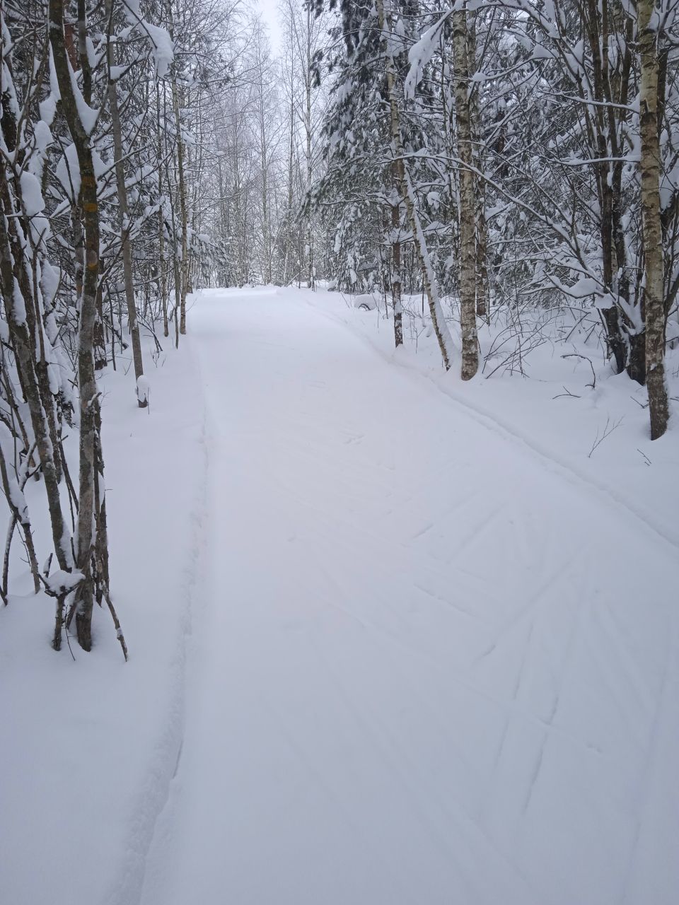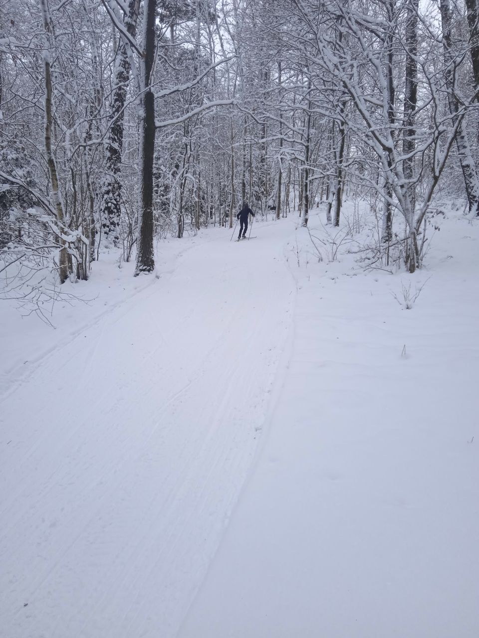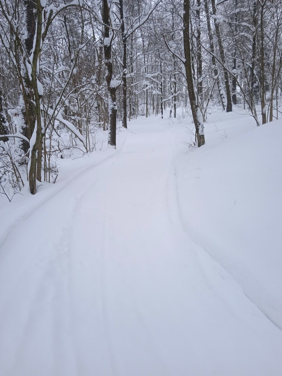 Проехал с утра первым следом. Видно было, что с вечера готовилась, за ночь присыпало небольшим слоем свежего снега. В прошлом году на склон ручья не совался - было стремно из-за резких поворотов на спуске. В этот раз, похоже, нарезали с более плавными поворотами, проехался нормально, но если будет пожестче наверное не решусь.