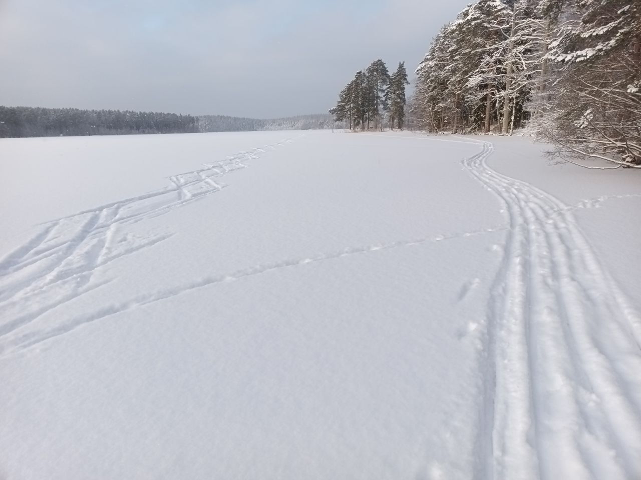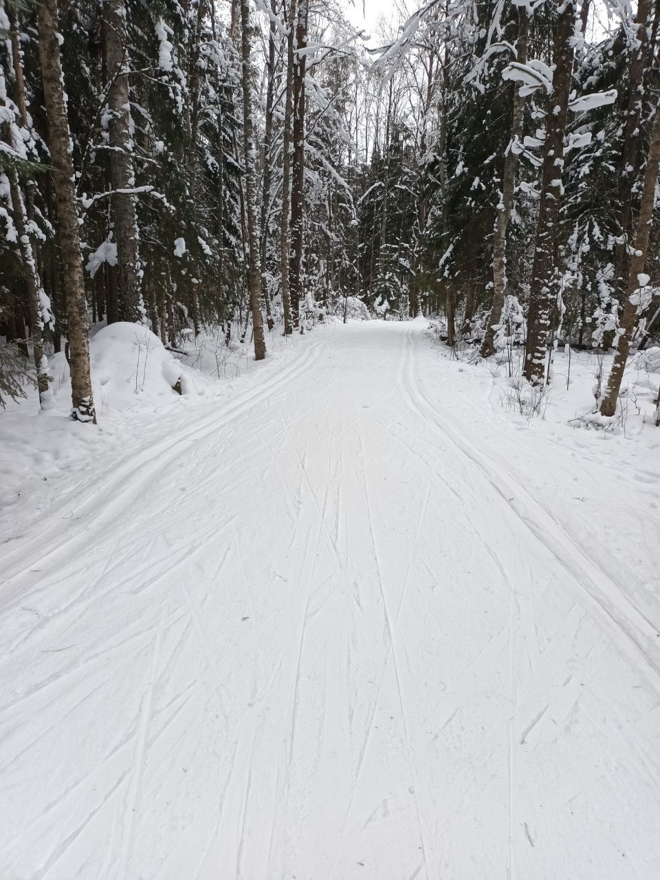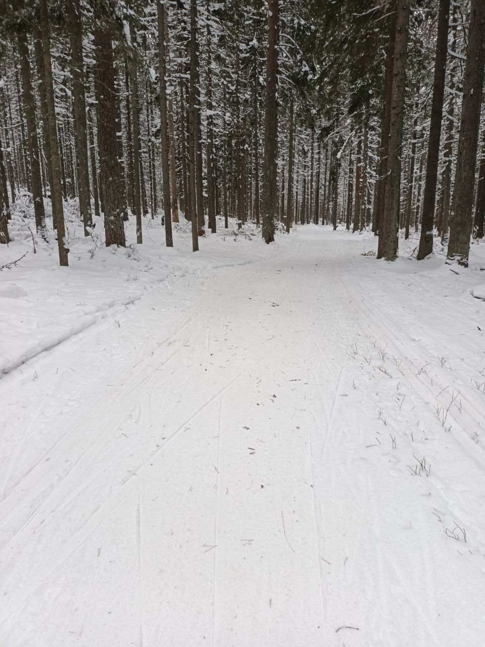 #Прибой , все участки прокатаны, совсем немного свежего снежка подсыпало, но катилось гораздо лучше, чем в воскресенье. Проблемные участки остались, но чуть получше. Щучье примерно 70 процентов хорошо, но есть и разбитые моменты, лучше на озеро заходит с комаровского пляжа, удовольствие получите. Кто полезет на спуски - осторожней с корнями.