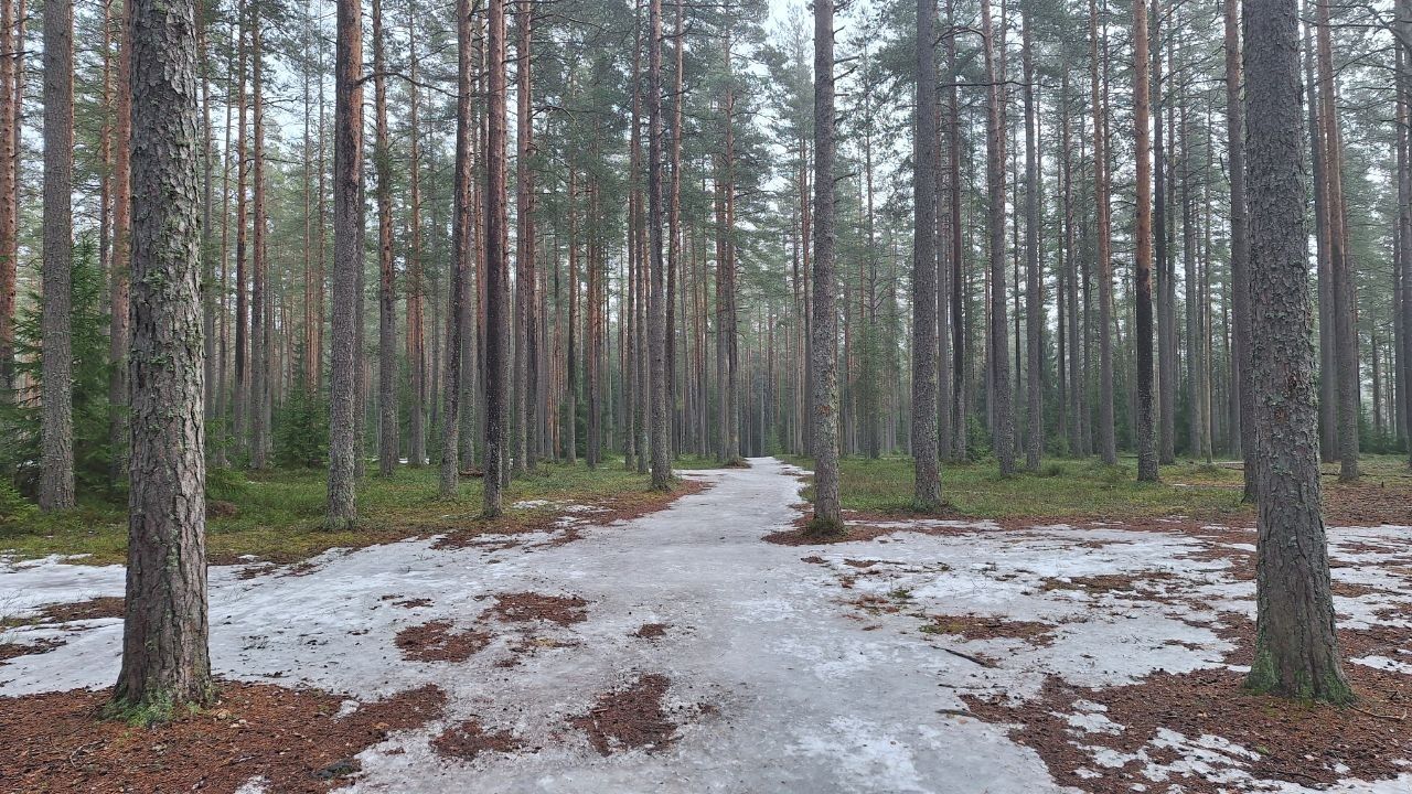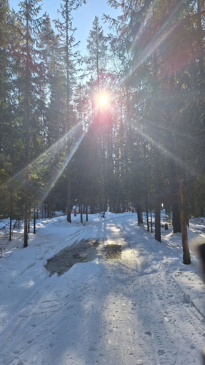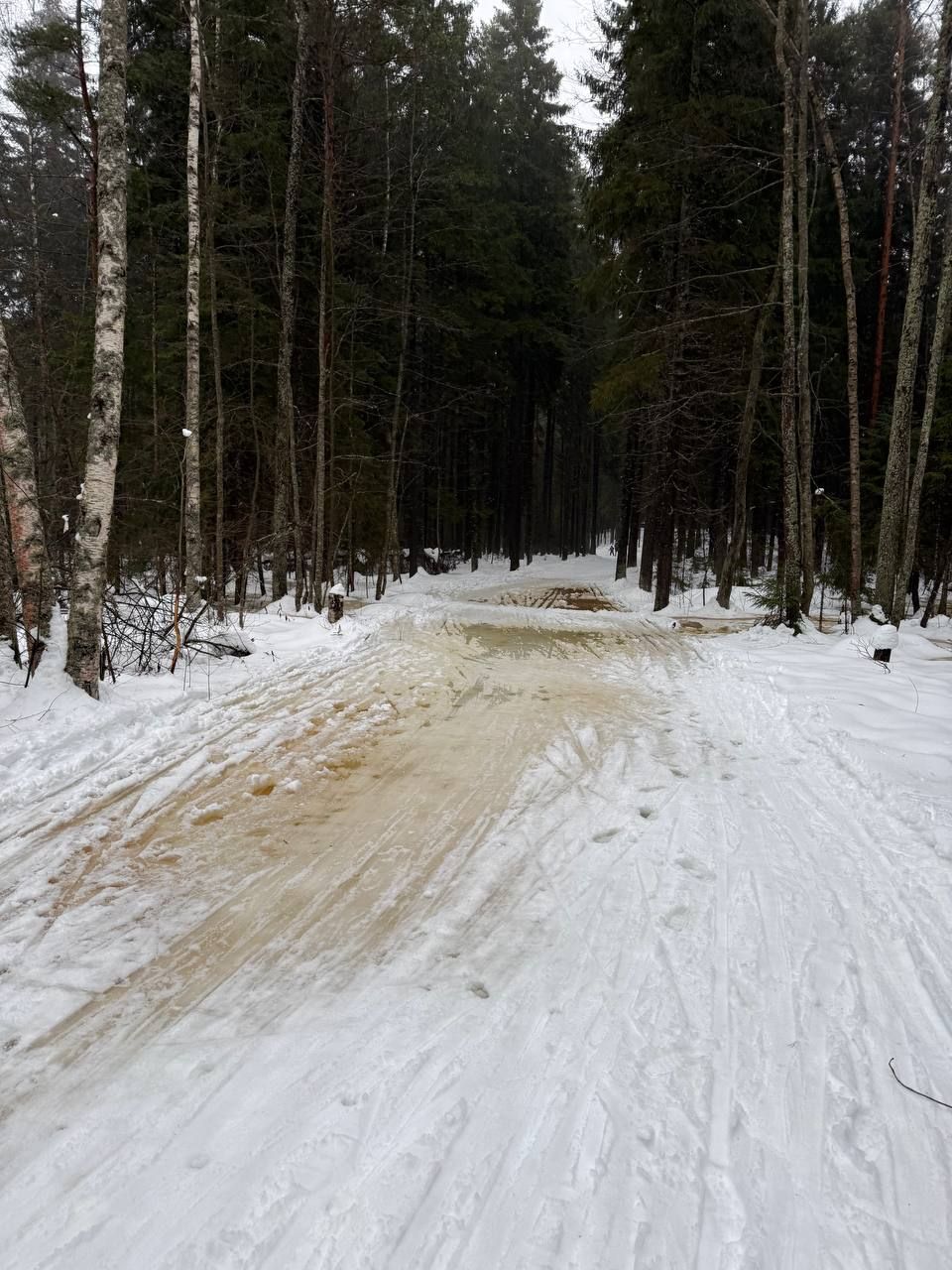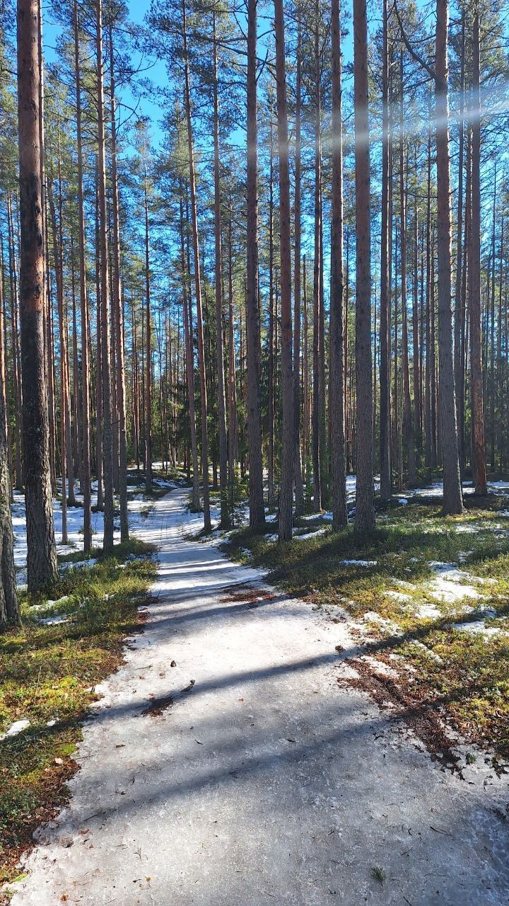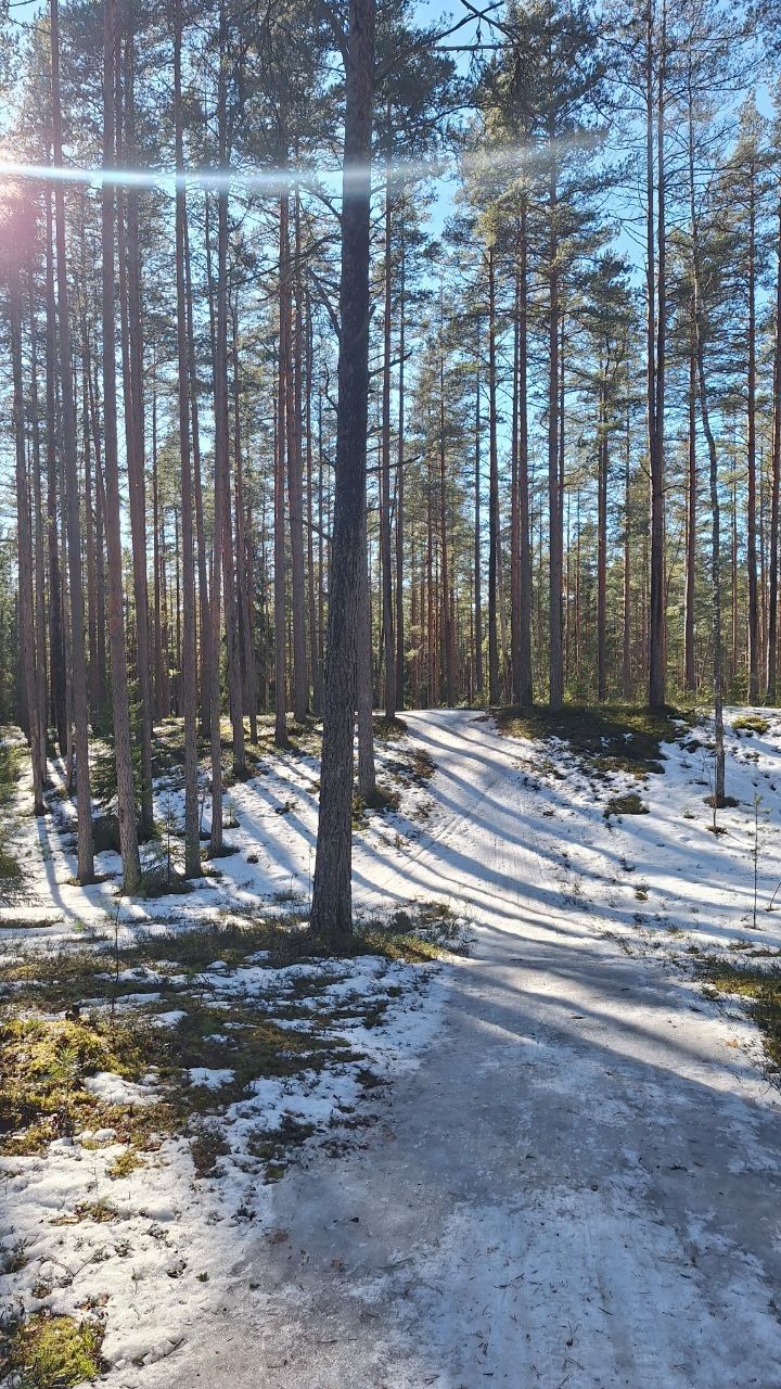 #прибой ещё жив)☃️ но уже появляются разрывы. Стартовый км в очень хорошем состоянии, есть пару мест с корешками, но пока не критично. 10-ка лёгкая - есть и мусор (самый худший участок - начало петли 2,8 км от просеки, его лучше объехать по встречке), и лед, и лужи, но есть очень хорошие участки, перед озером кусок совсем растаял (пока можно объехать мимо мусорных бачков), первый спуск после щебёнки вначале совсем растаял, следующие пока проезжаемы, но корни уже торчат почти на всех. На некоторых участках остались совсем узкие полоски снега😔 Но покататься пока можно😁 лес красивый🌲