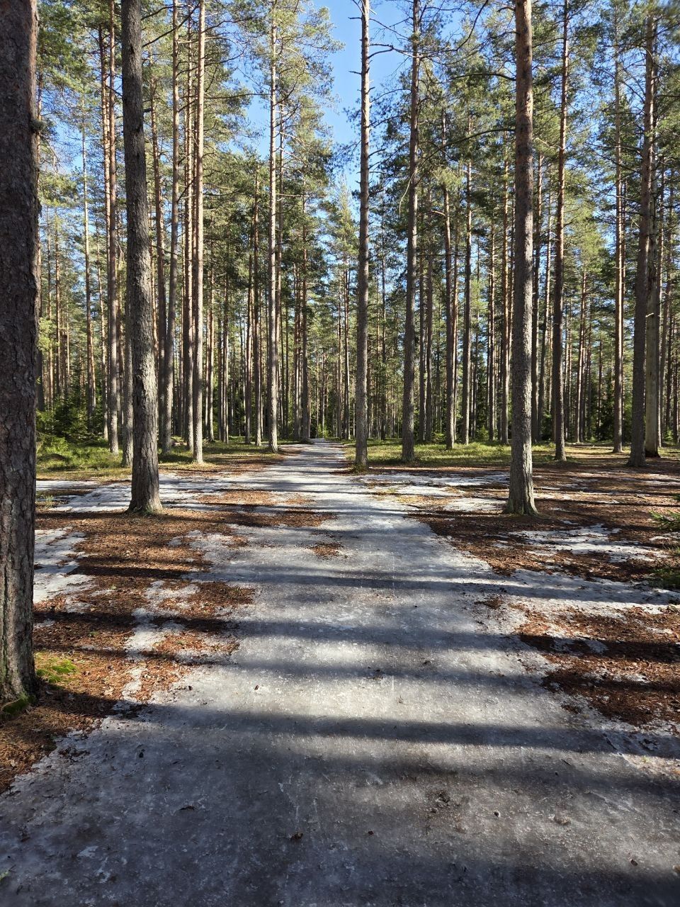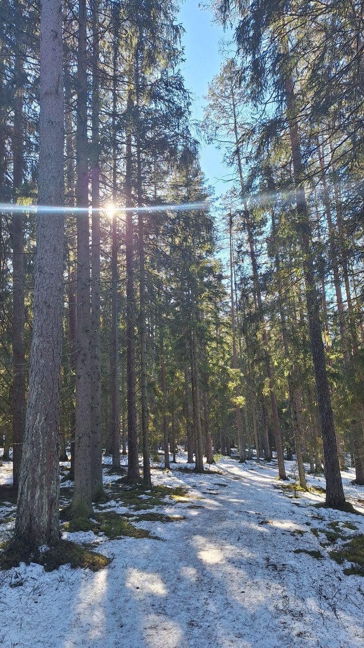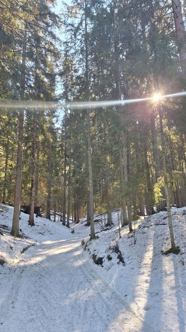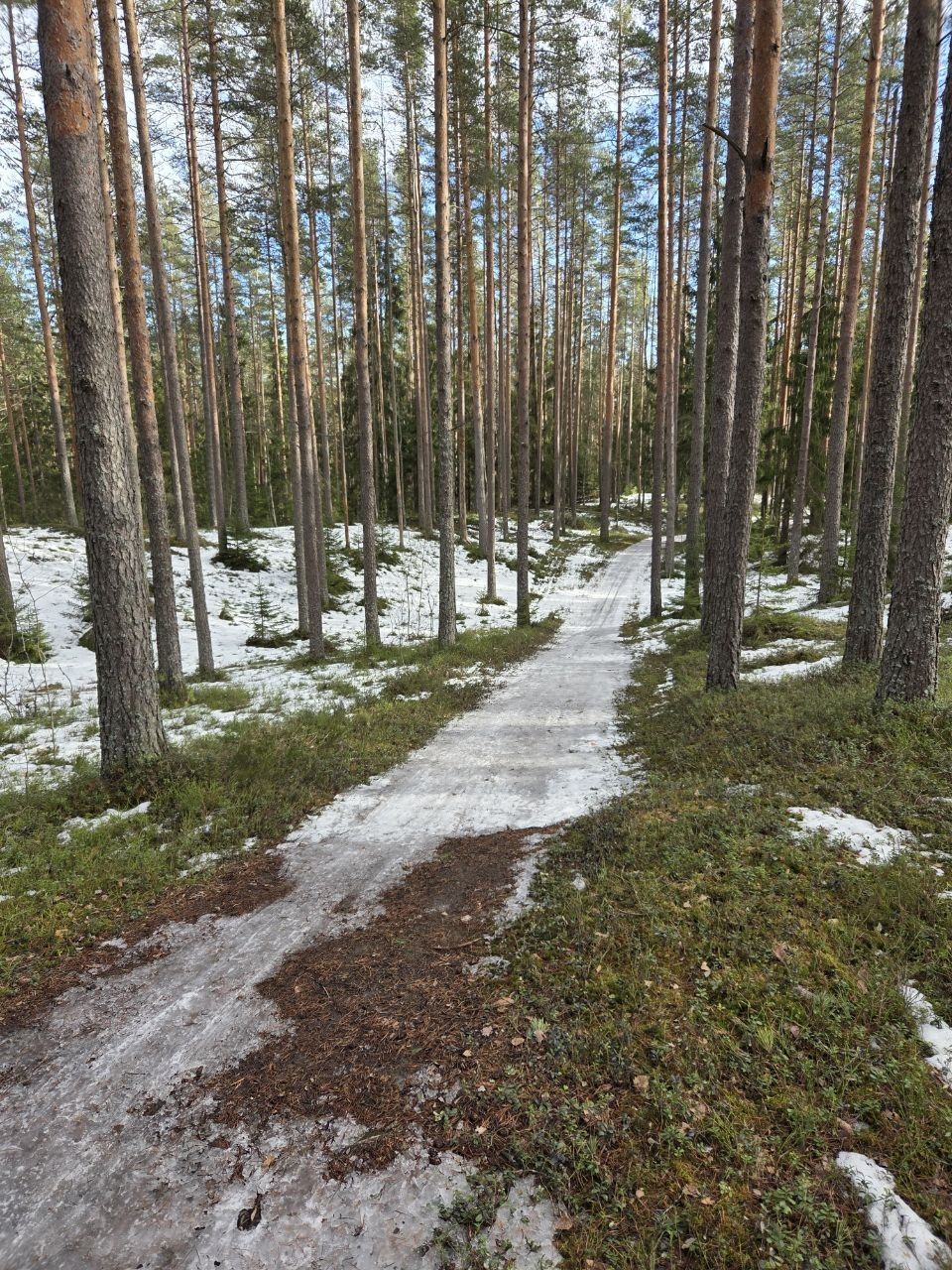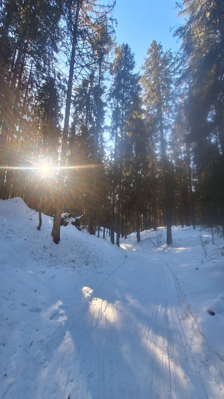 #прибой ещё жив)☃️ но уже появляются разрывы. Стартовый км в очень хорошем состоянии, есть пару мест с корешками, но пока не критично. 10-ка лёгкая - есть и мусор (самый худший участок - начало петли 2,8 км от просеки, его лучше объехать по встречке), и лед, и лужи, но есть очень хорошие участки, перед озером кусок совсем растаял (пока можно объехать мимо мусорных бачков), первый спуск после щебёнки вначале совсем растаял, следующие пока проезжаемы, но корни уже торчат почти на всех. На некоторых участках остались совсем узкие полоски снега😔 Но покататься пока можно😁 лес красивый🌲