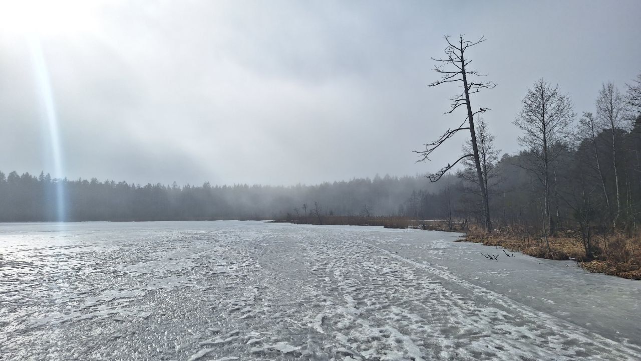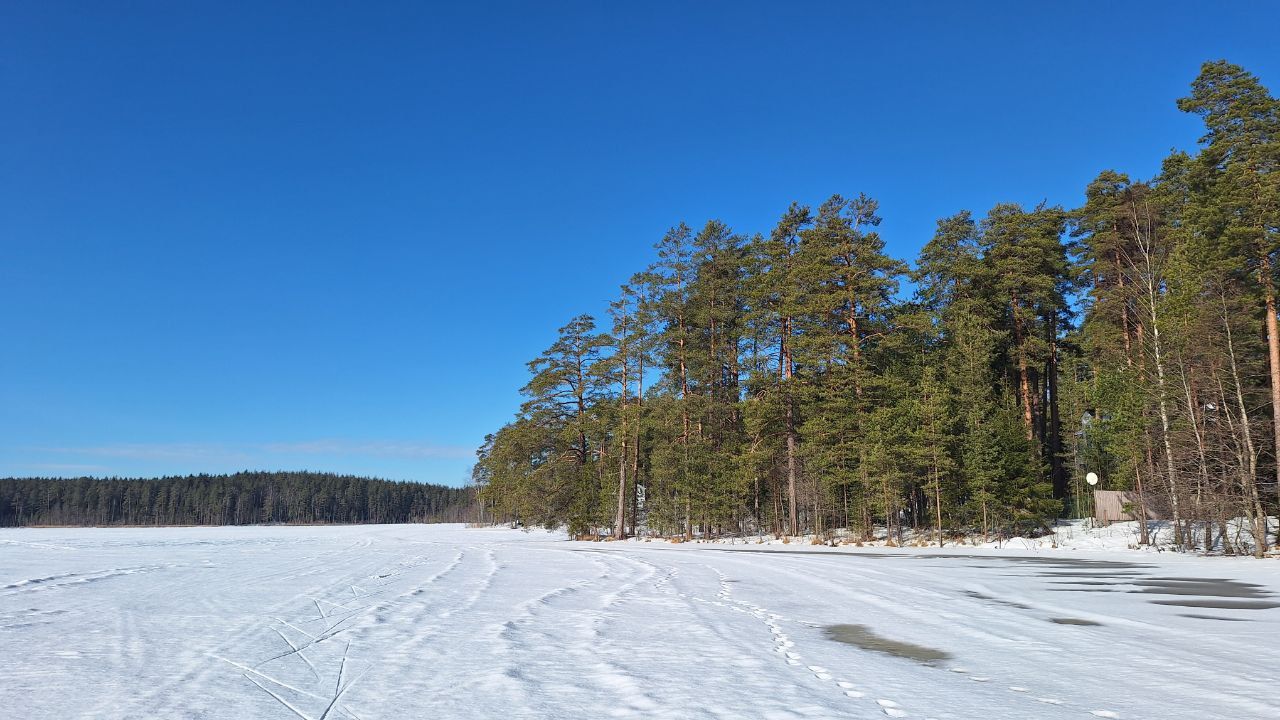 Само Щучье, ближе к трассе и беседки - неплохой лед. Жаль коньков не было, но я сунулся круг пройти, и на солнечной стороне конечно каша и вода, где домики, уже морально был готов к провалу, каша с водой, абсолютно туда лезть не надо))