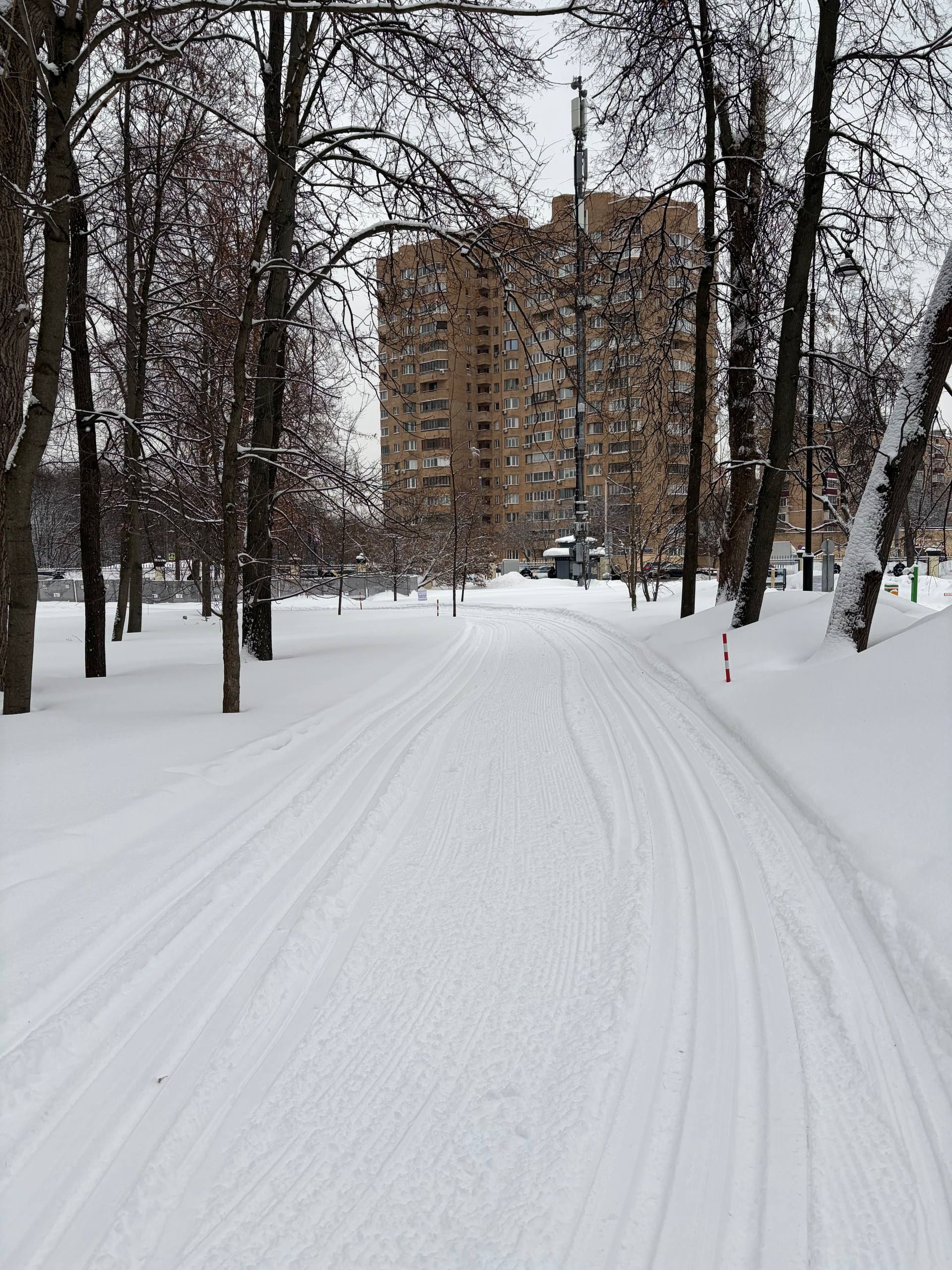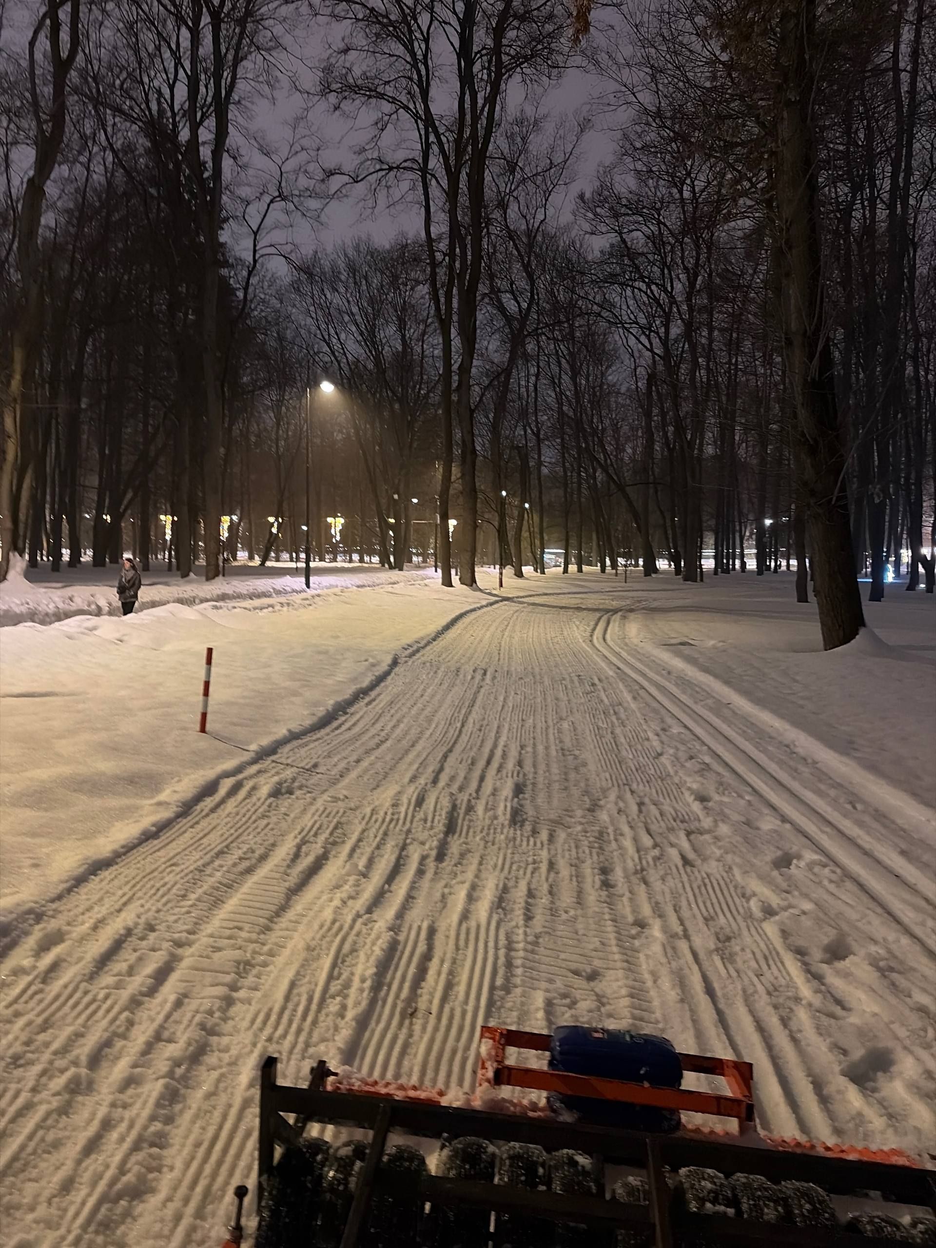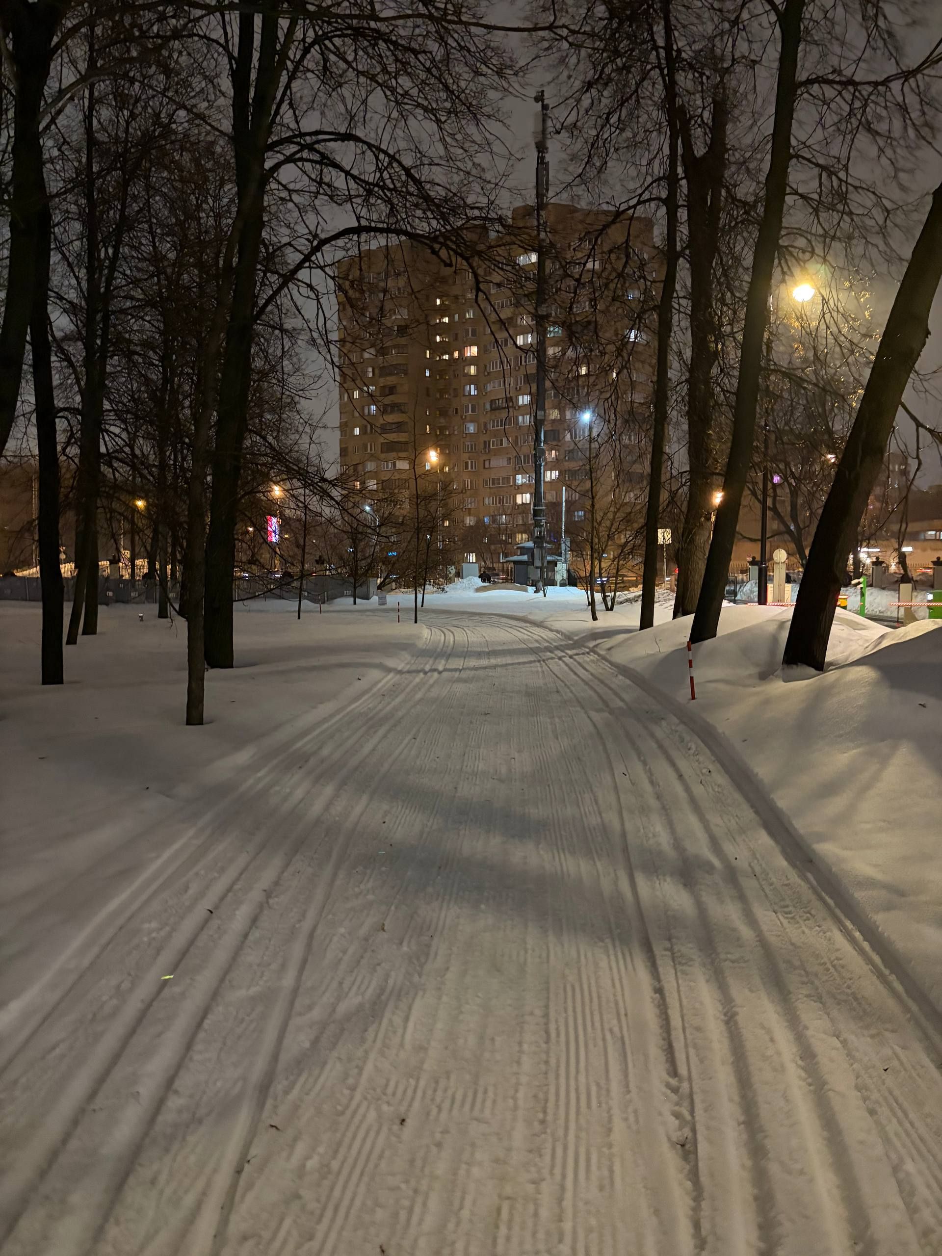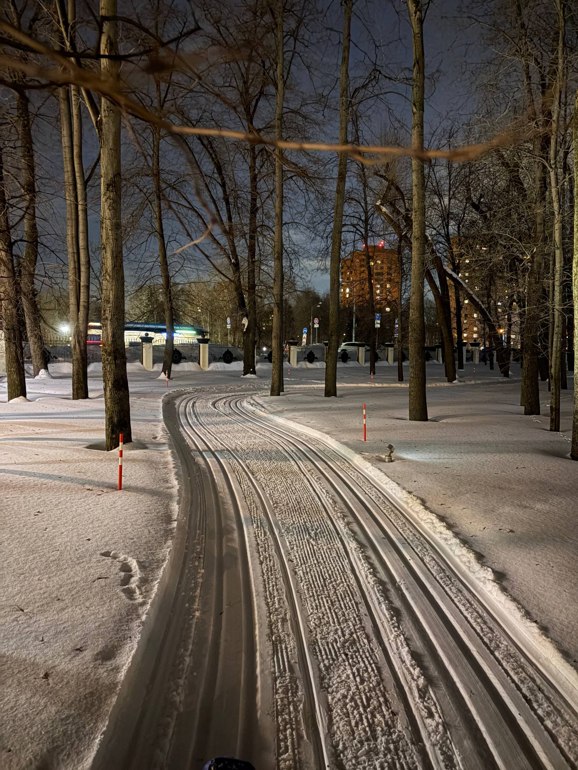 Вечером 1 марта приготовили трассу 500м в парке северного Речного вокзала. Нарезаны 2 лыжни. Где пошире можно коньком.