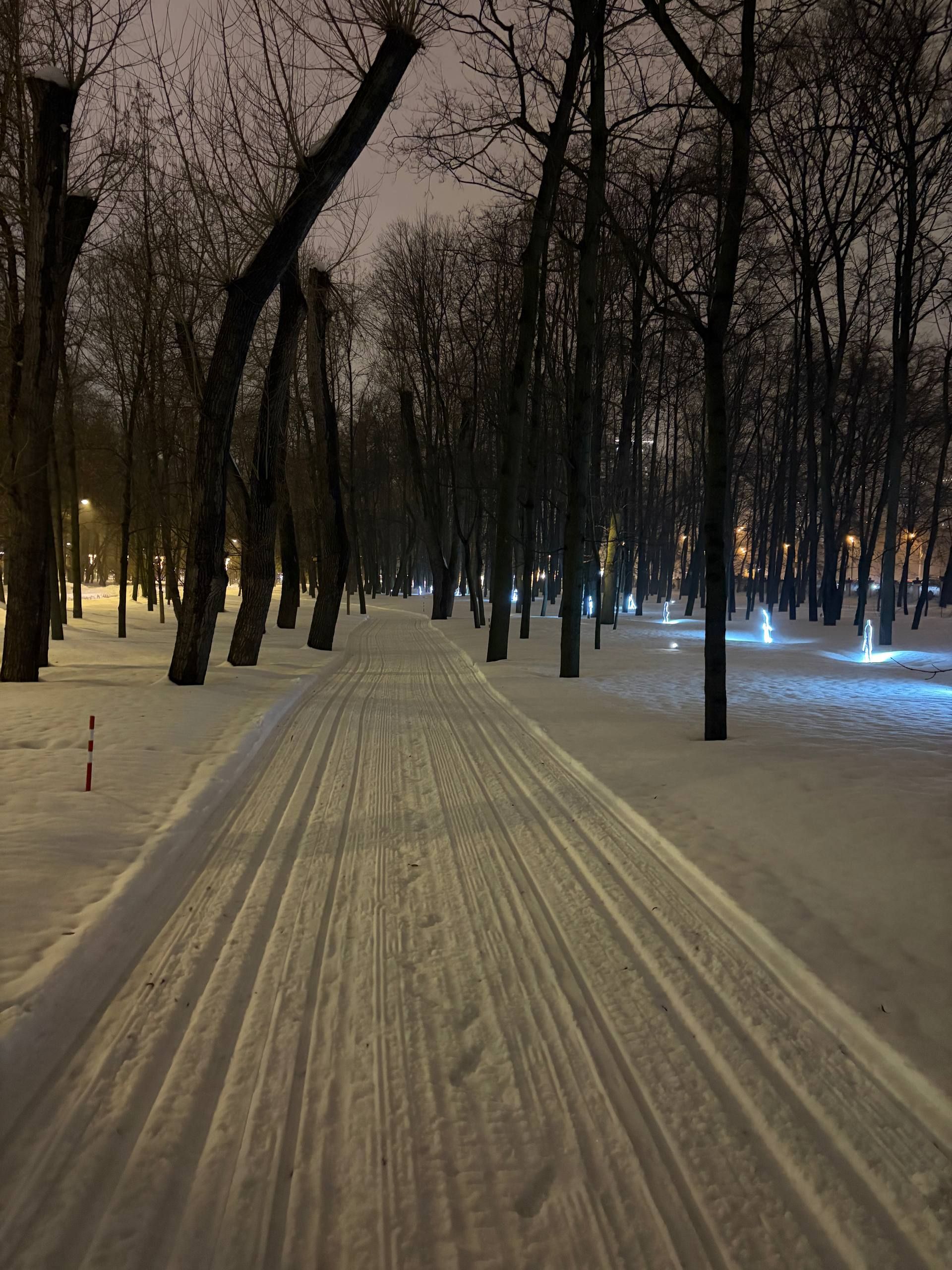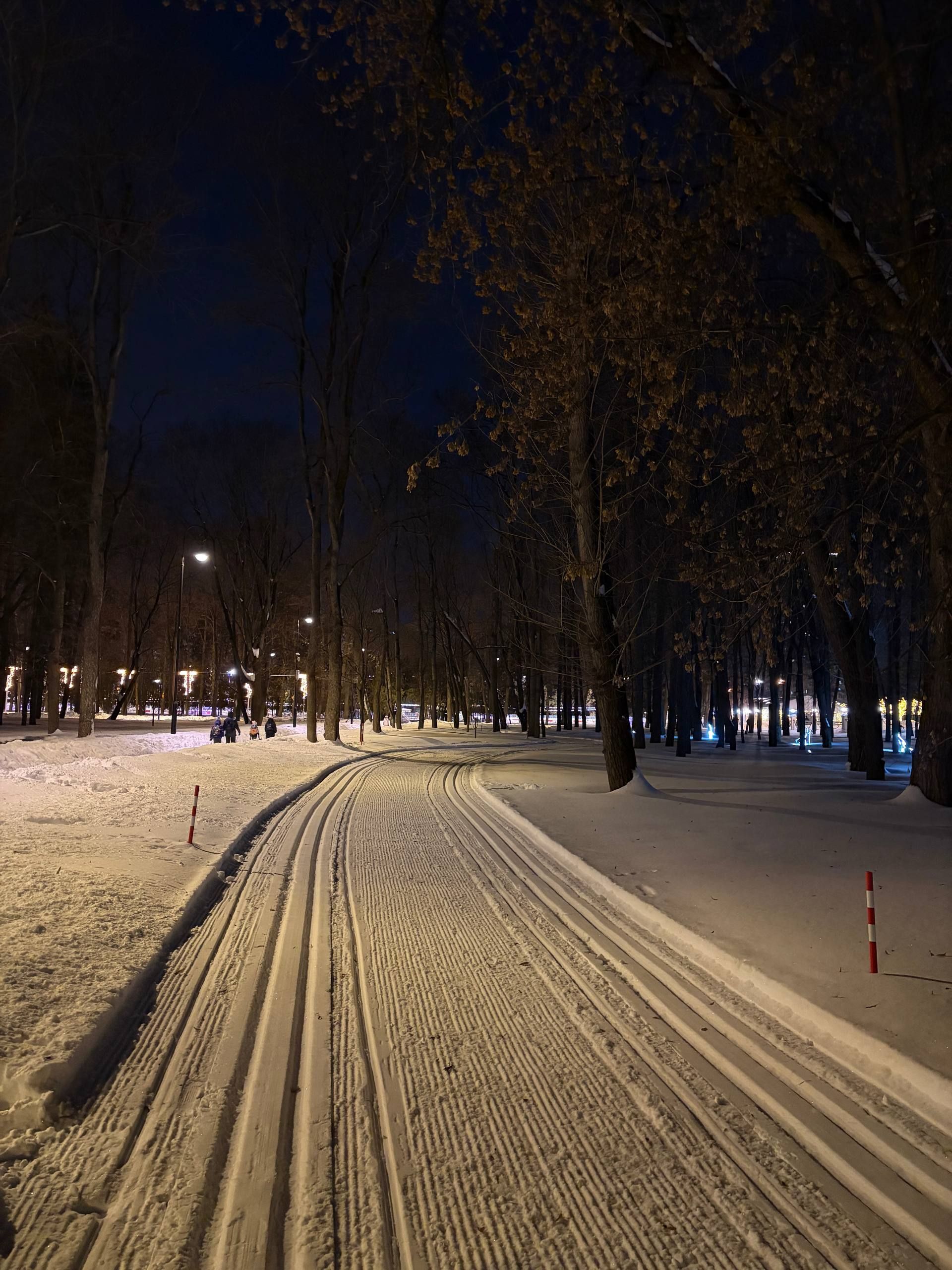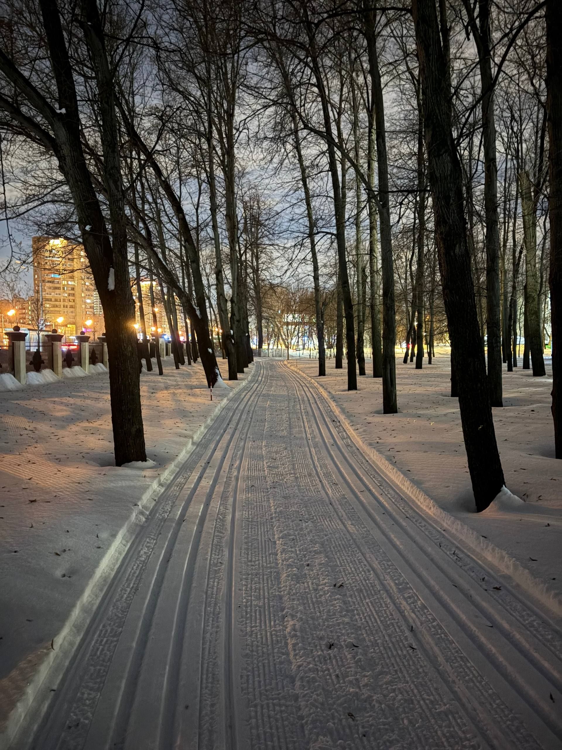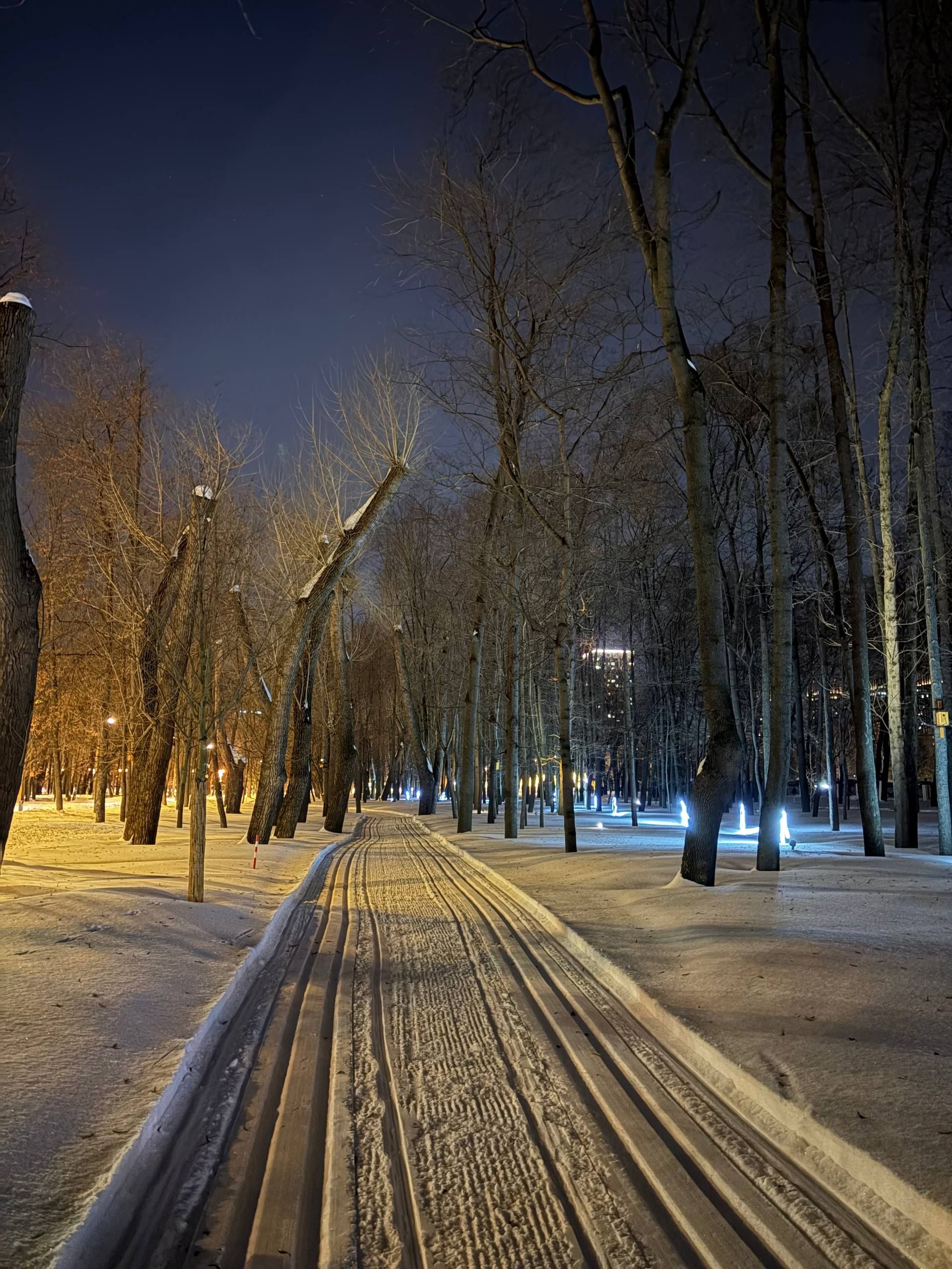 Вечером 1 марта приготовили трассу 500м в парке северного Речного вокзала. Нарезаны 2 лыжни. Где пошире можно коньком.