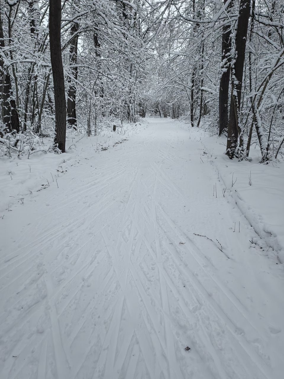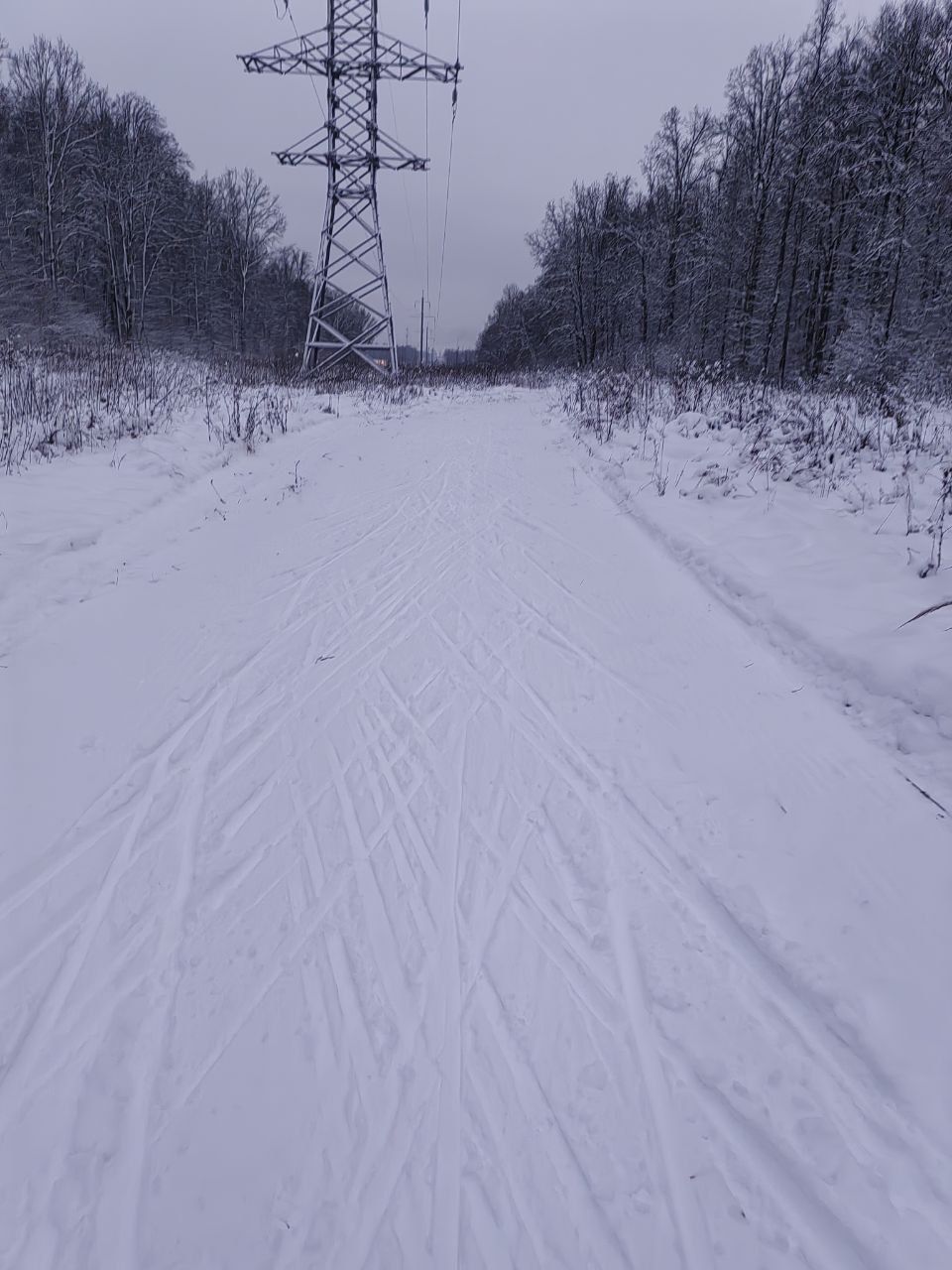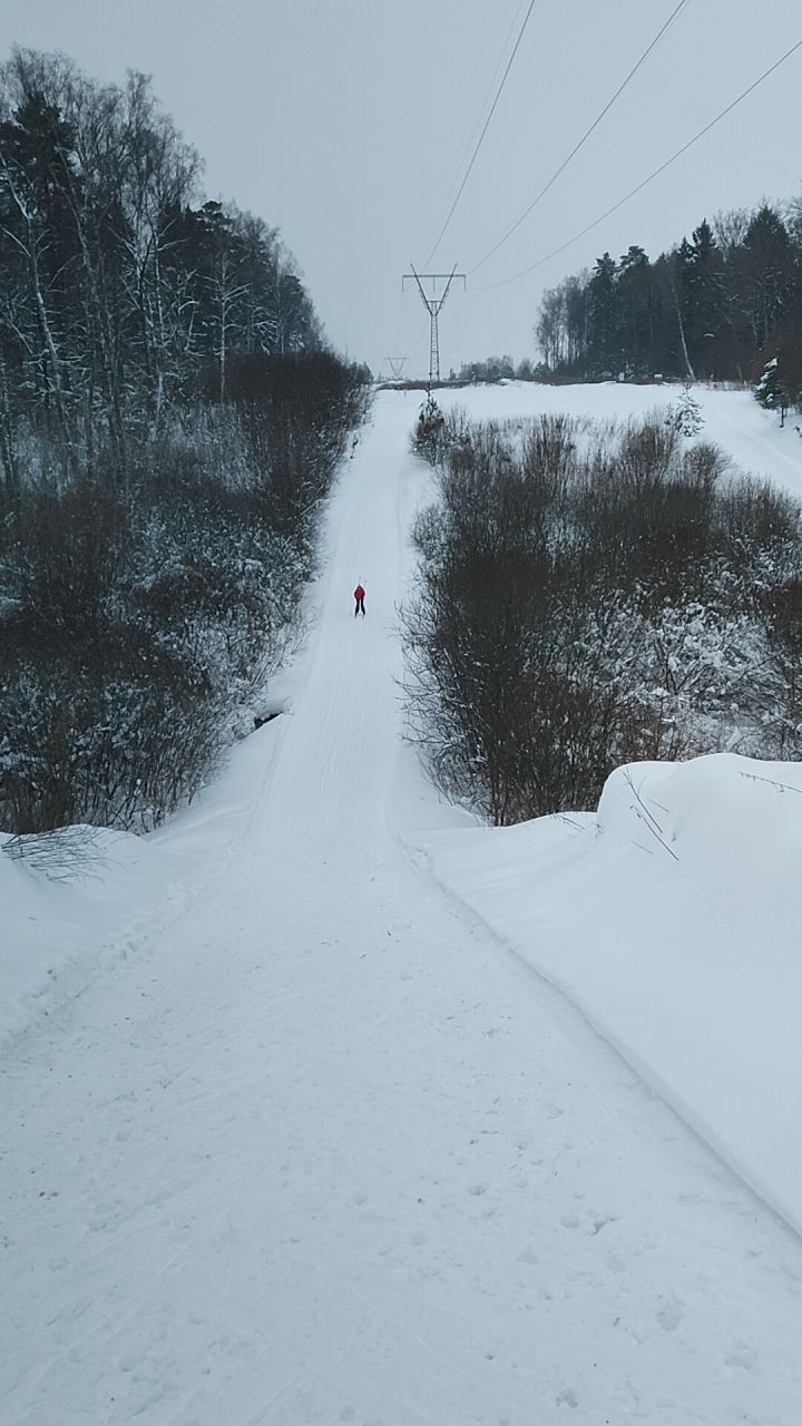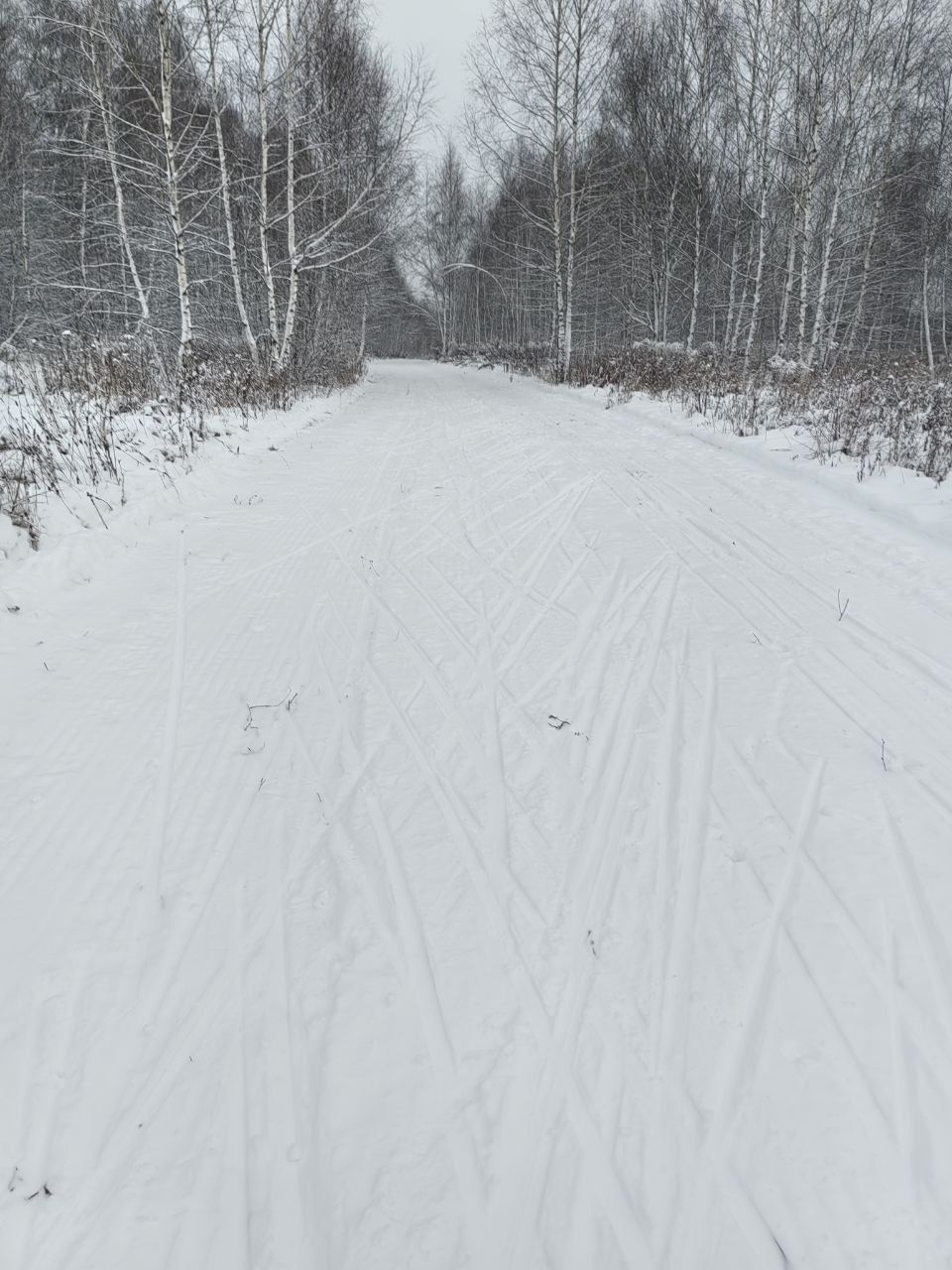 Снега пока мало. В лесной части ветки, шишки, грязно, ратрак дёрнул землю. На асфальтовых лыжах аккуратно можно