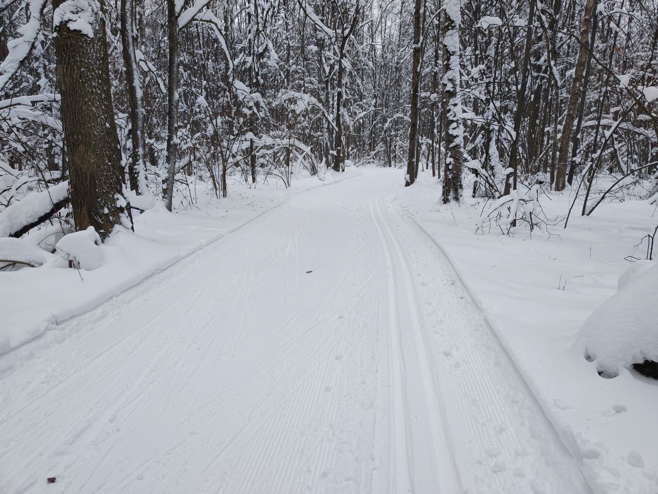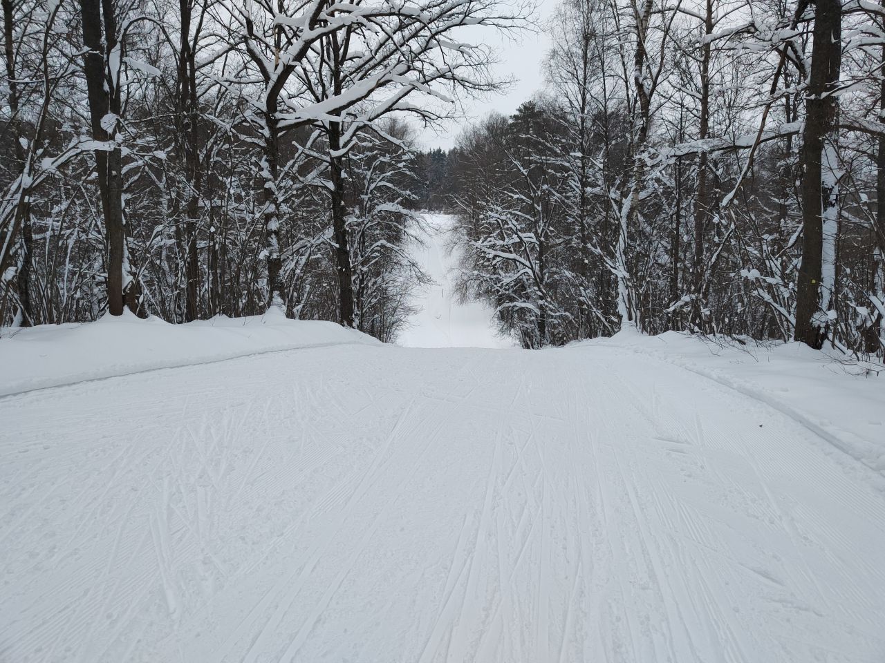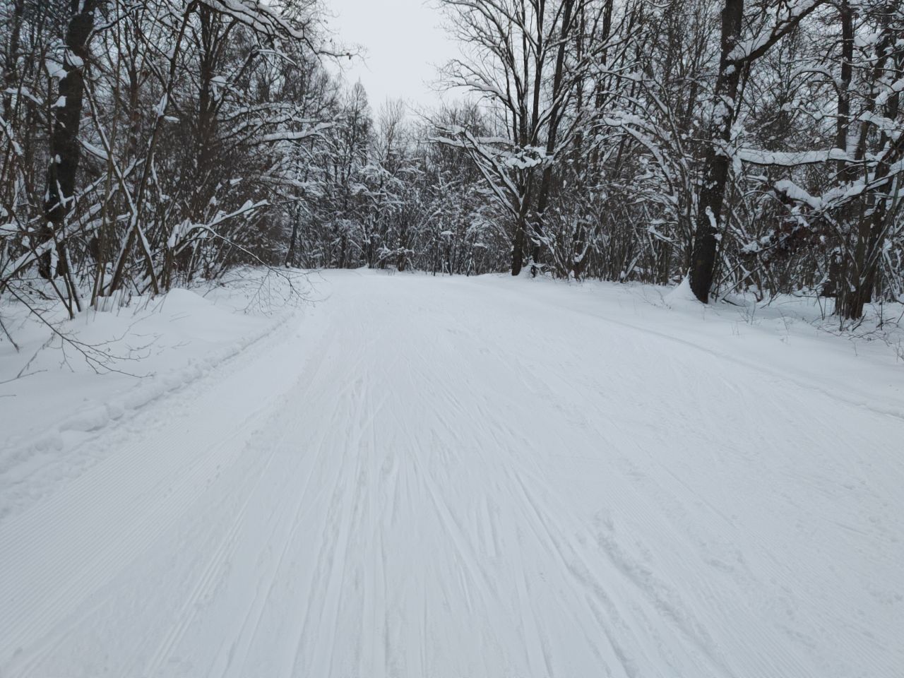 После обильных снегопадов всё прокатано ратраком, классика нарезана, поверхность трассы плотная.