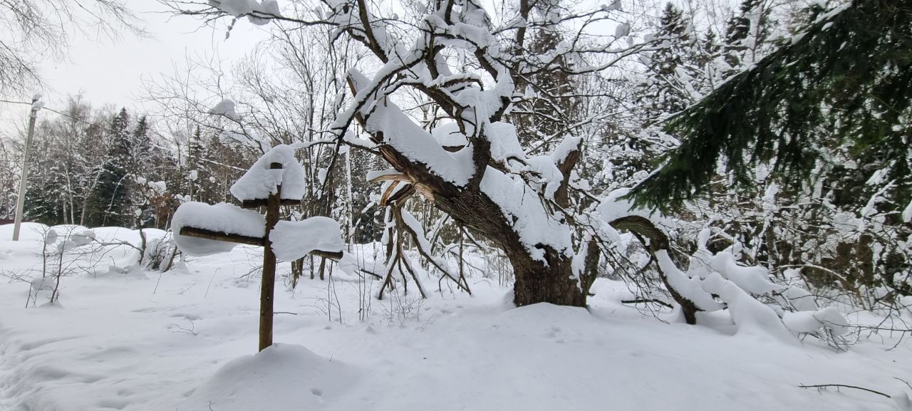 Но вернёмся к лыжне. Мимо Митино-Дальнего она превращается в тропу, а далее в плотную снегоходку через подлесок, где пешеходных следов становится всё меньше и наконец они уступают место лыжне. В Николо-Черкизово лыжня уходит со снегоходки, петляет между деревьев и в конце концов выходит на квадродорогу с глубокими колеями, идущую вдоль заборов. По-хорошему, эту часть маршрута надо бы переделать и организовать новую лыжню параллельно по лесу, подальше от заборов и от квадродороги.