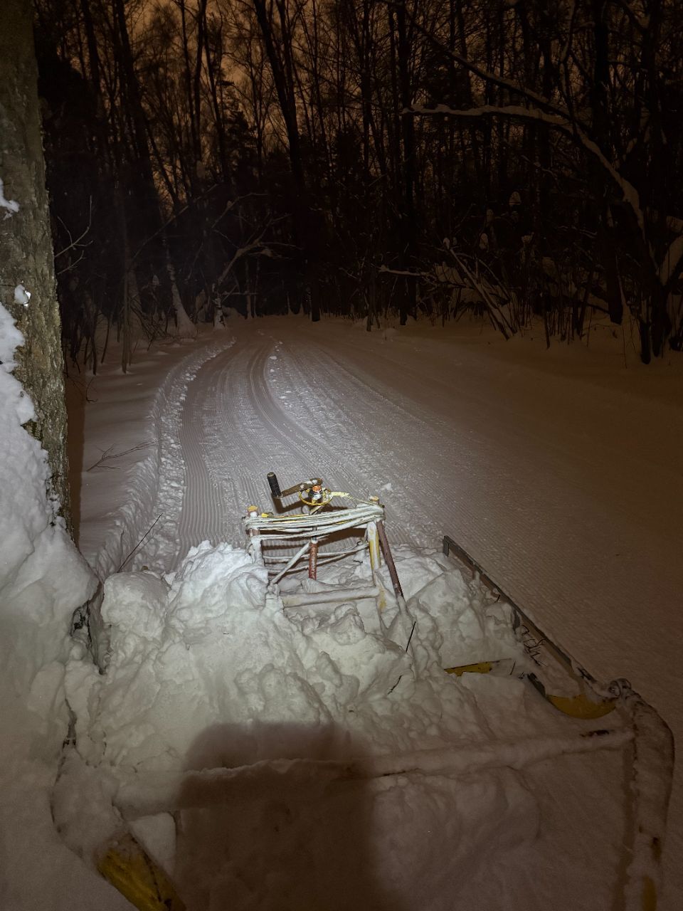 Закатали габошами на 2-ух снегоходах круги: 1.5, 3, 5, 7, 10, 17 км во всю ширину + нырки + лысую гору, также закатали толкинистскую поляну и потом пустыми снегоходами сосисочную поляну, еще много пилили на всей 17-и, спилили все критически нависшие деревья. Осталось мелочь, так же нарезал лыжню на кругах 3, 5, 10 км, на 17-и не успели, время половина 4 утра, а мне на судейство соревнований уже вставать через полтора часа ;(